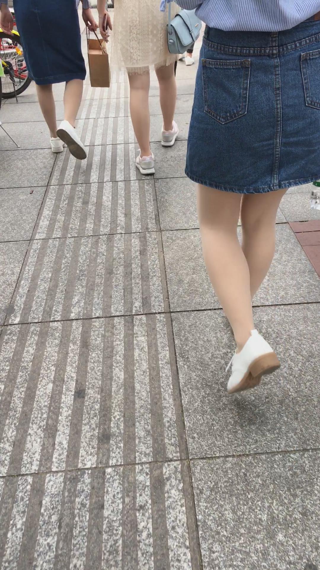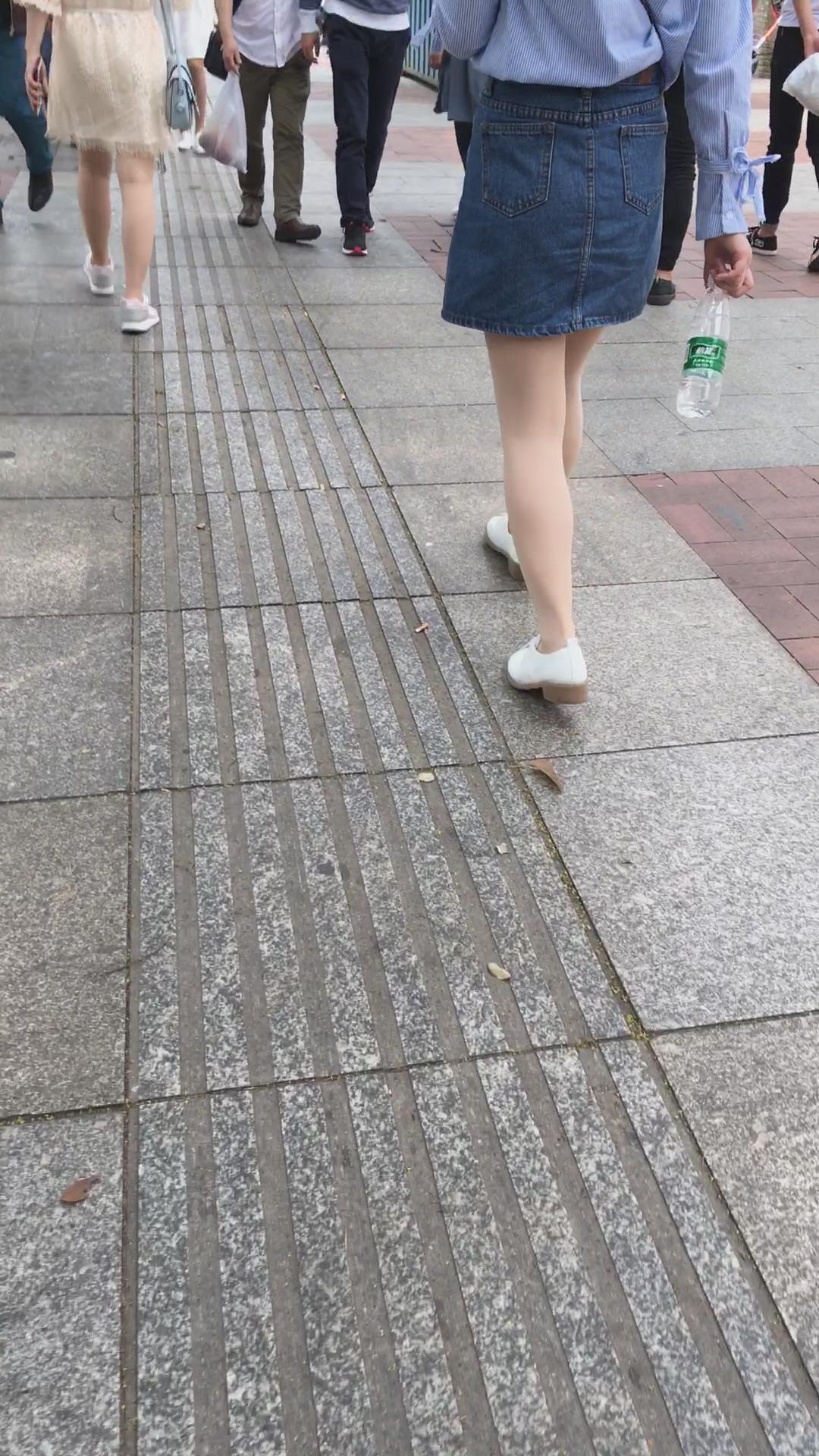 跟拍牛仔裙街拍丝袜女孩 编号2085