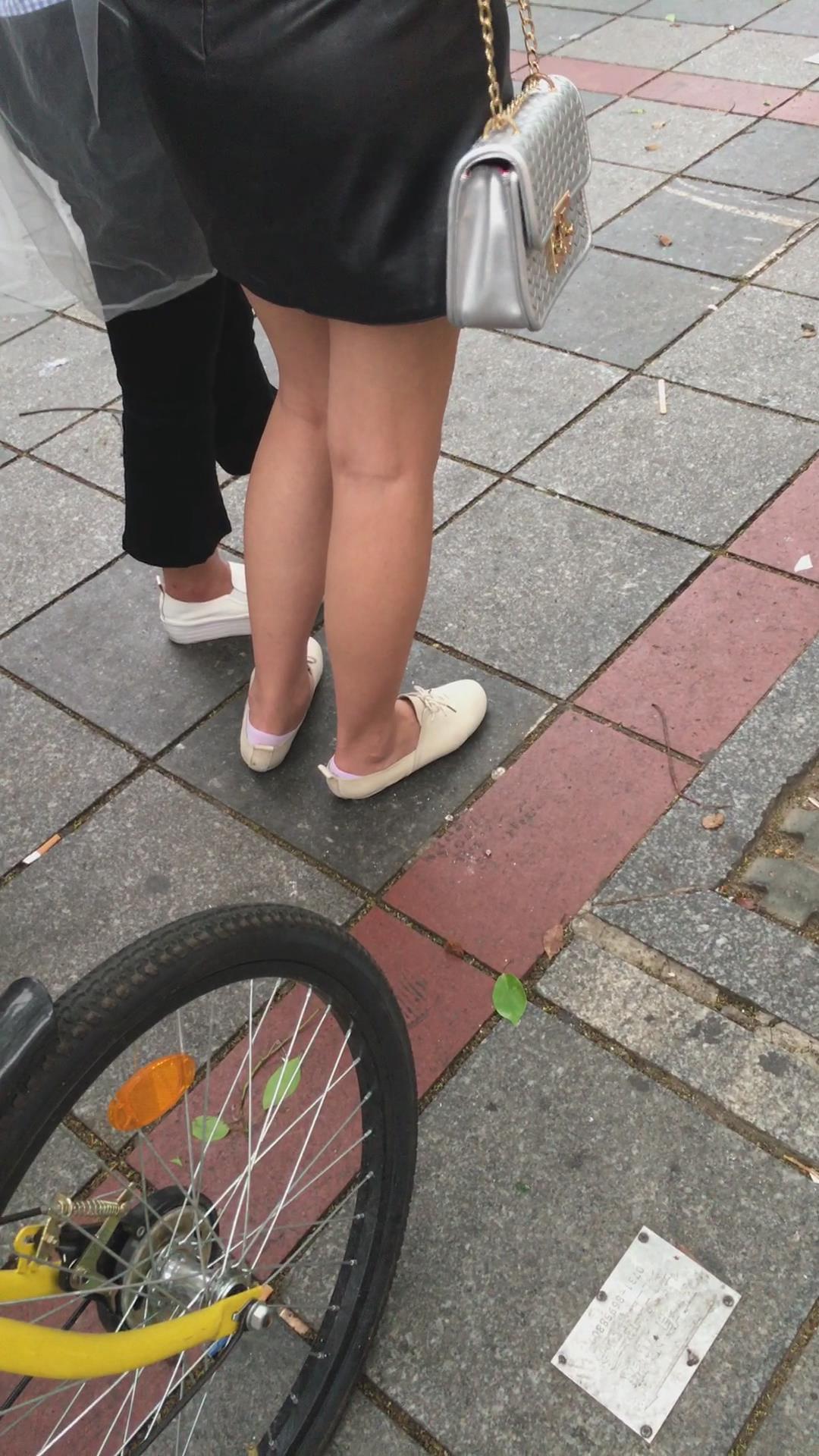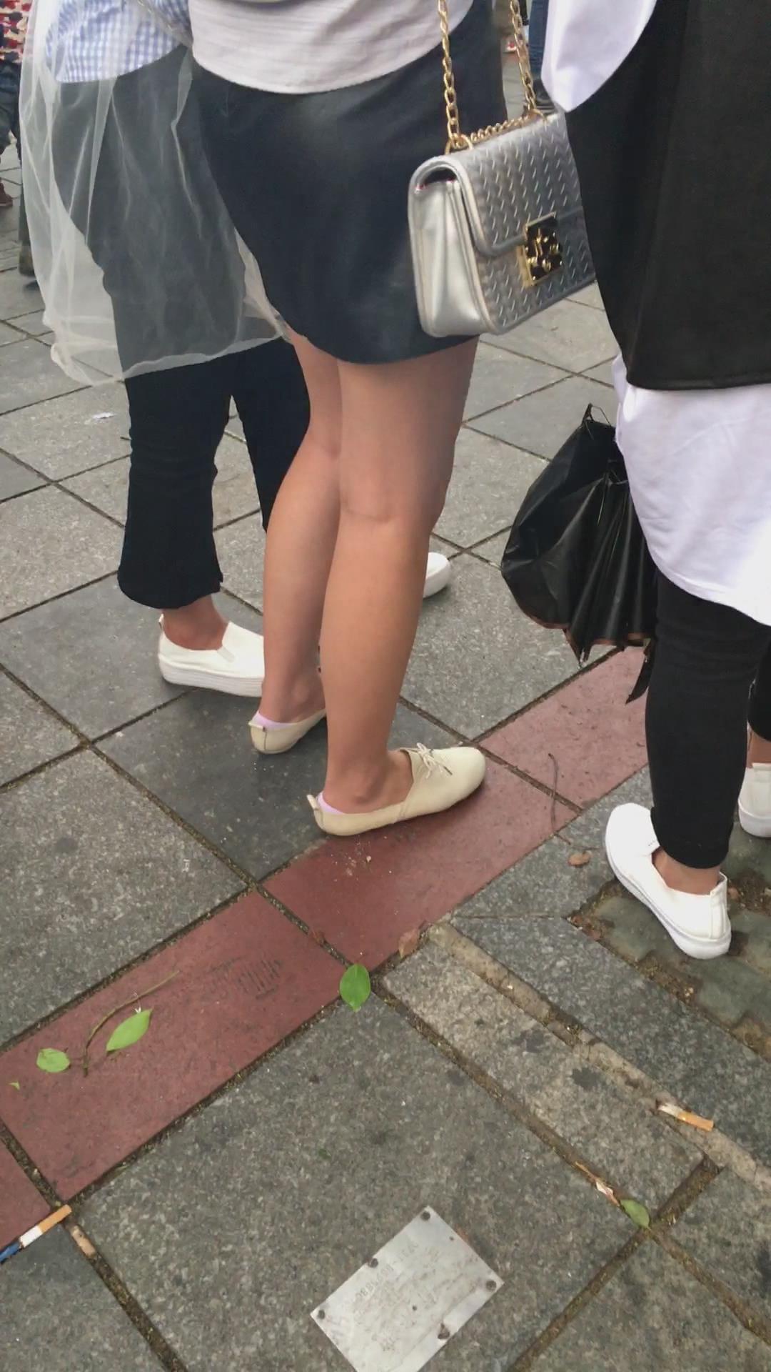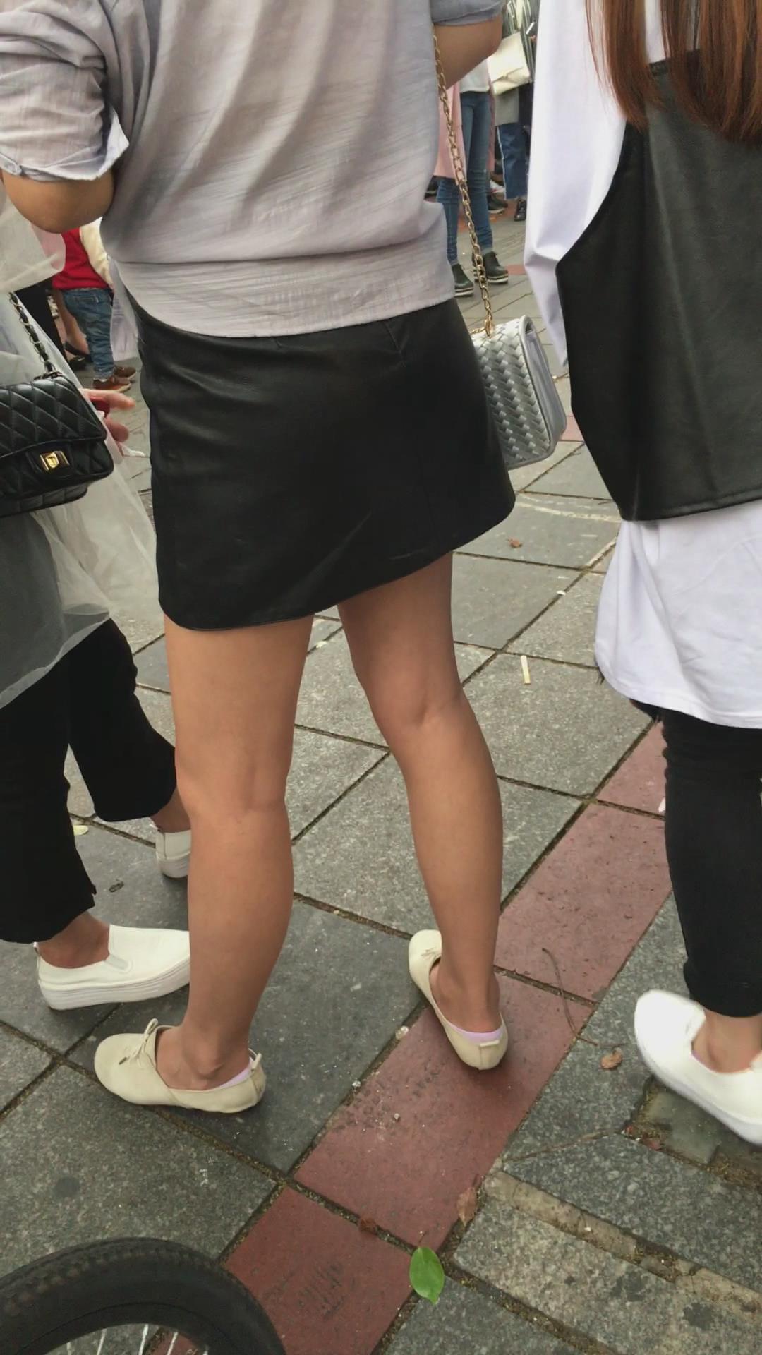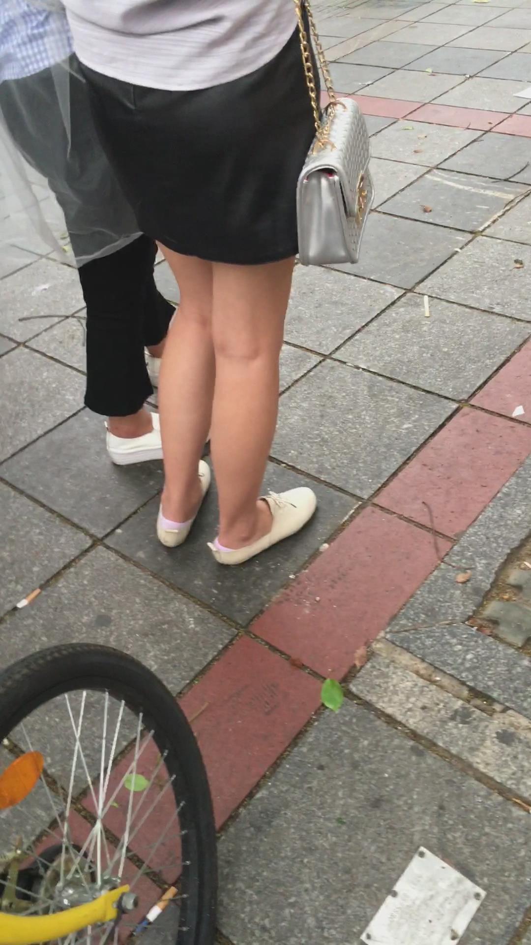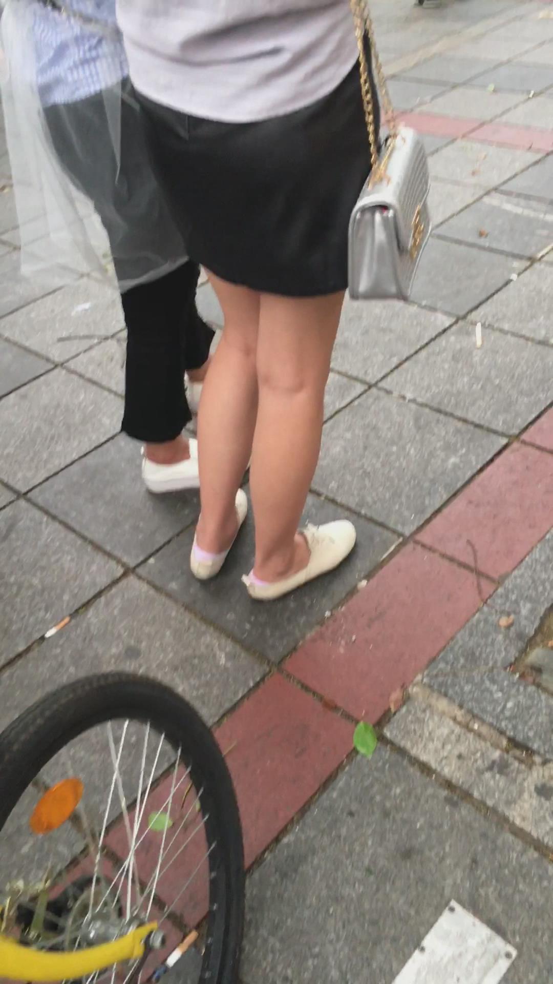 街拍黑色小短裙白鞋裸腿小美女 编号2094