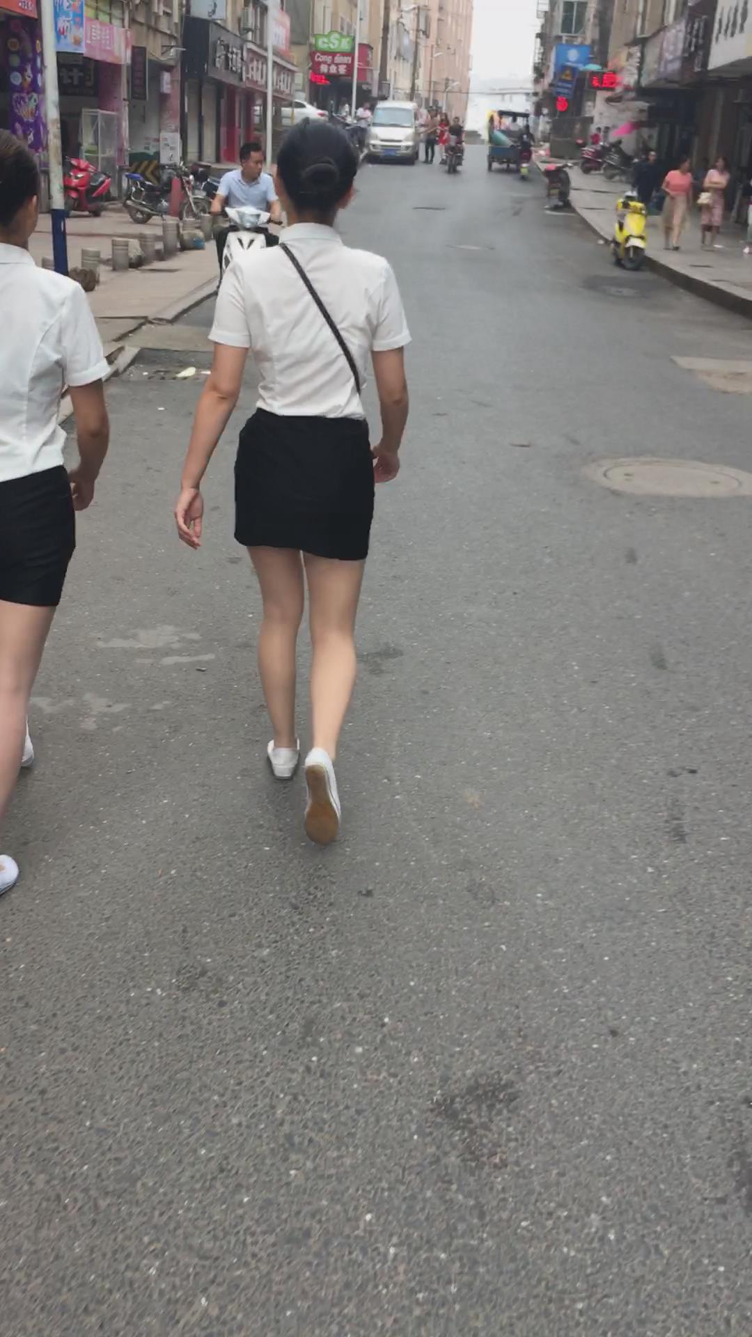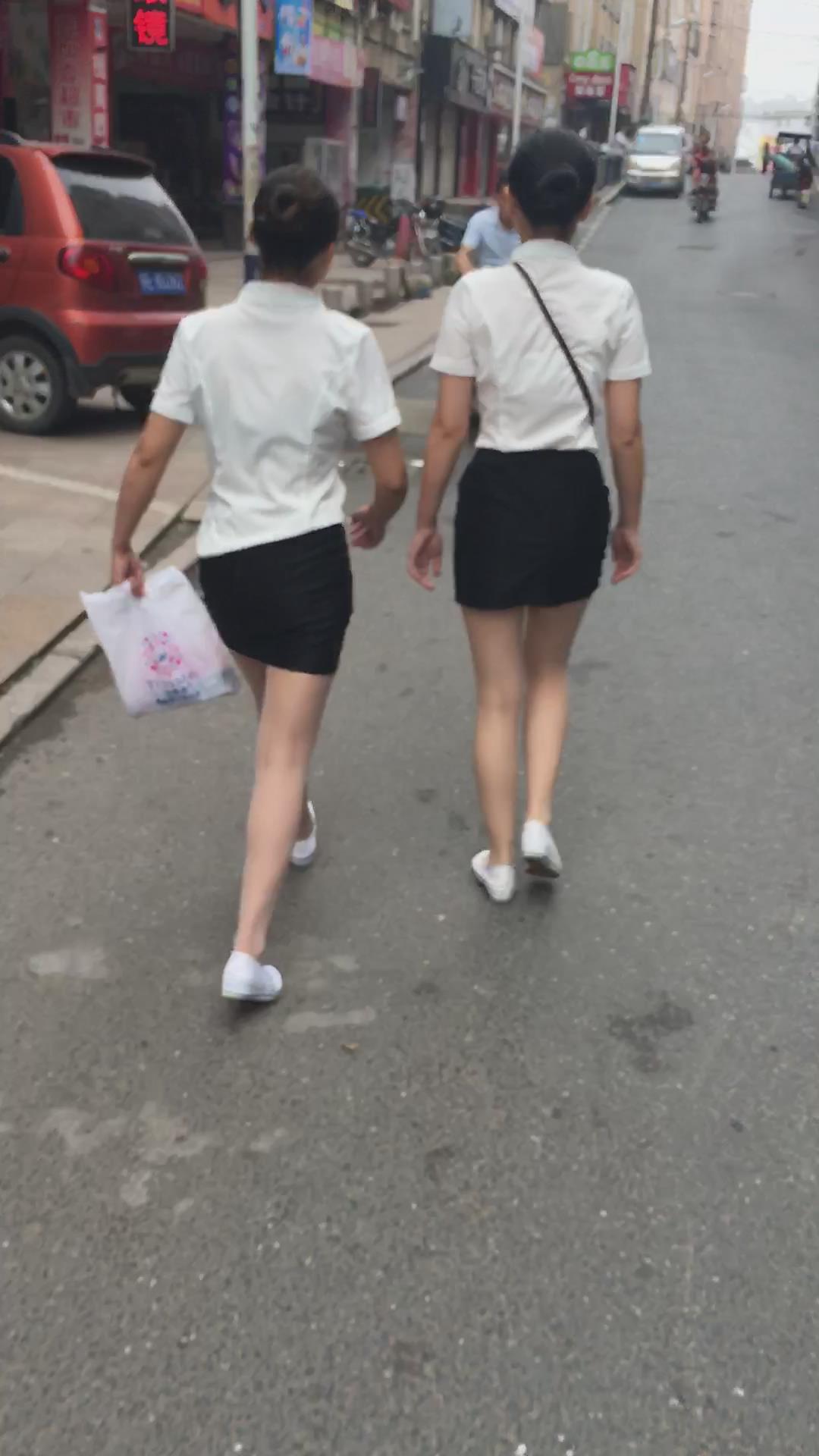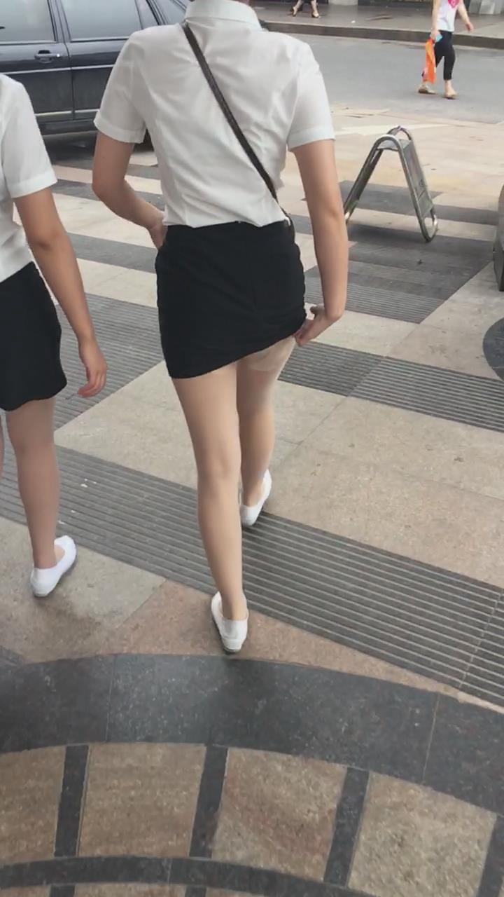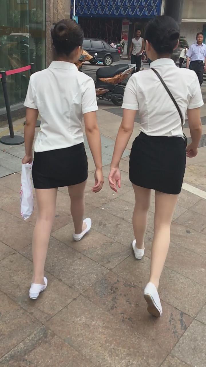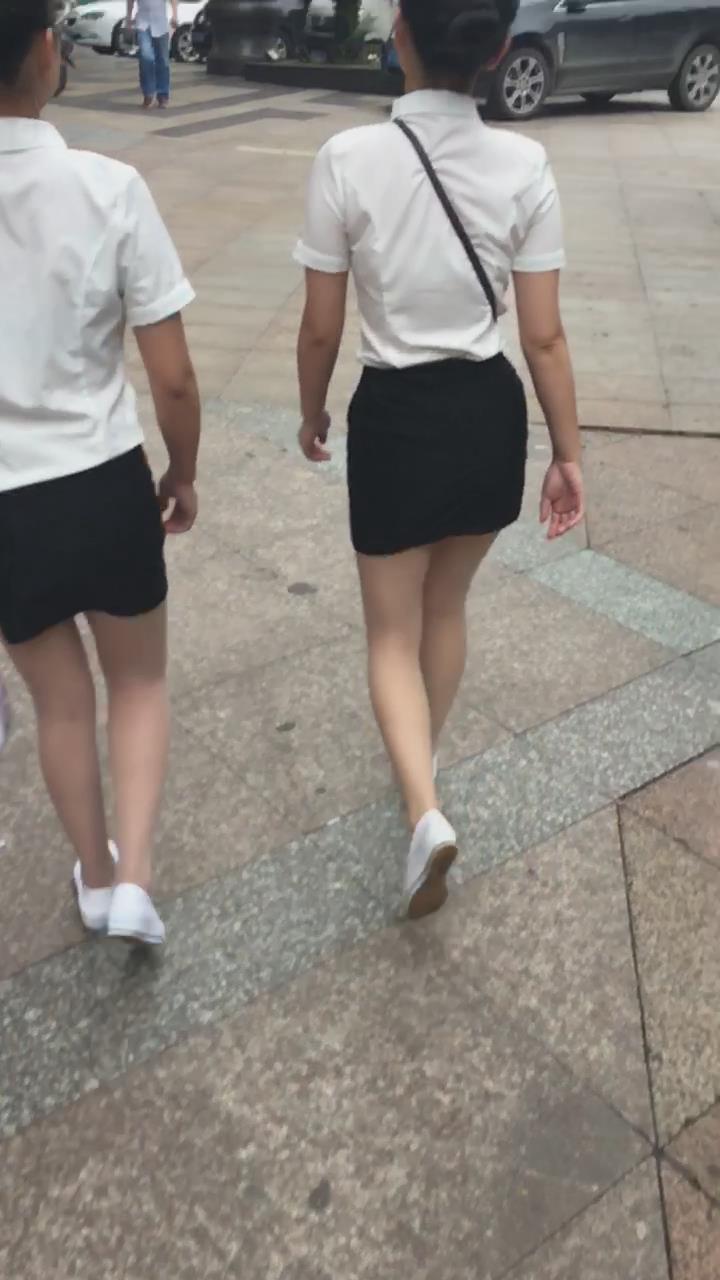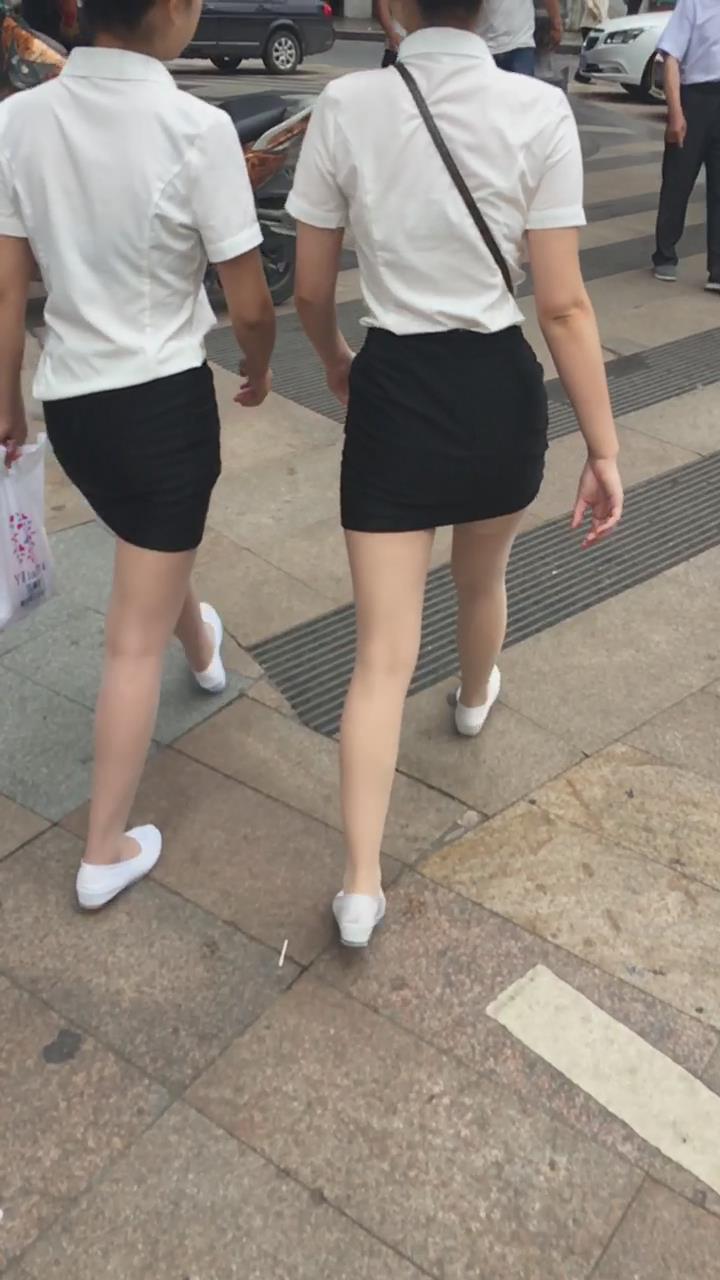 白T恤包臀裙肉丝袜街拍美腿美女姐妹 编号2109