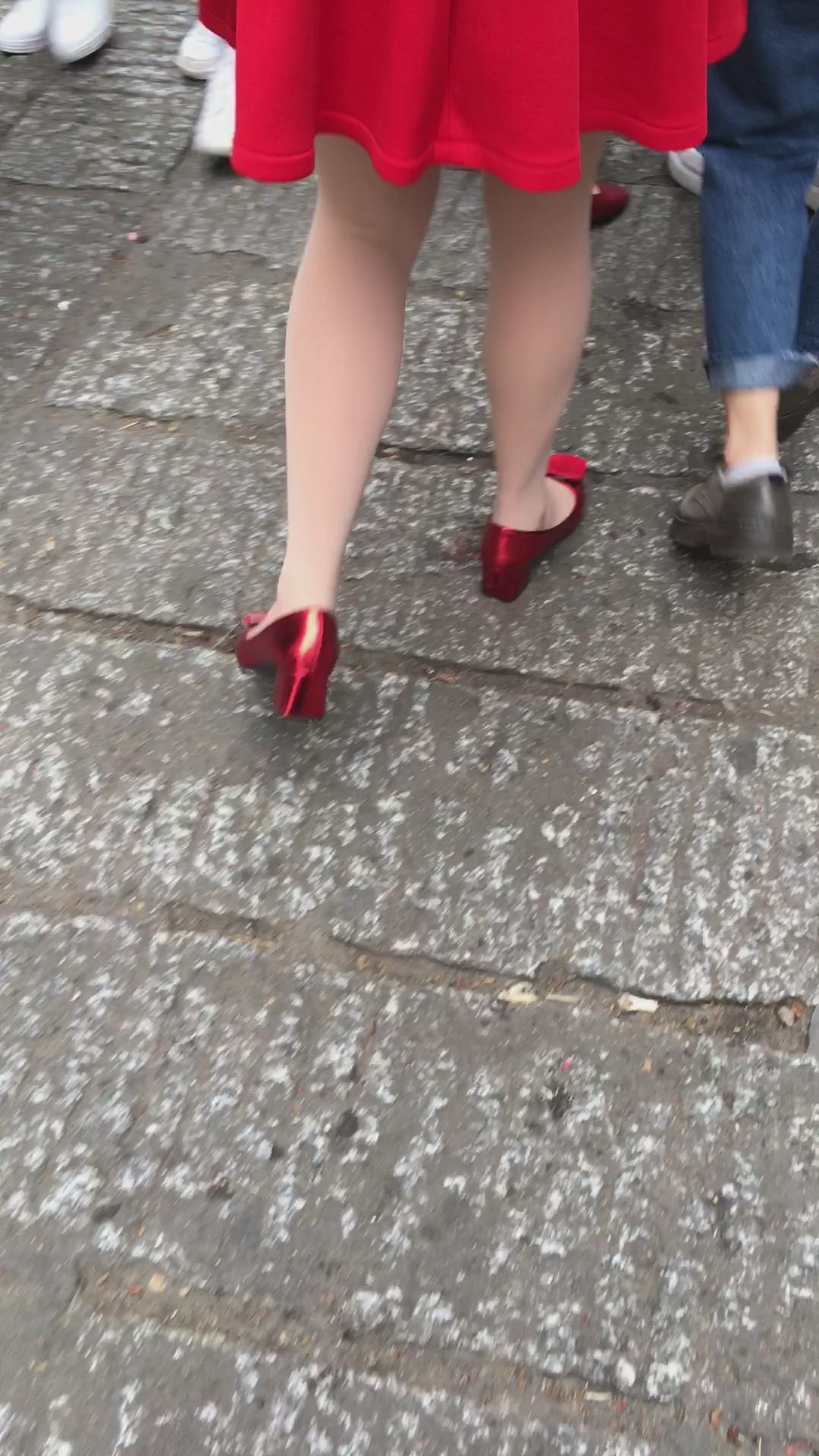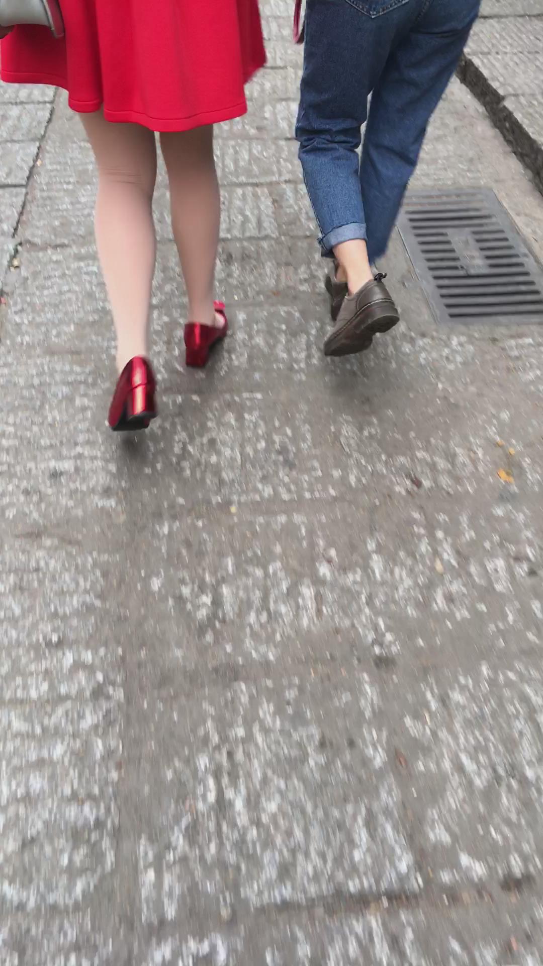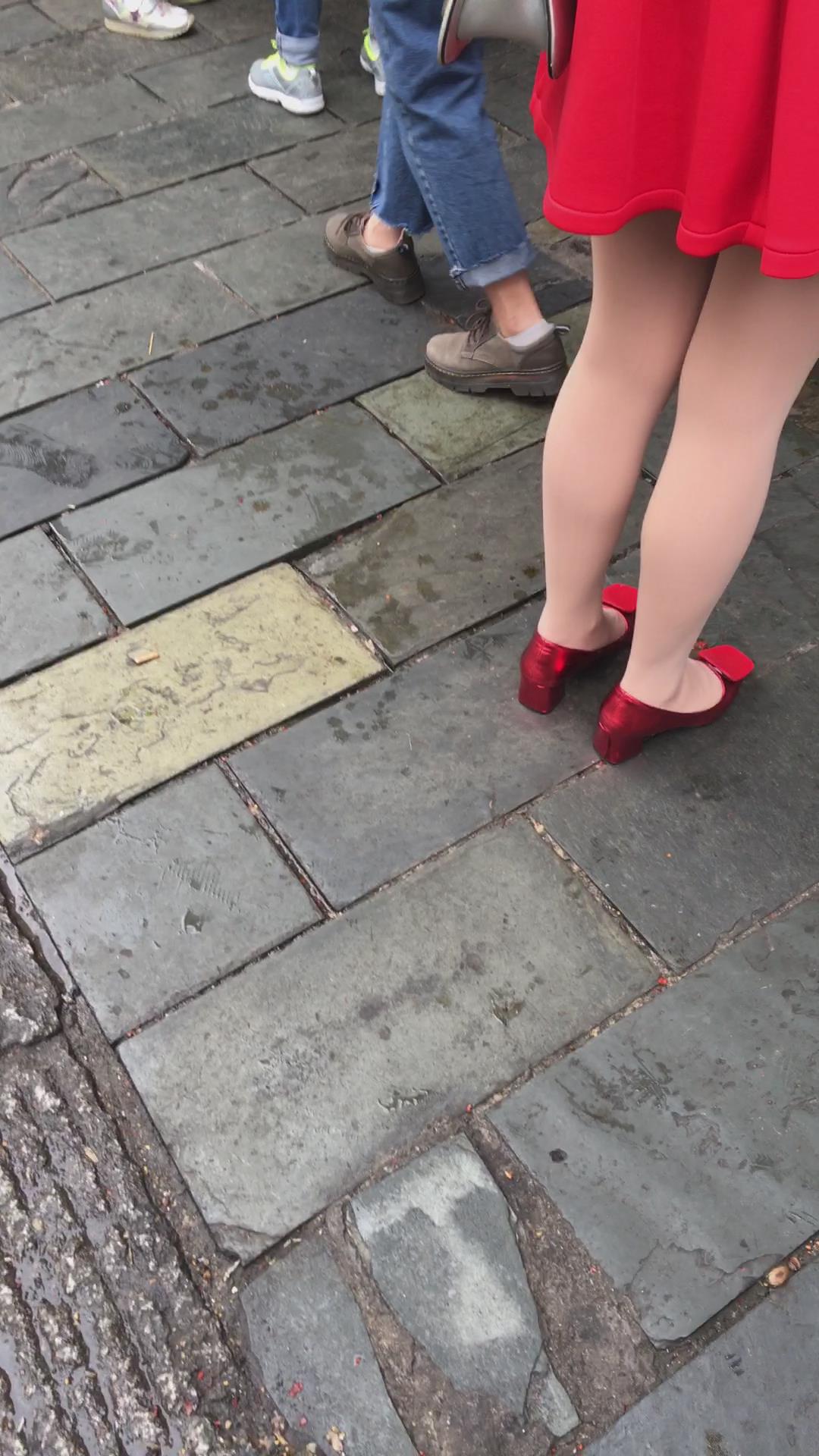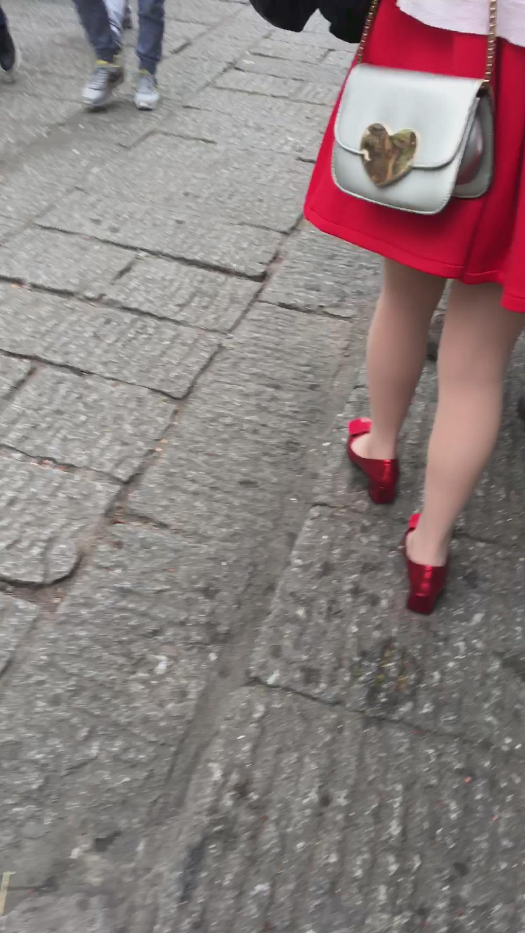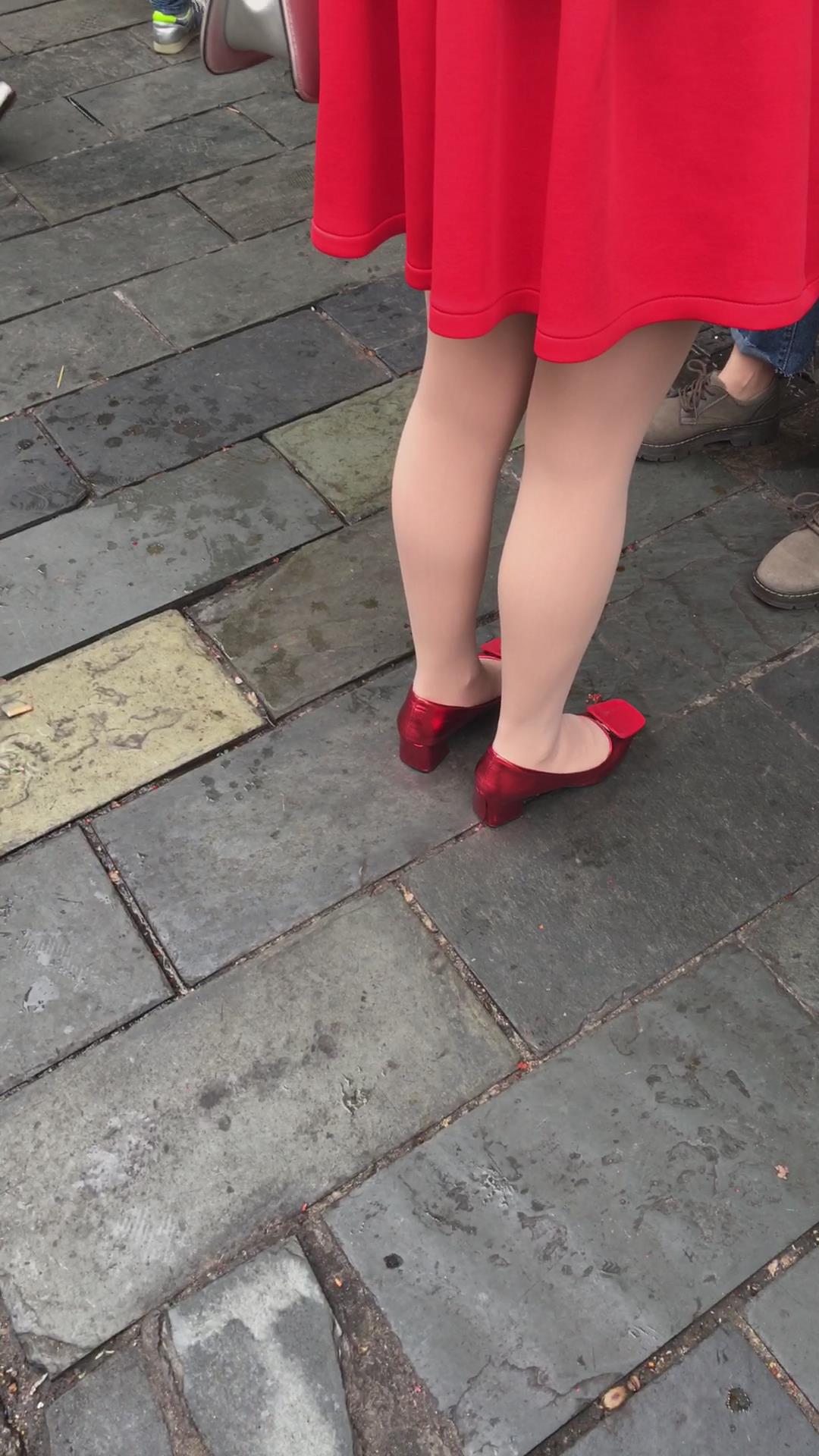 红裙红高跟街拍肉丝美腿少妇 编号2111