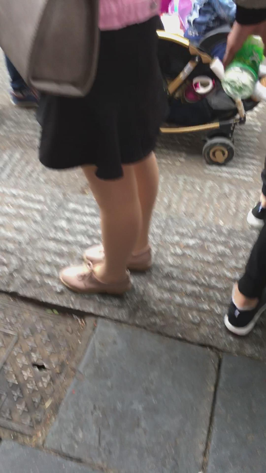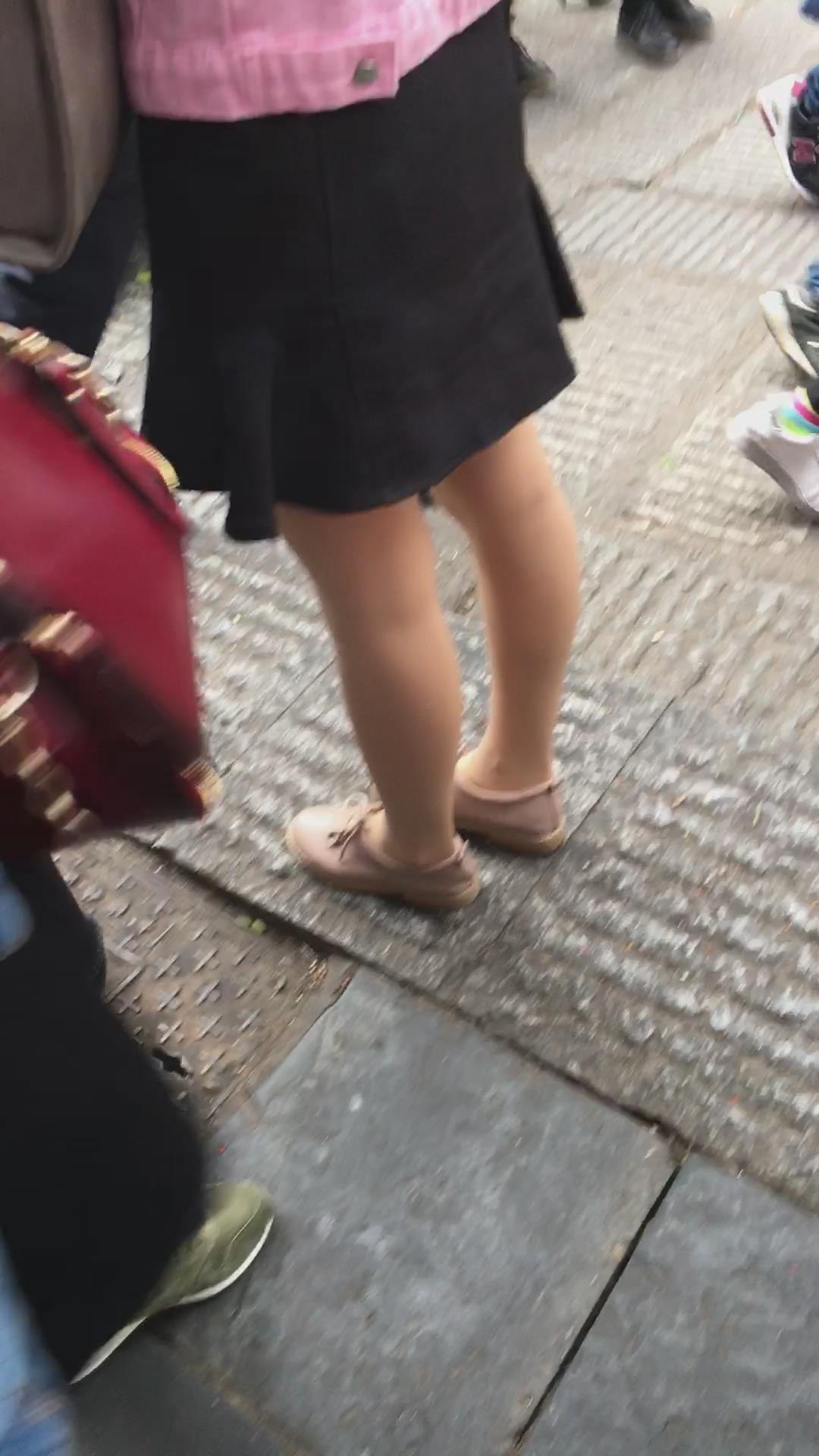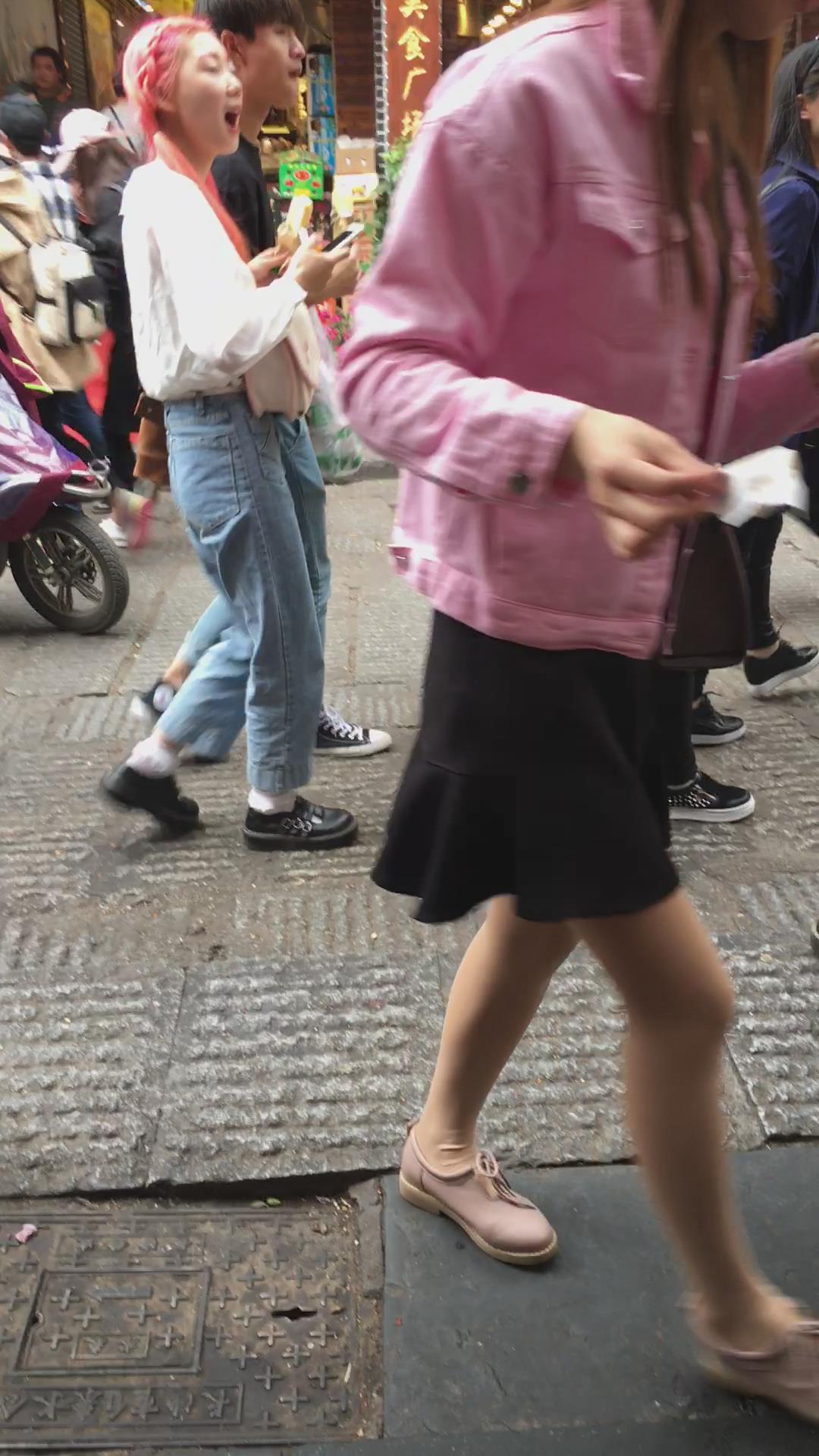 粉衣短裙街拍肉丝清纯小美女 编号2124