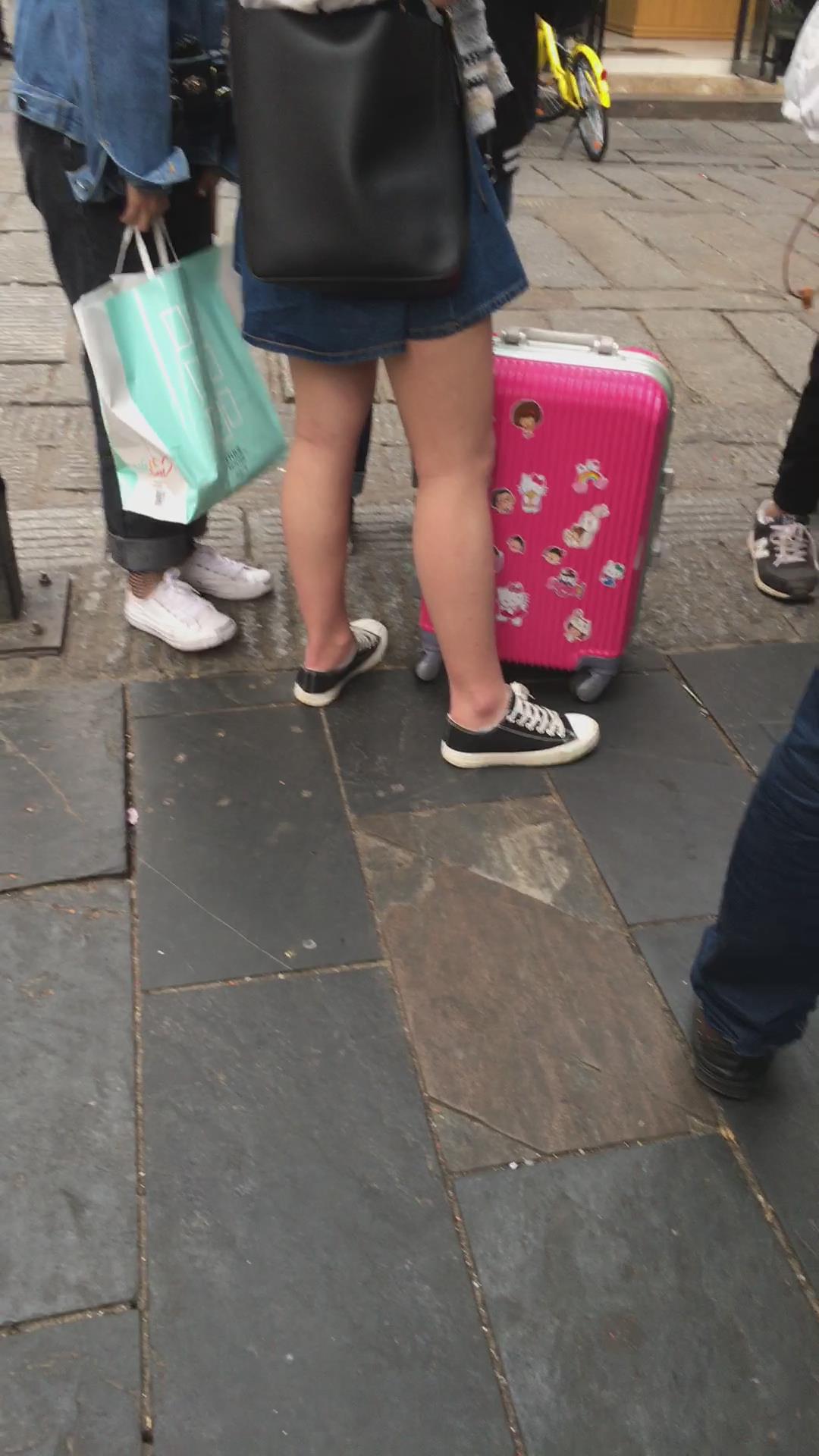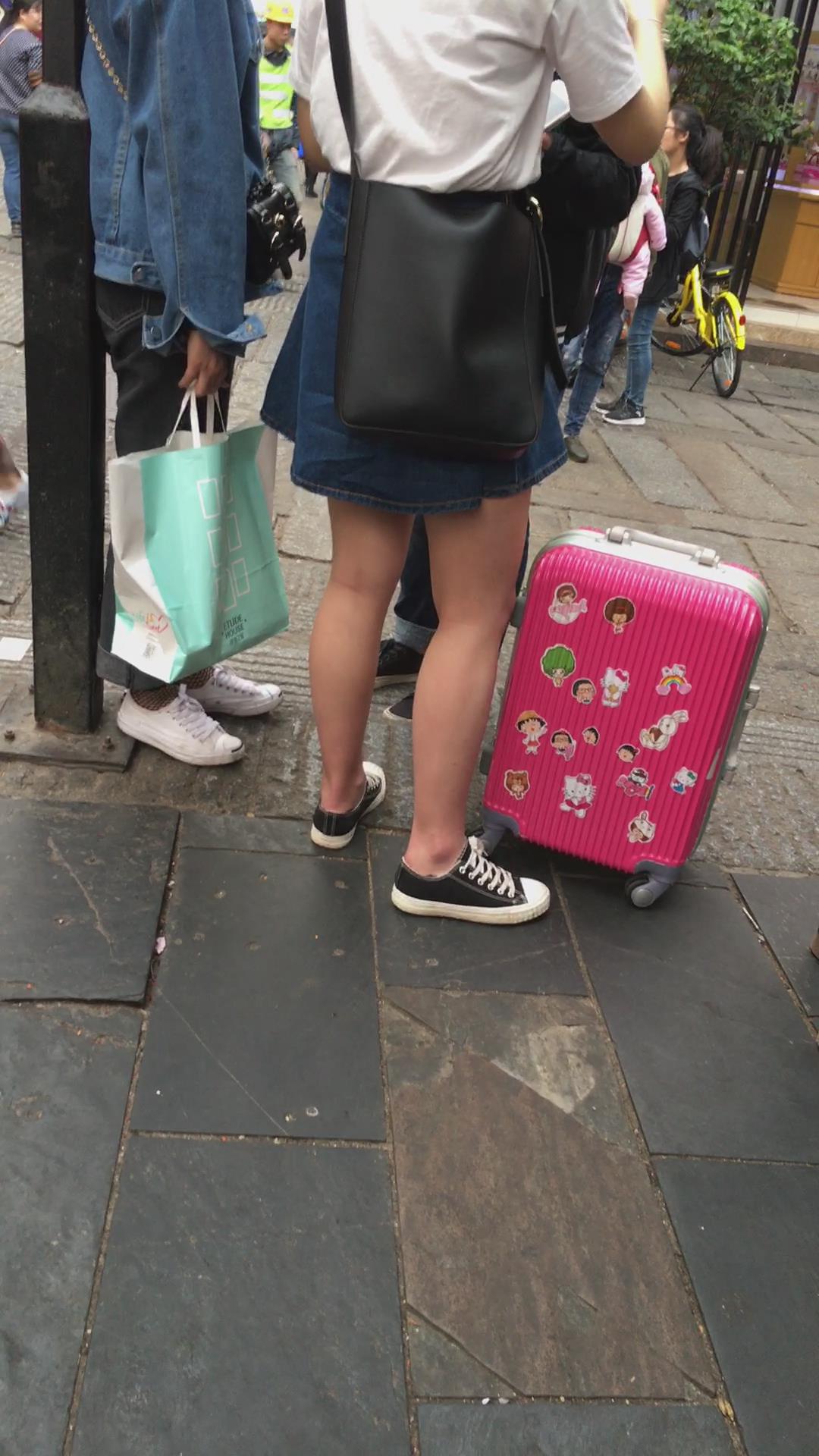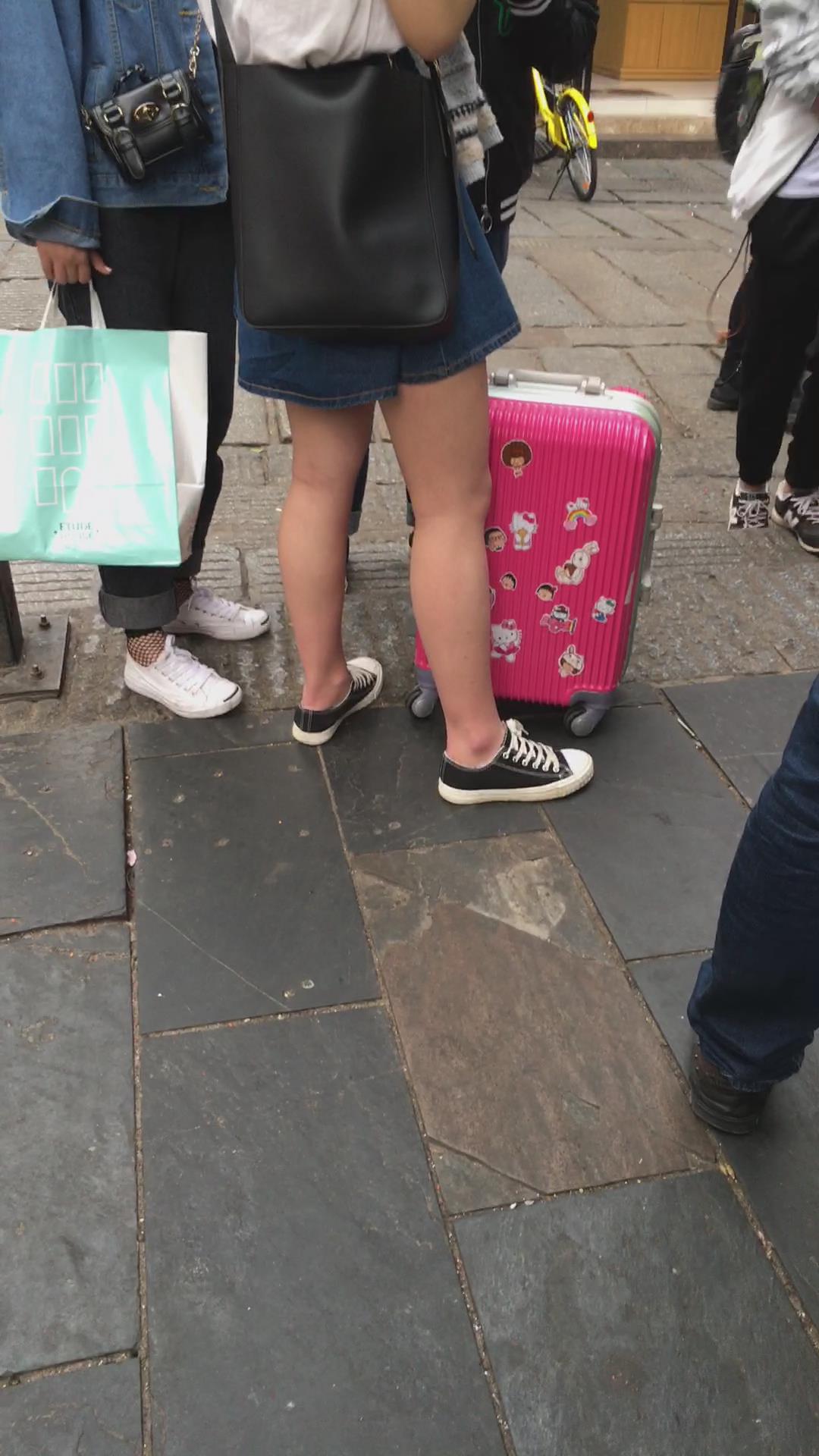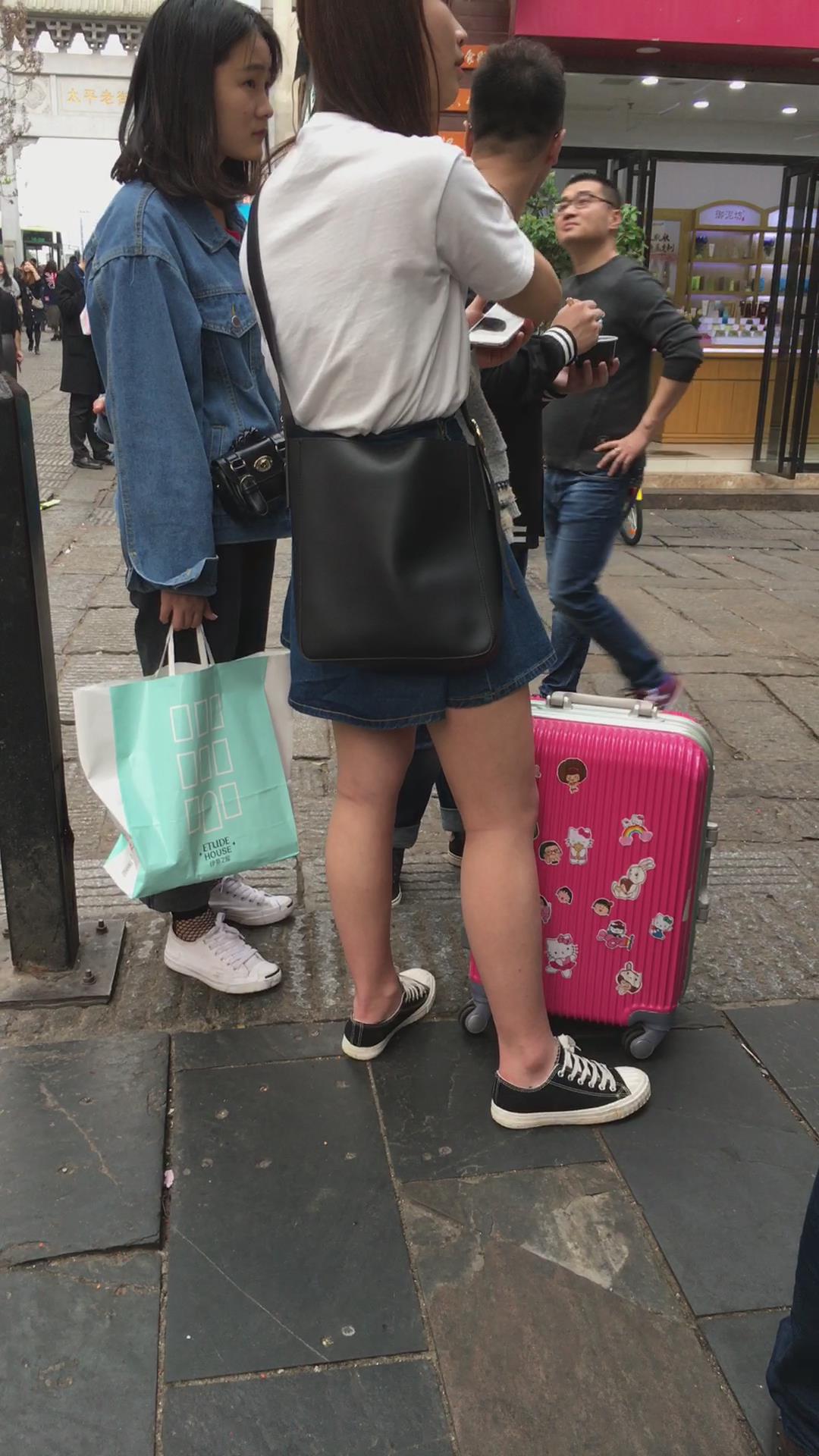 牛仔裙白色体恤帆布鞋学生妹 编号2163
