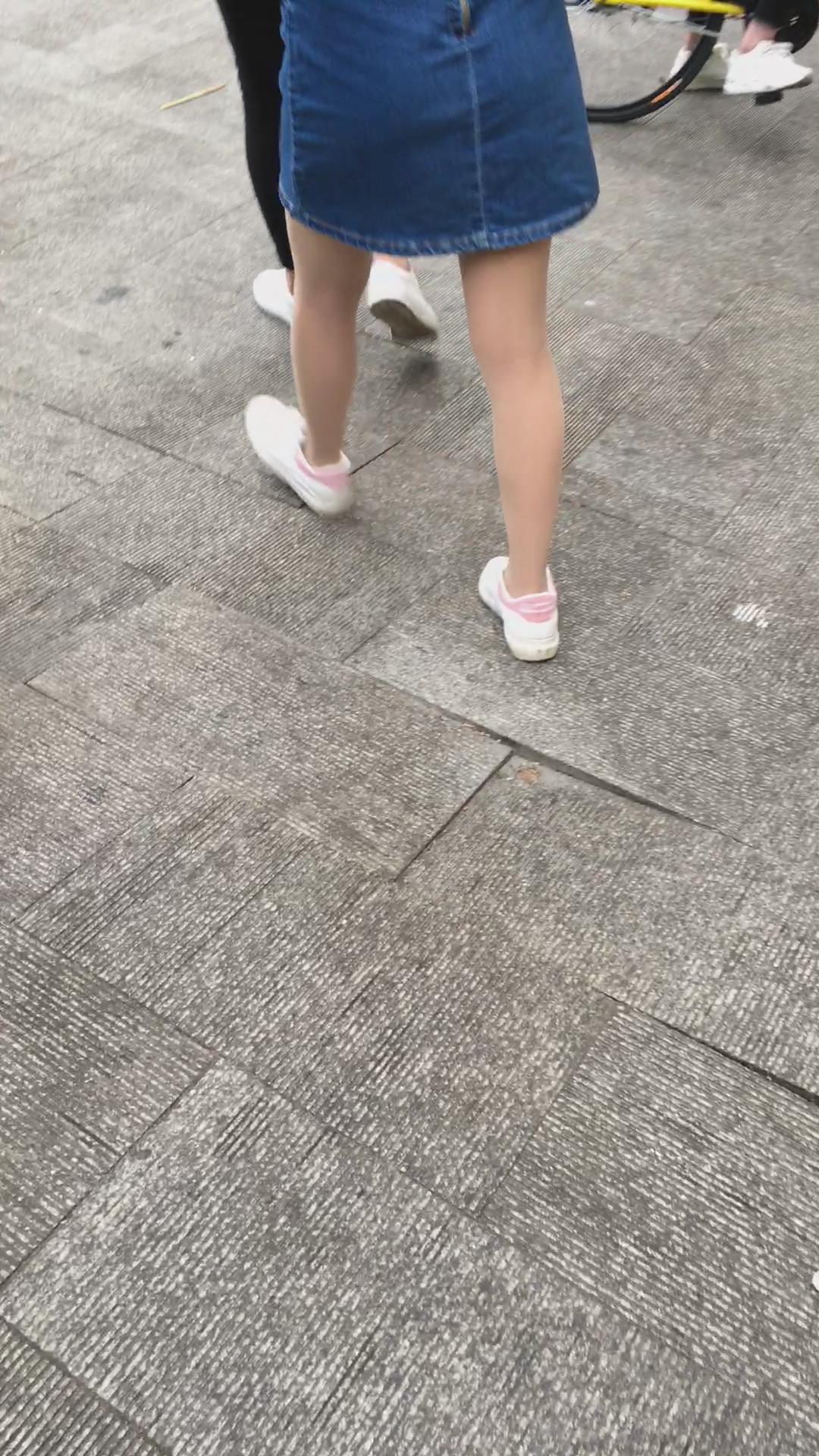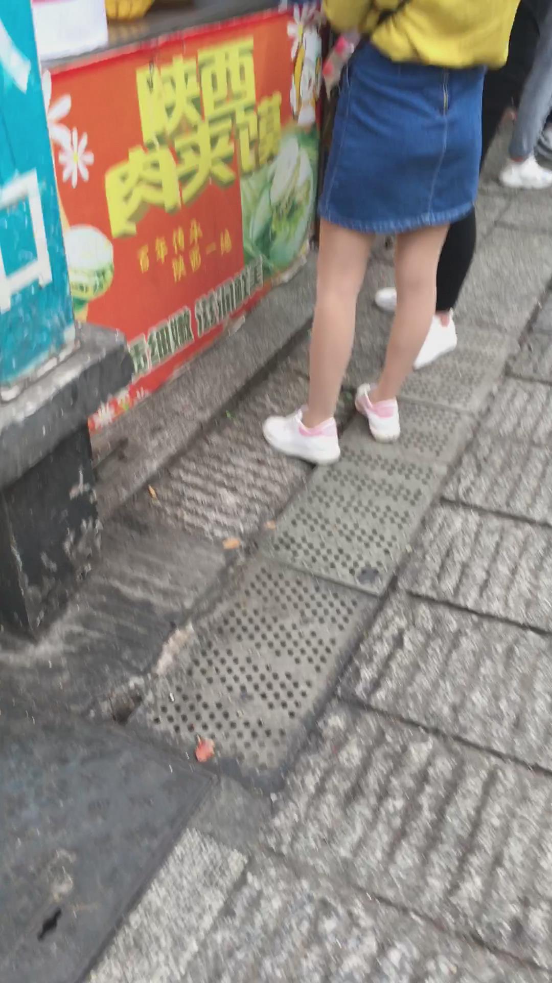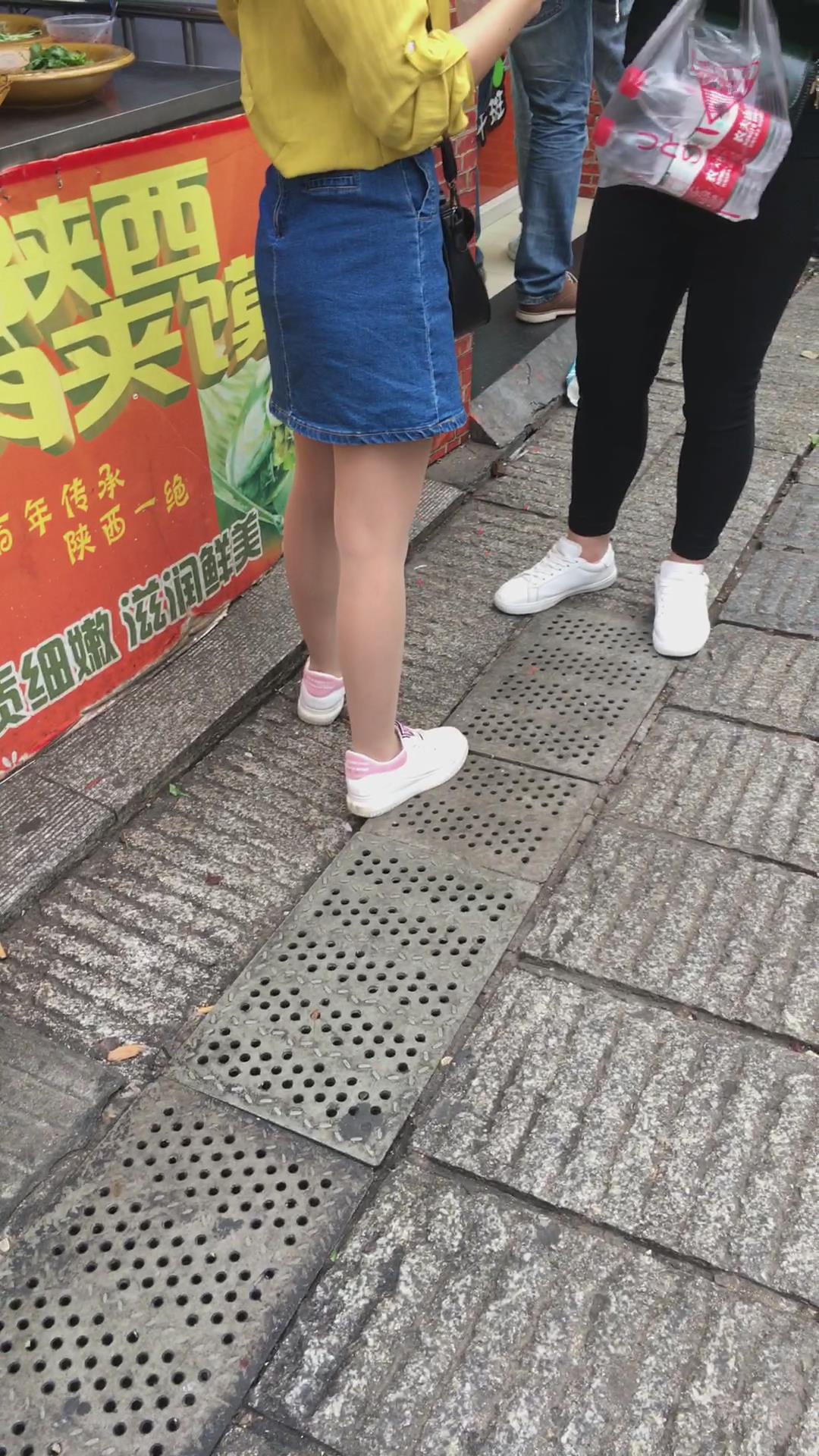 黄衣牛仔裙街拍肉丝美女 编号2165