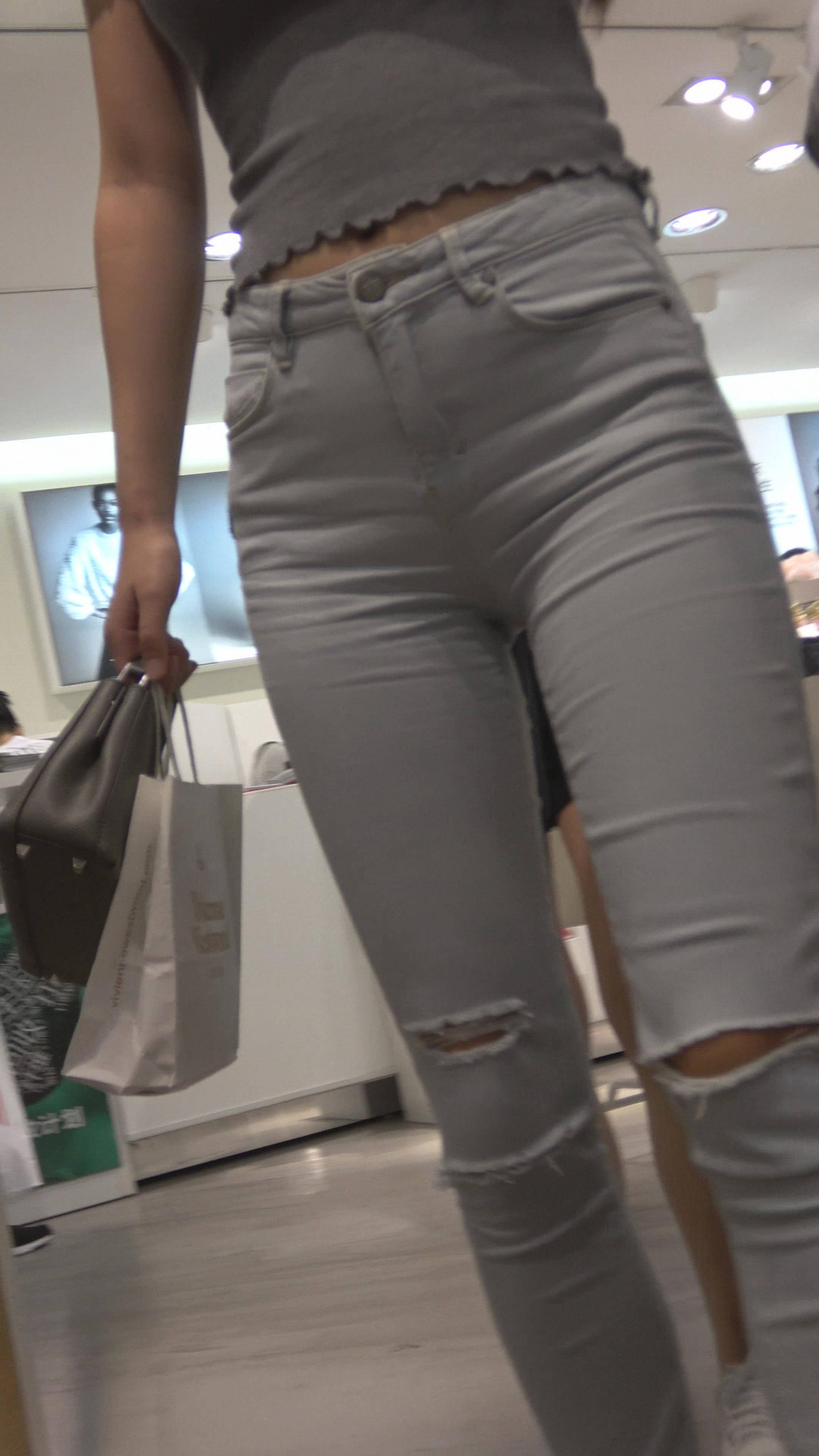 4K 小清新气质街拍紧身牛仔美女 编号7968