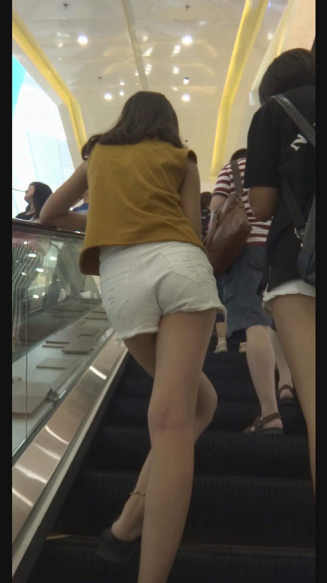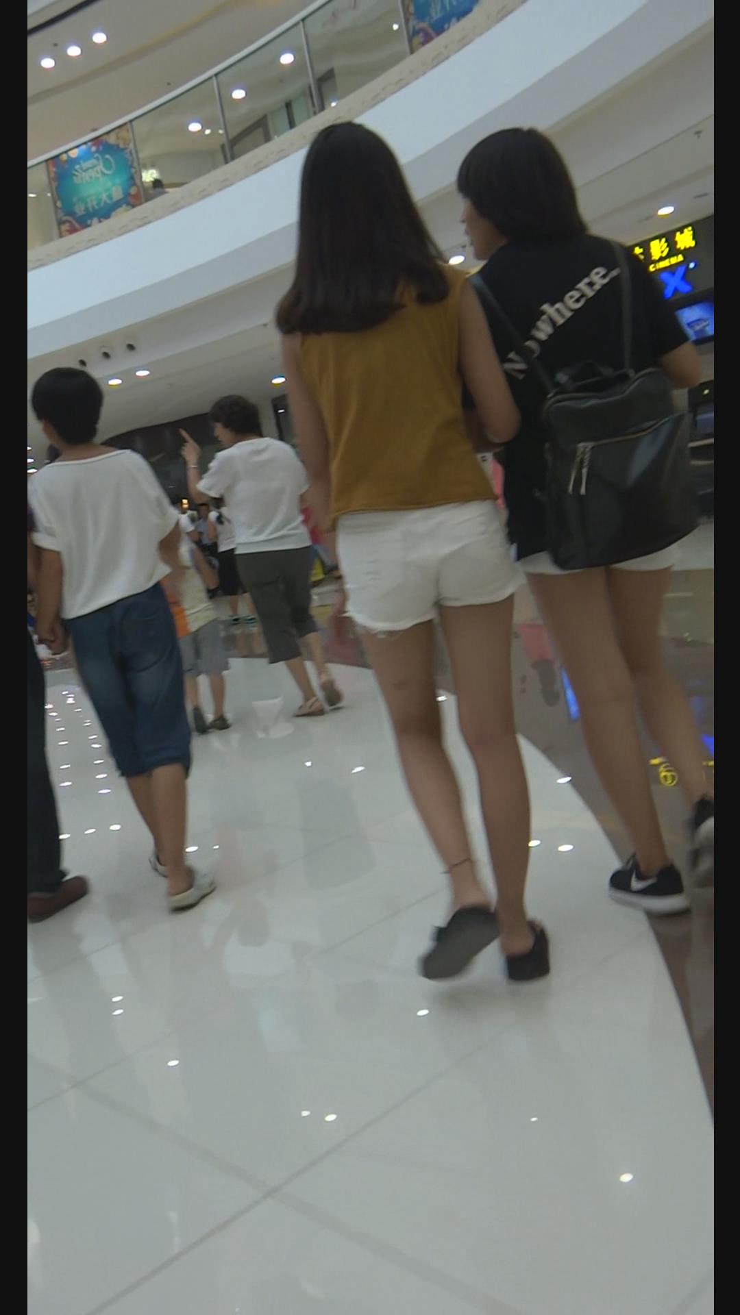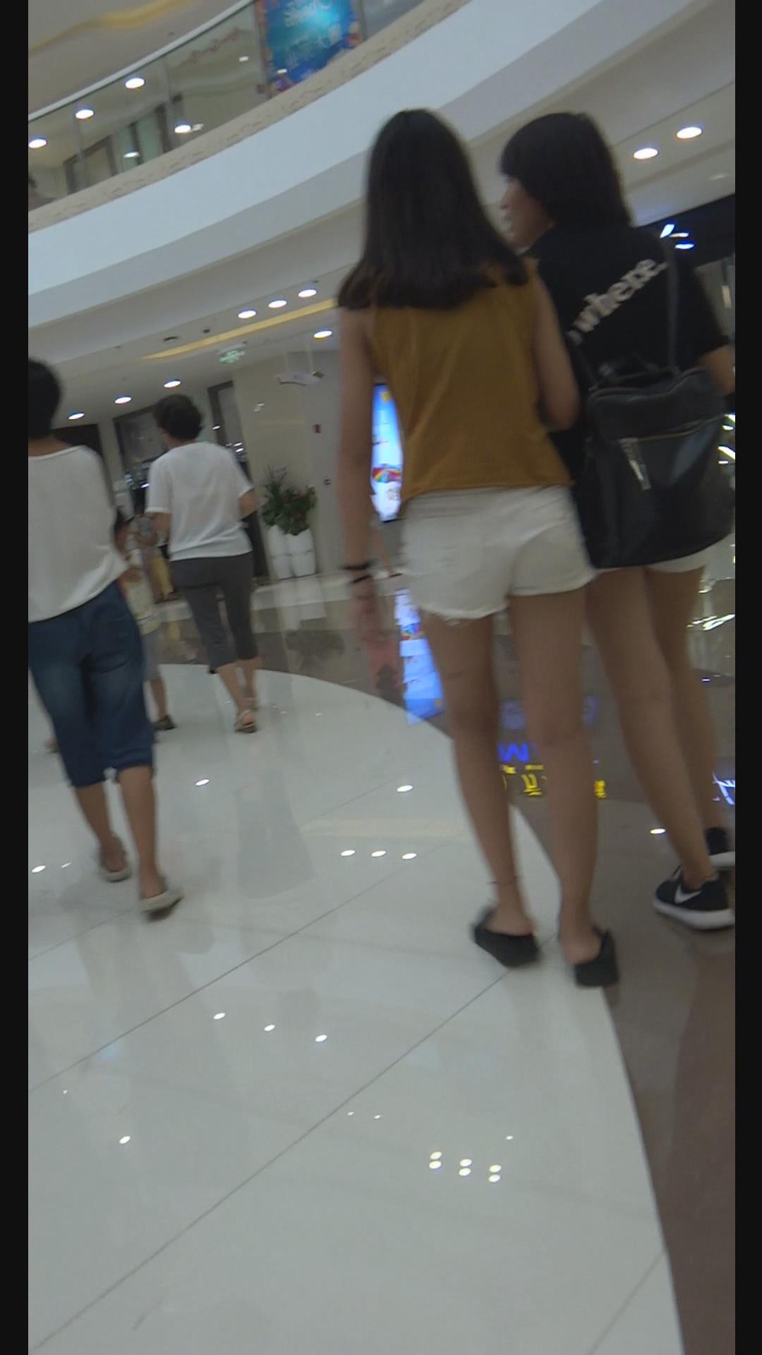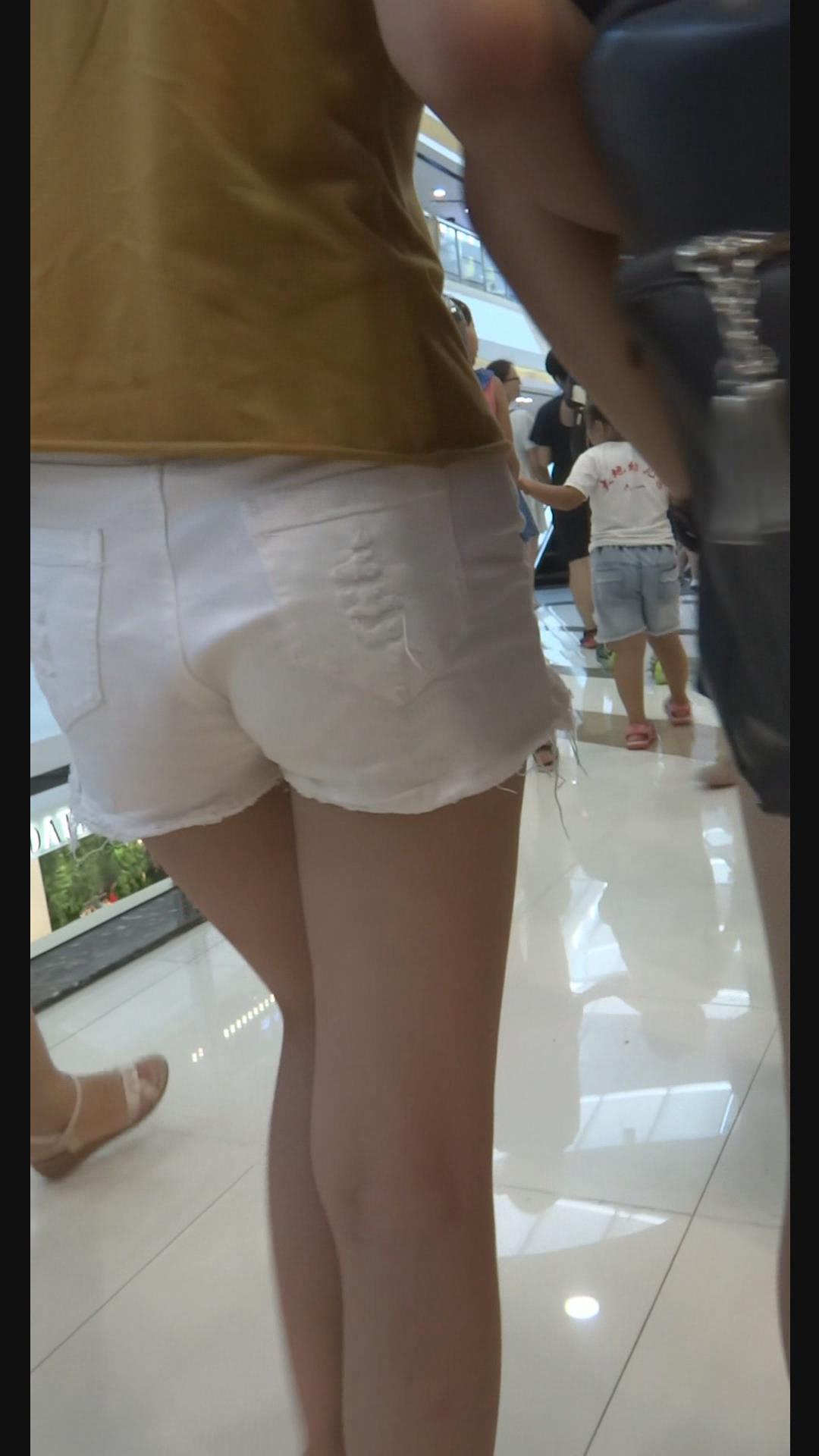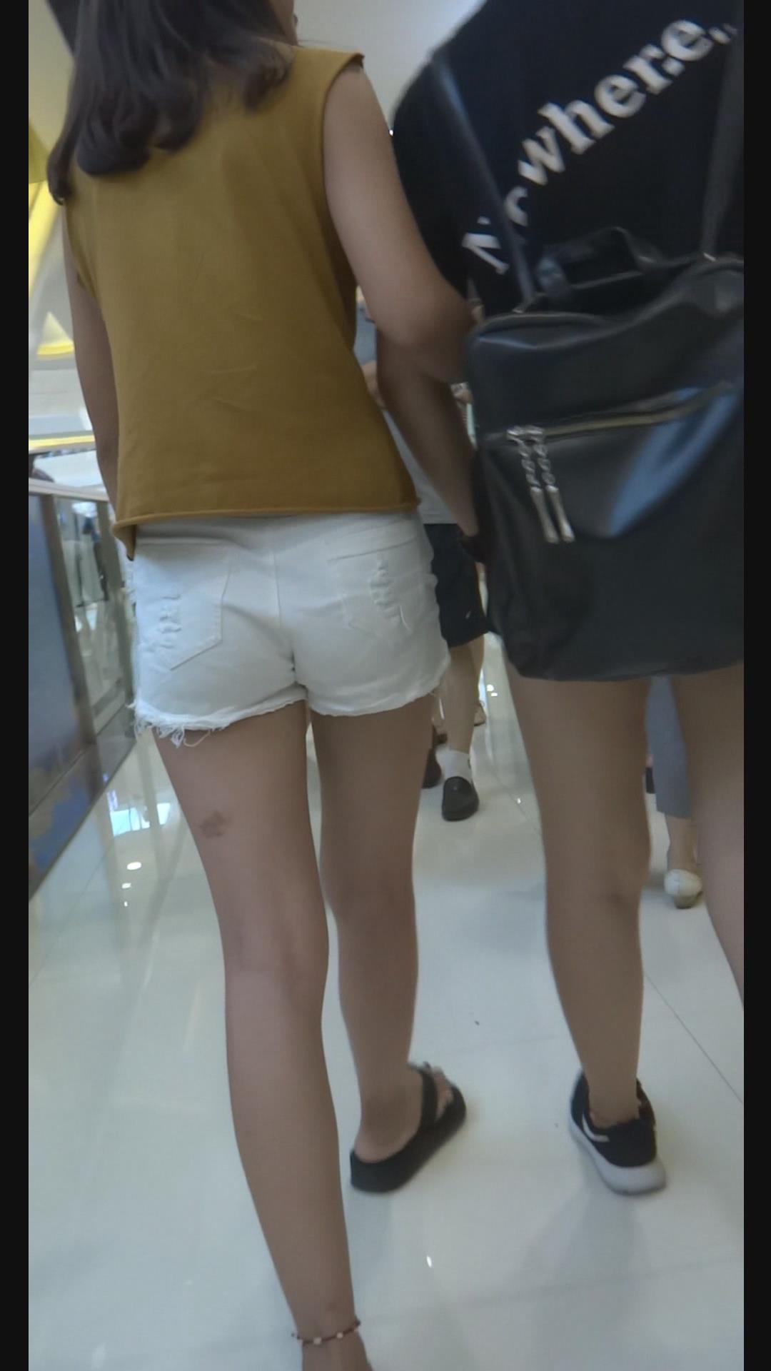 街拍白色超短热裤青春少女逛商场。 编号4636