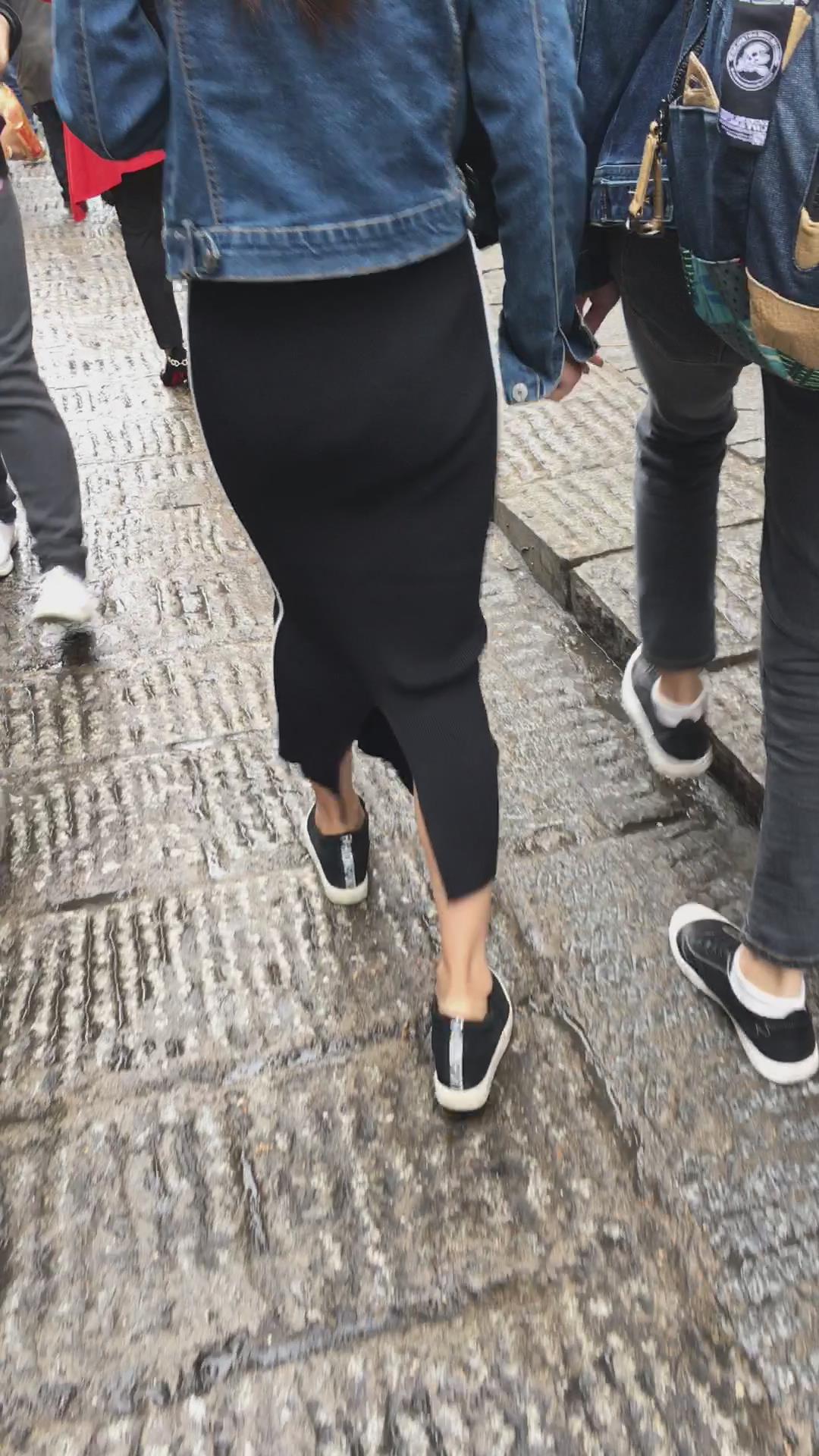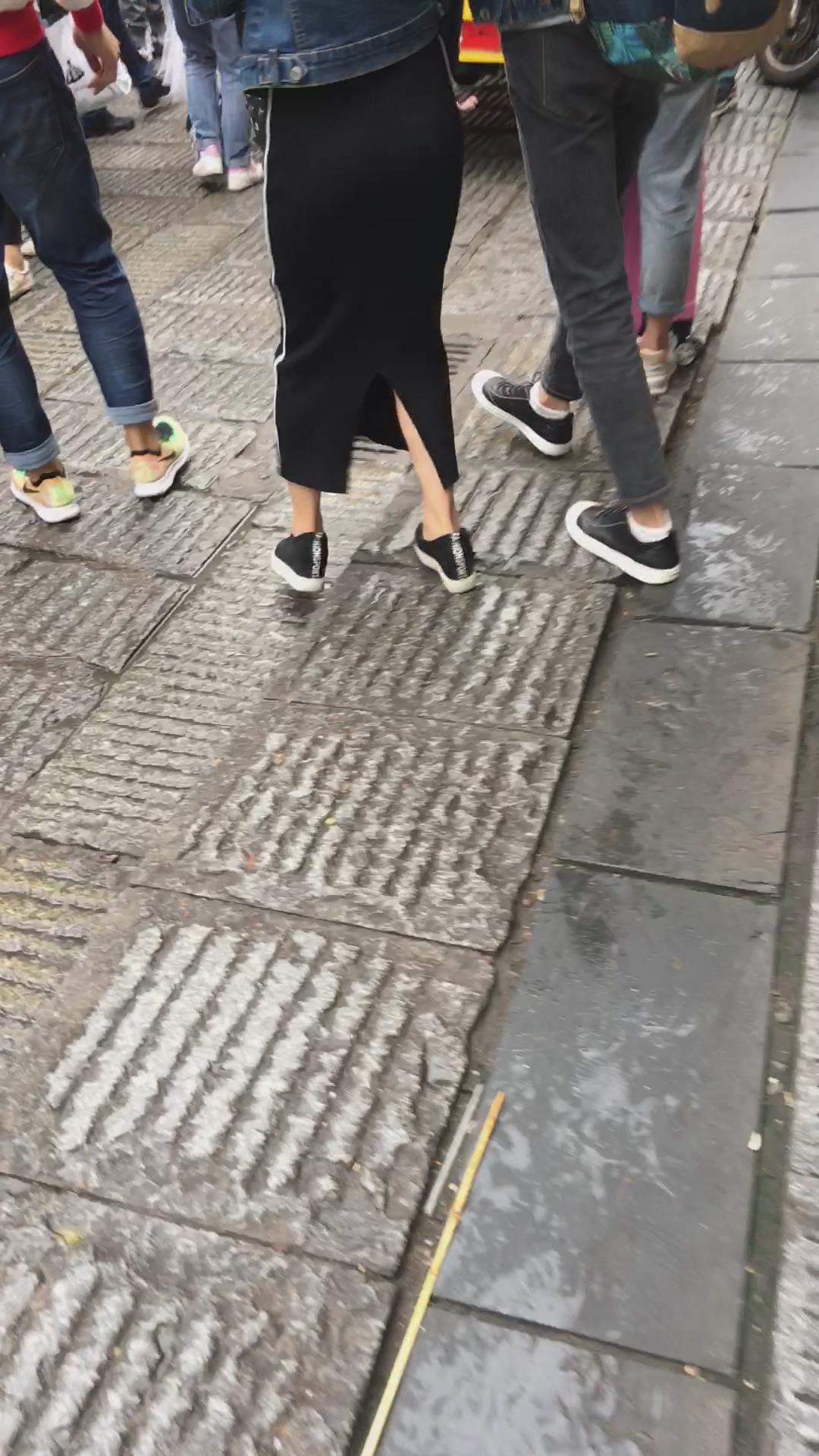 街拍黑色包臀裙小清纯妹纸 编号2186