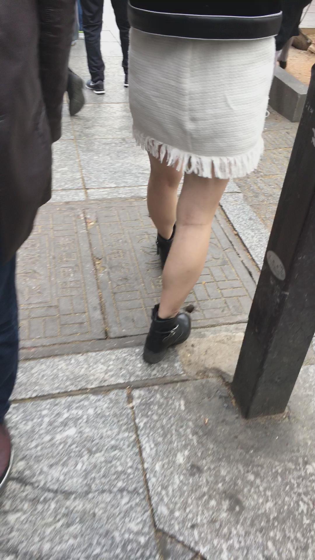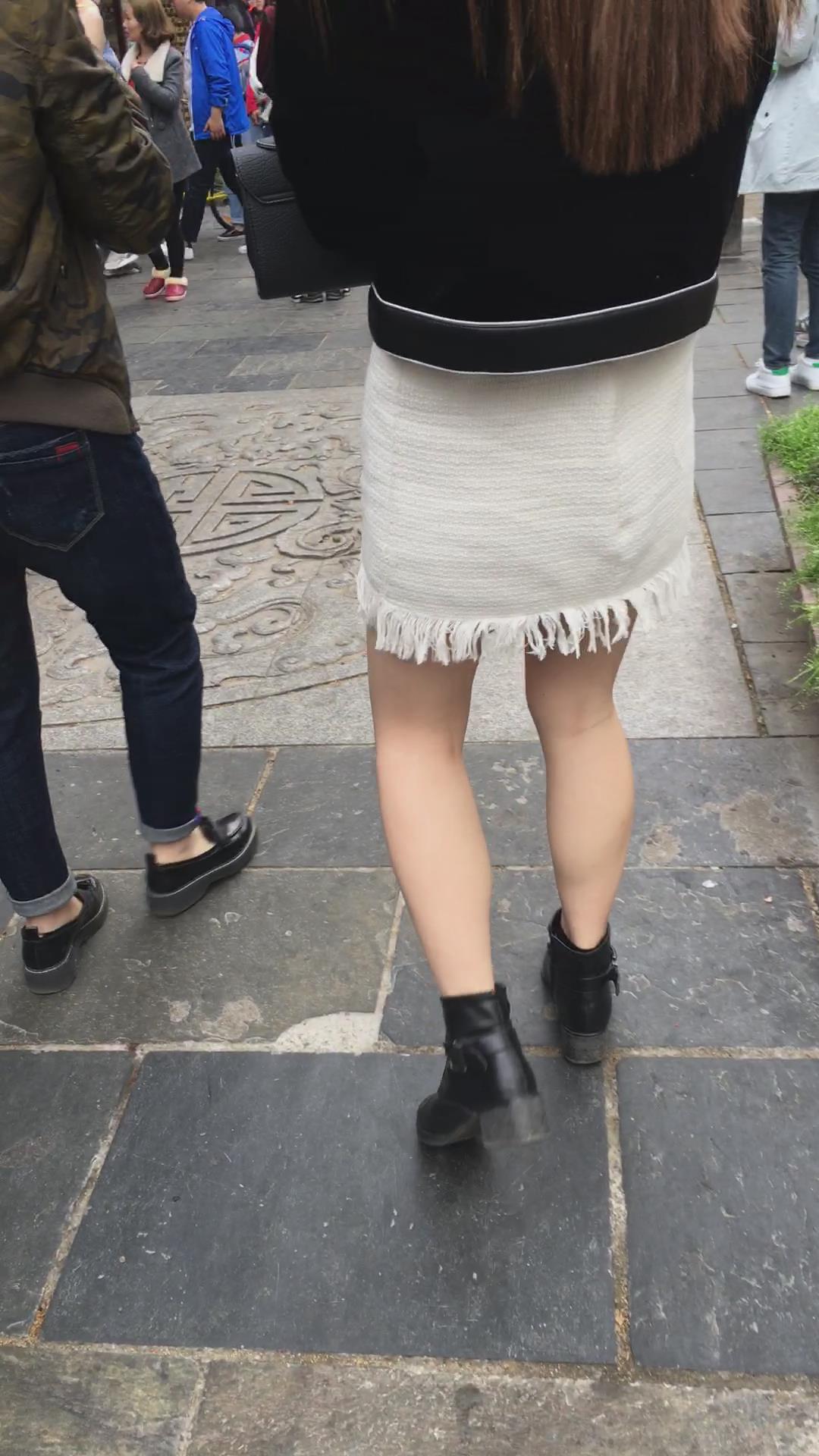 街拍白色短裙漂亮美女姐姐 编号2191