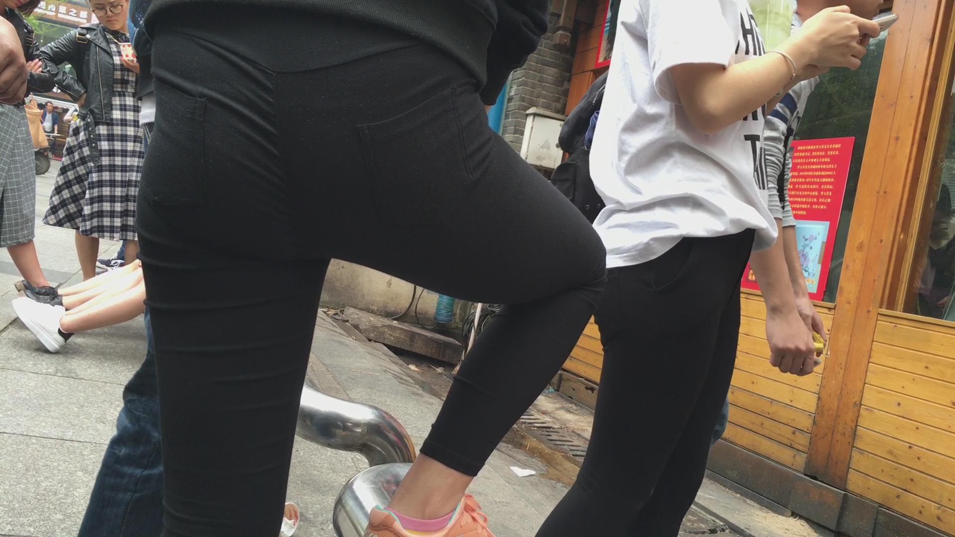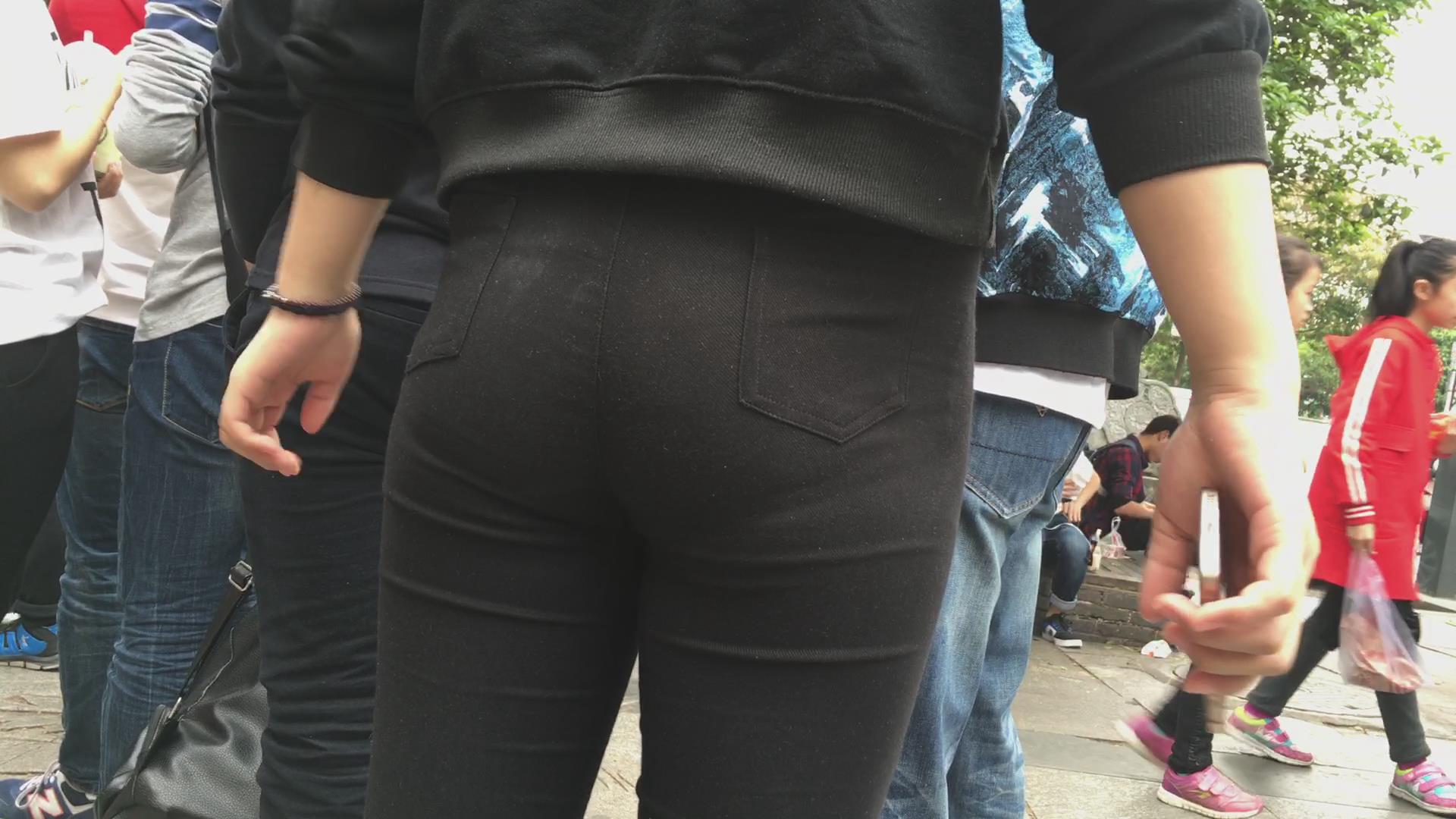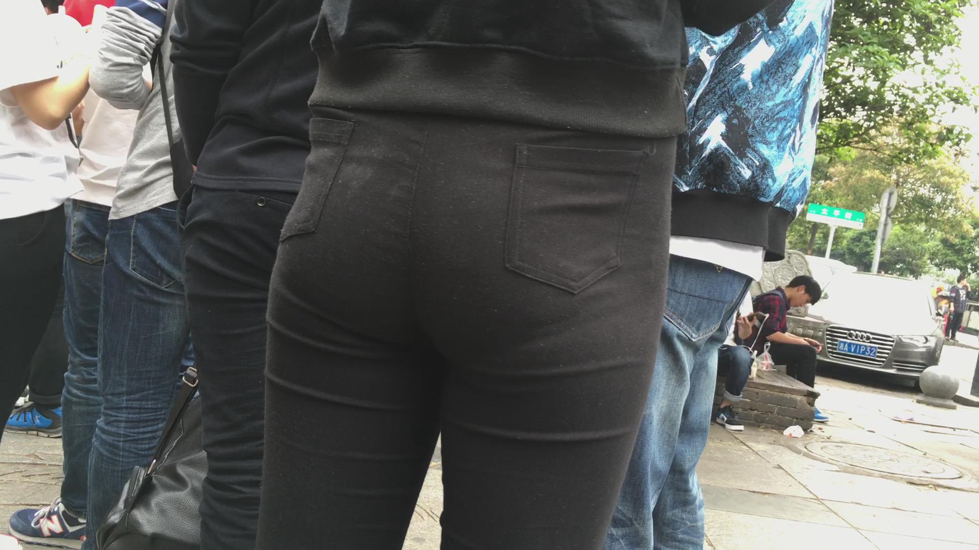街拍黑色紧身裤美臀美眉 编号2205