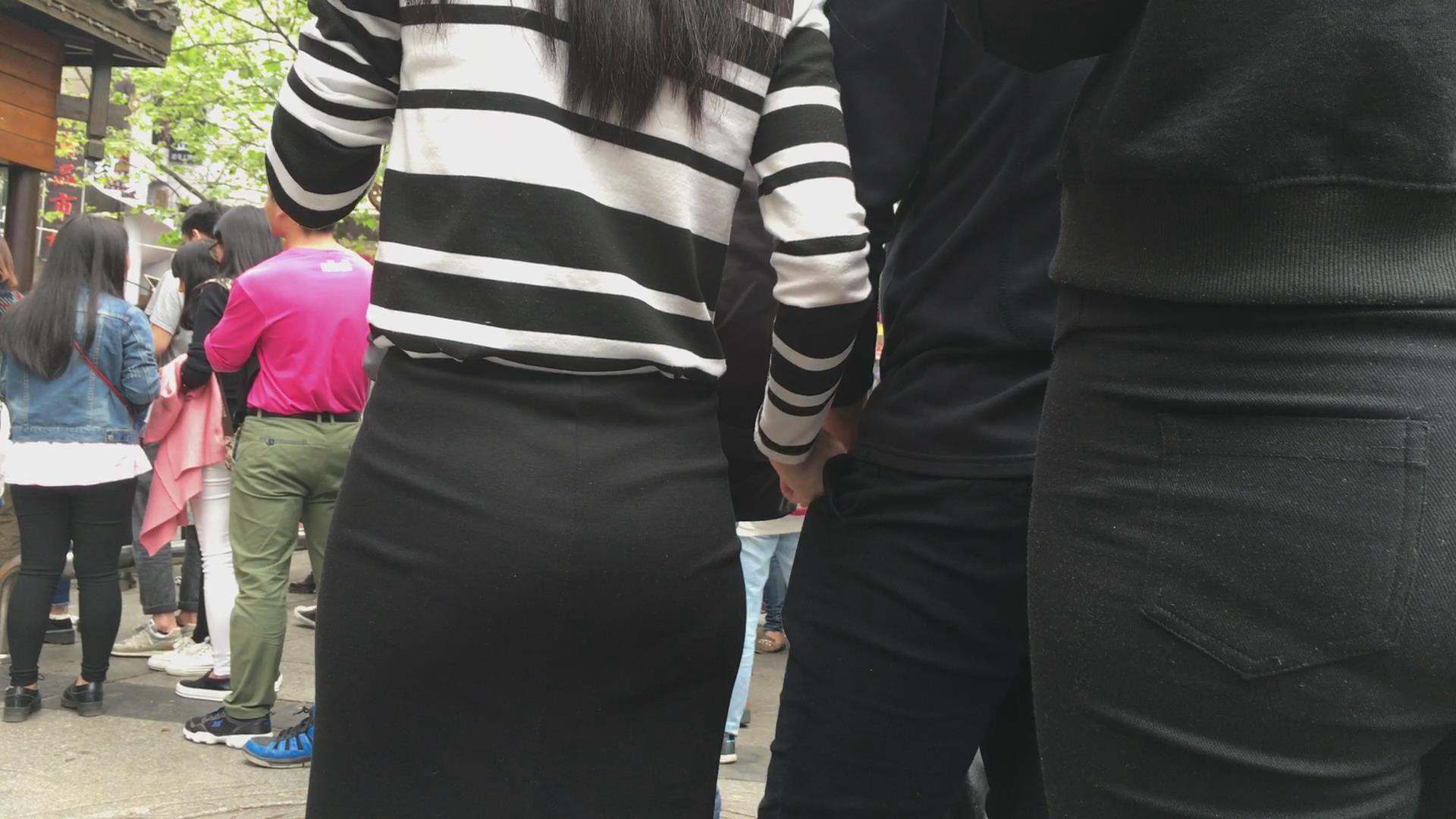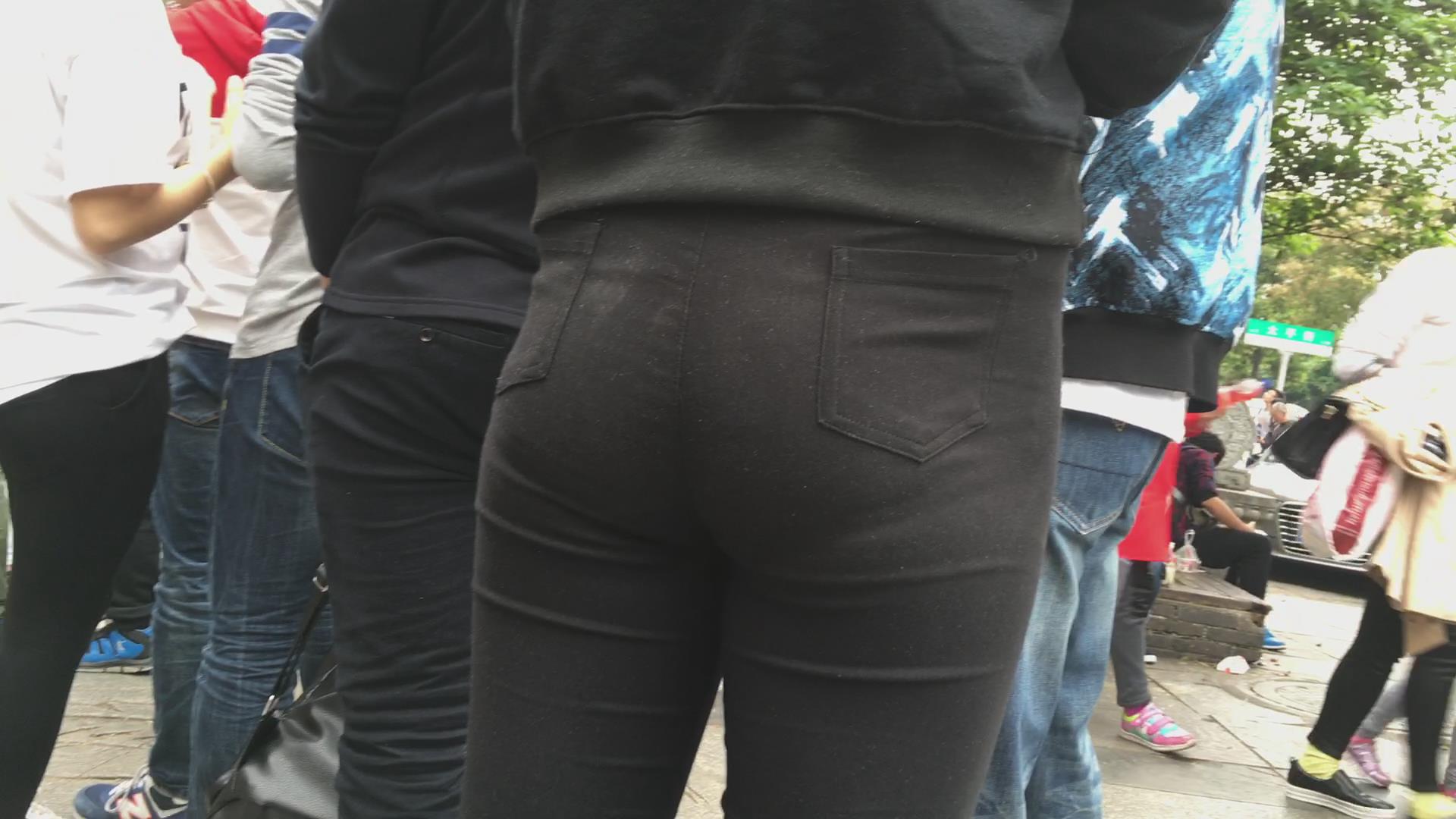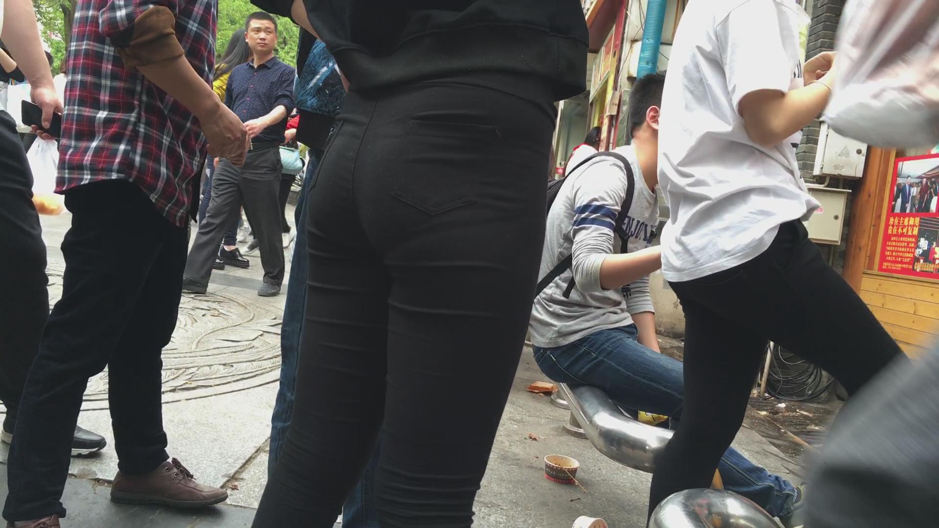 街拍黑色紧身裤美臀美眉 编号2205