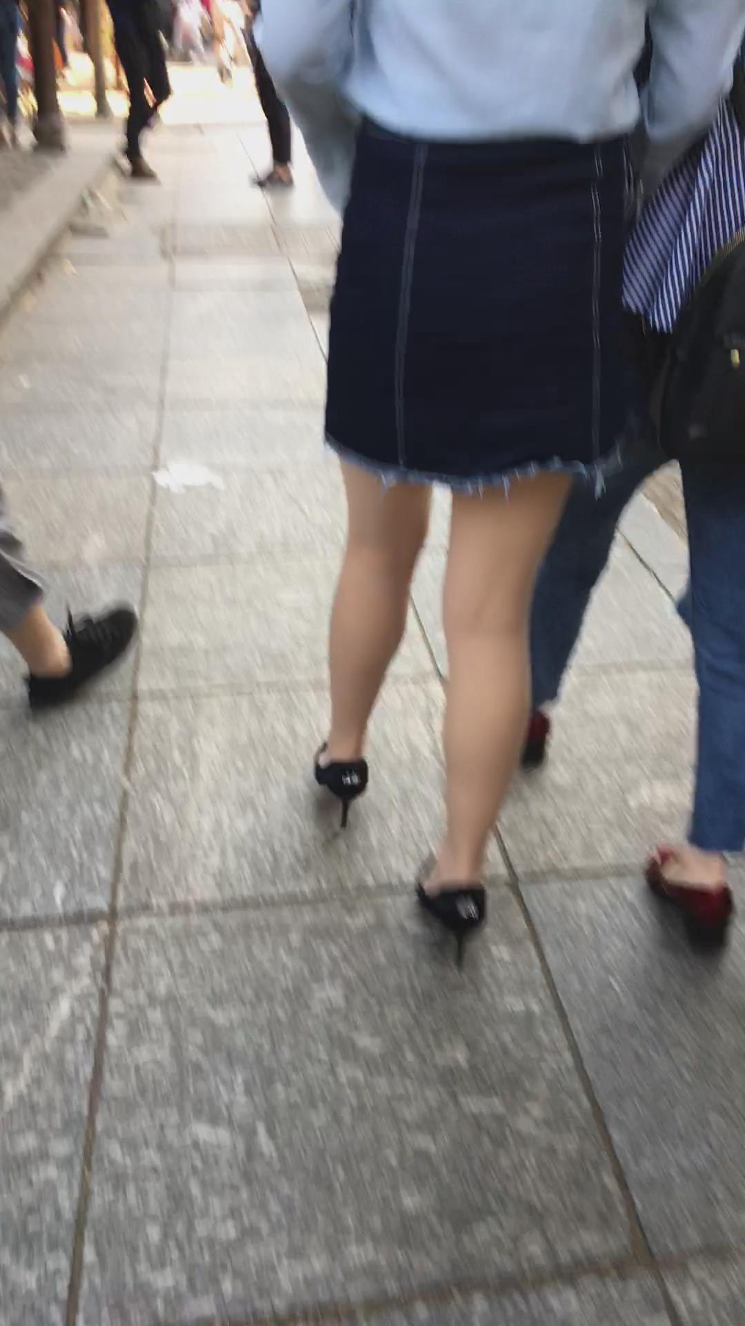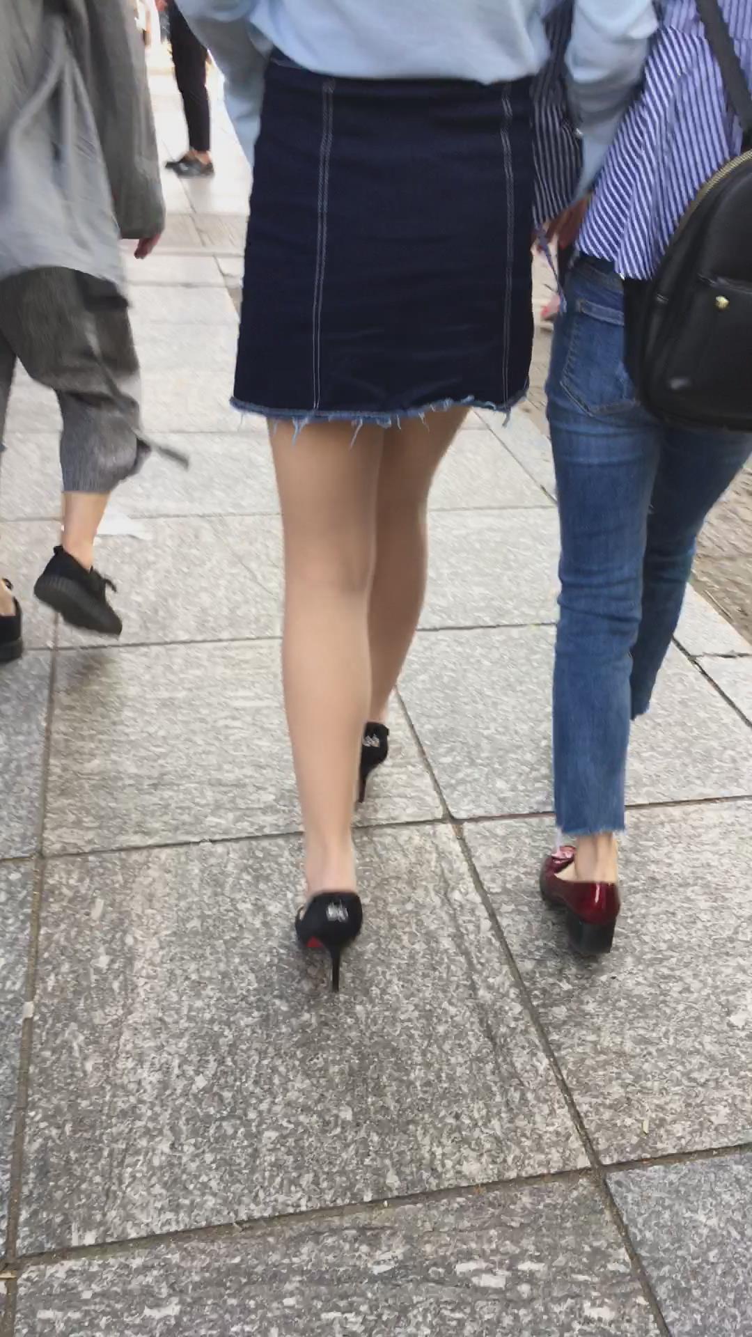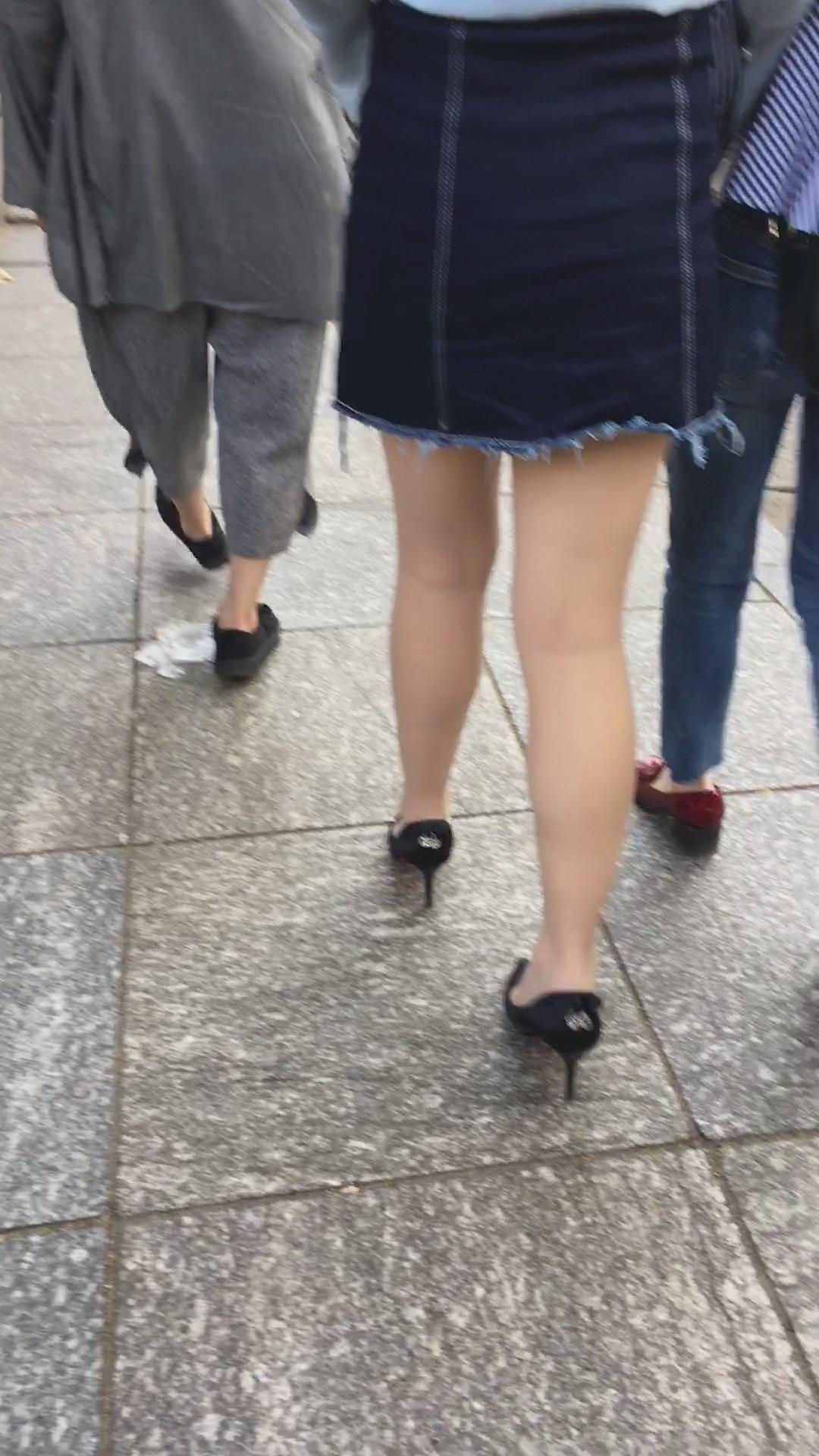 跟拍高跟鞋牛仔裙美眉 编号2209