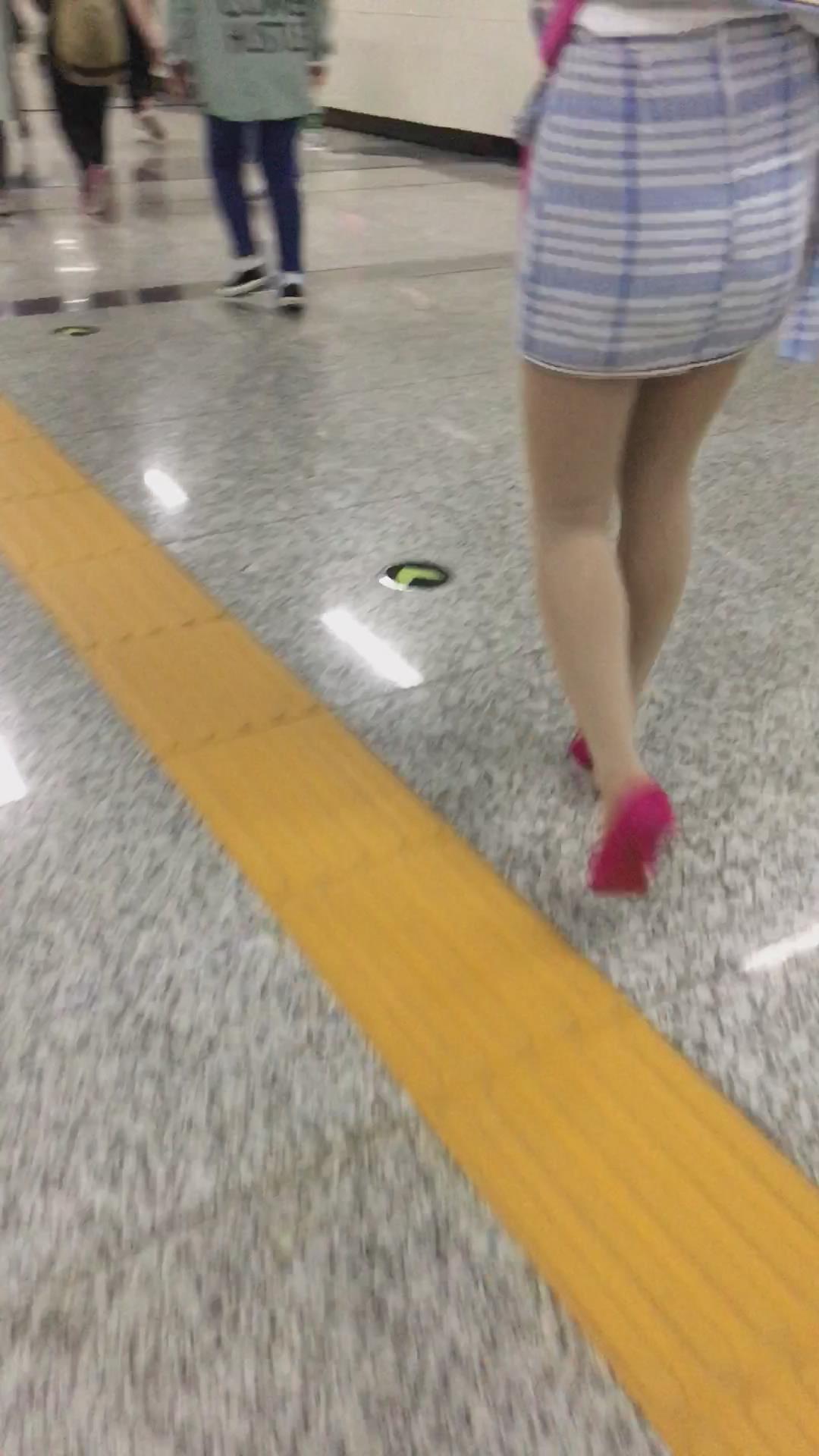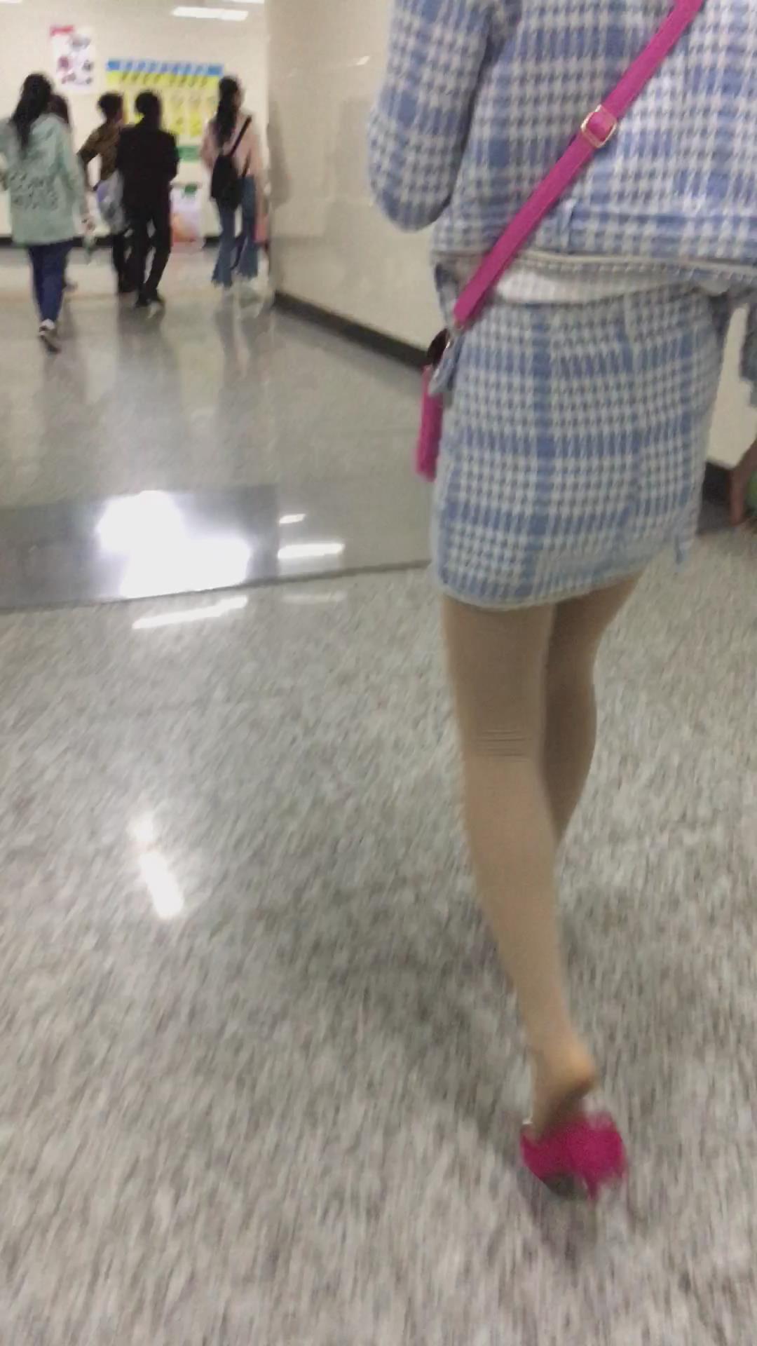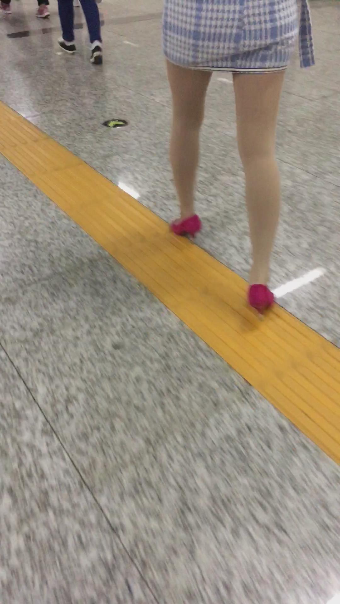 跟拍粉色高跟鞋紧身包臀裙美眉 编号2216