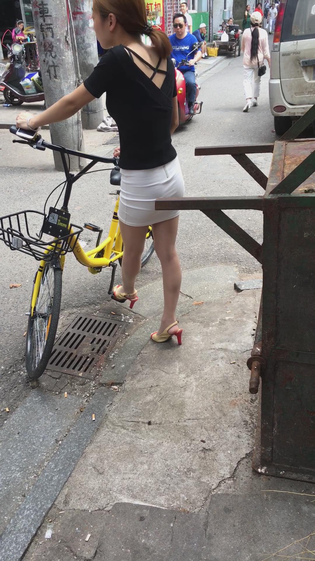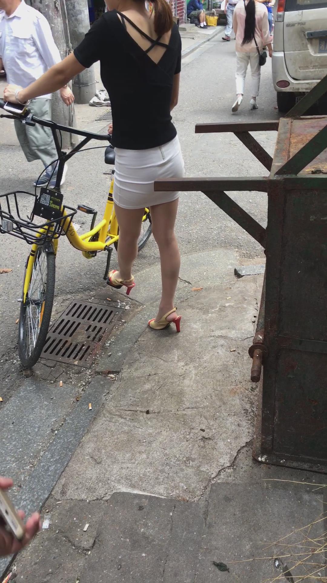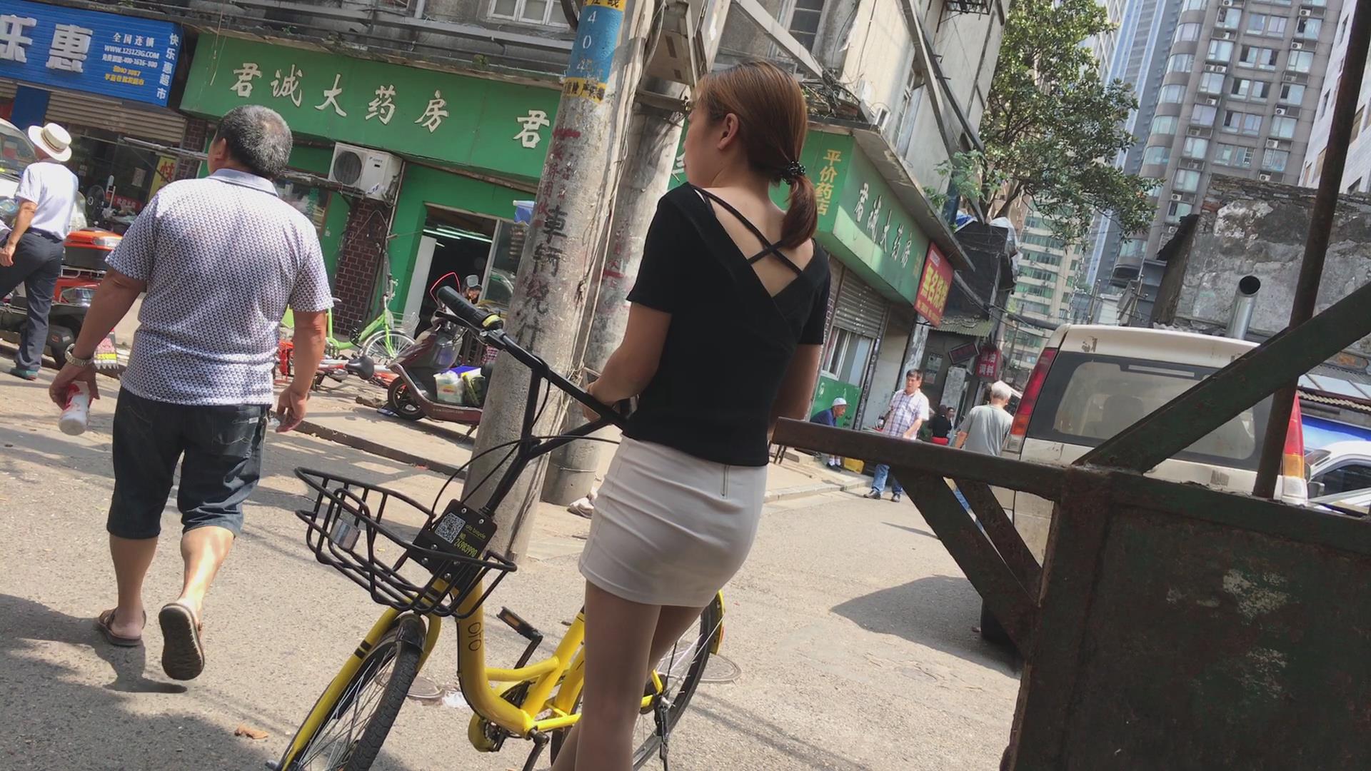 街拍极品包臀裙美女、准备骑小黄车去哪呢 编号2223