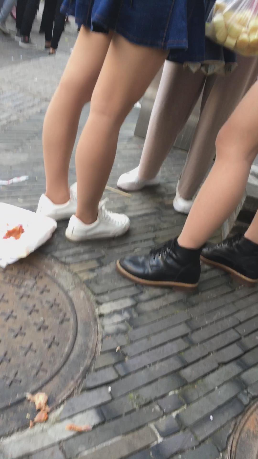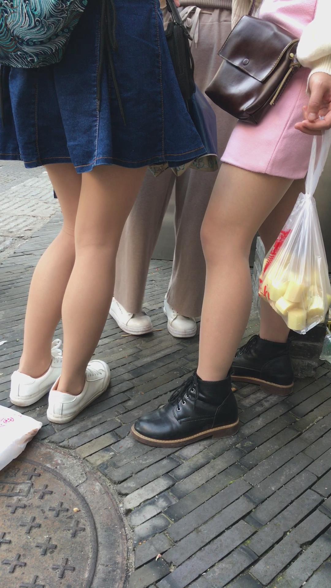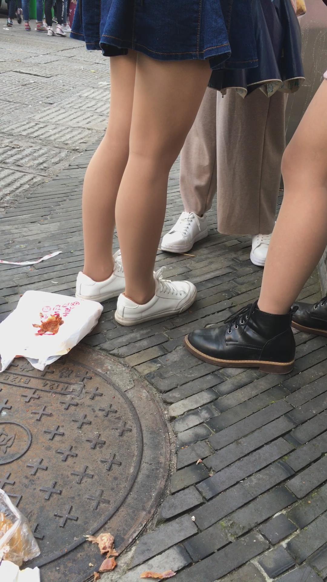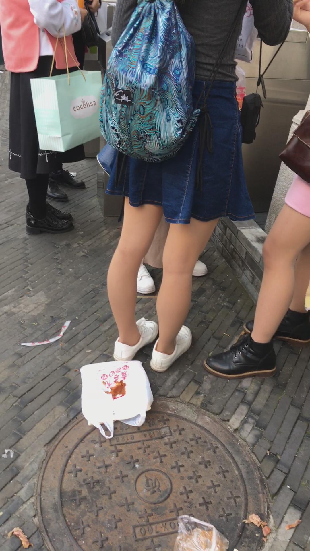 街拍小清新气质牛仔裙丝袜小妹 编号2227