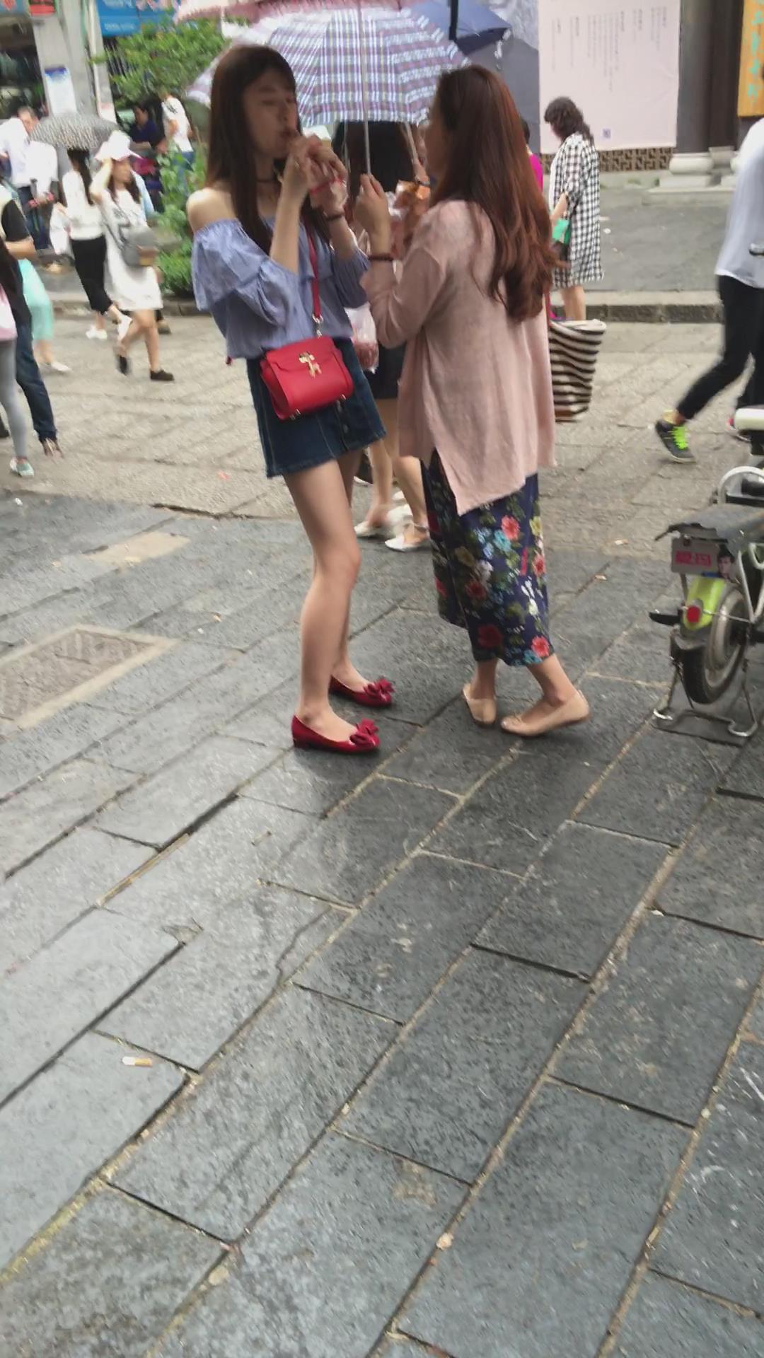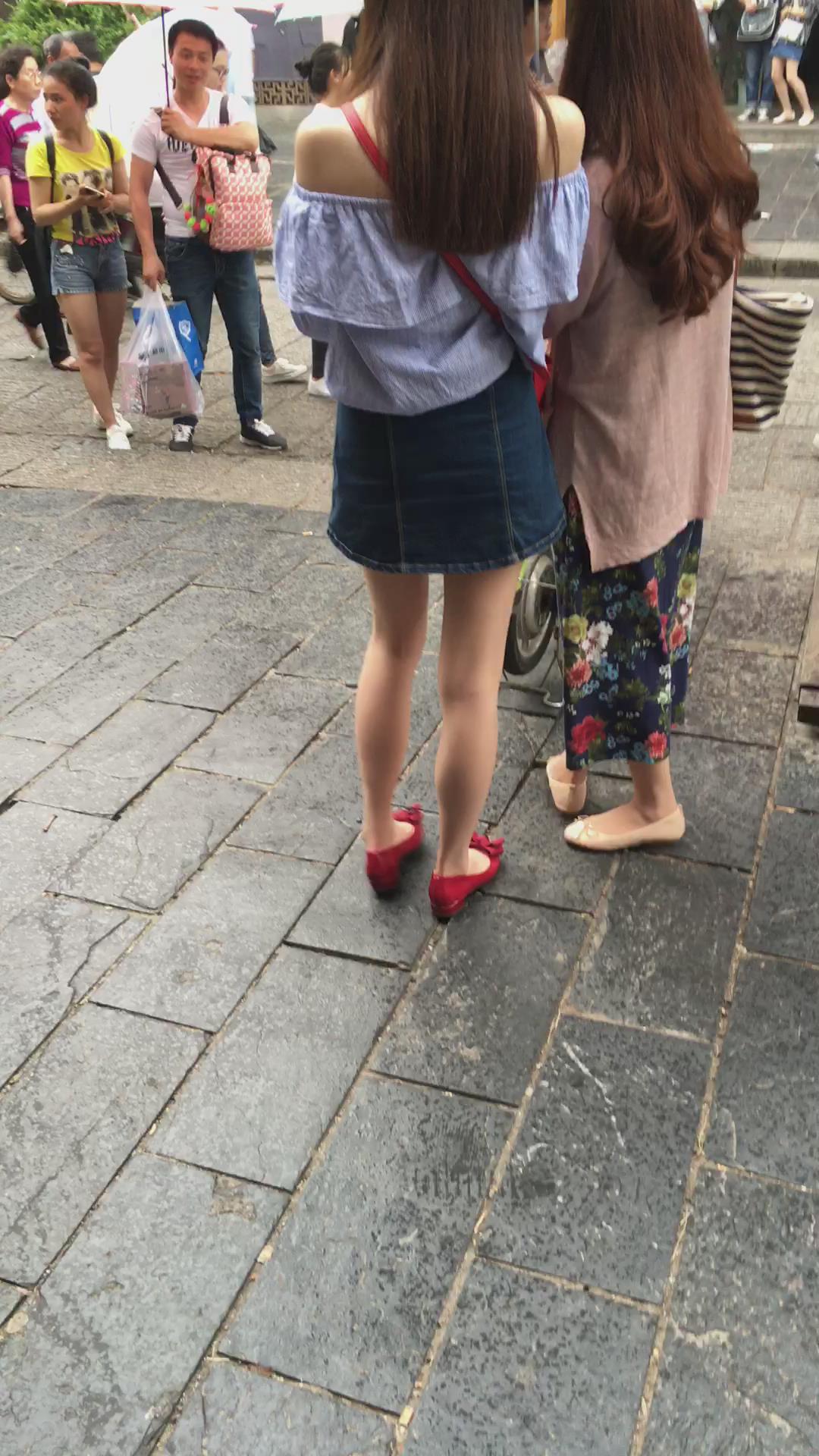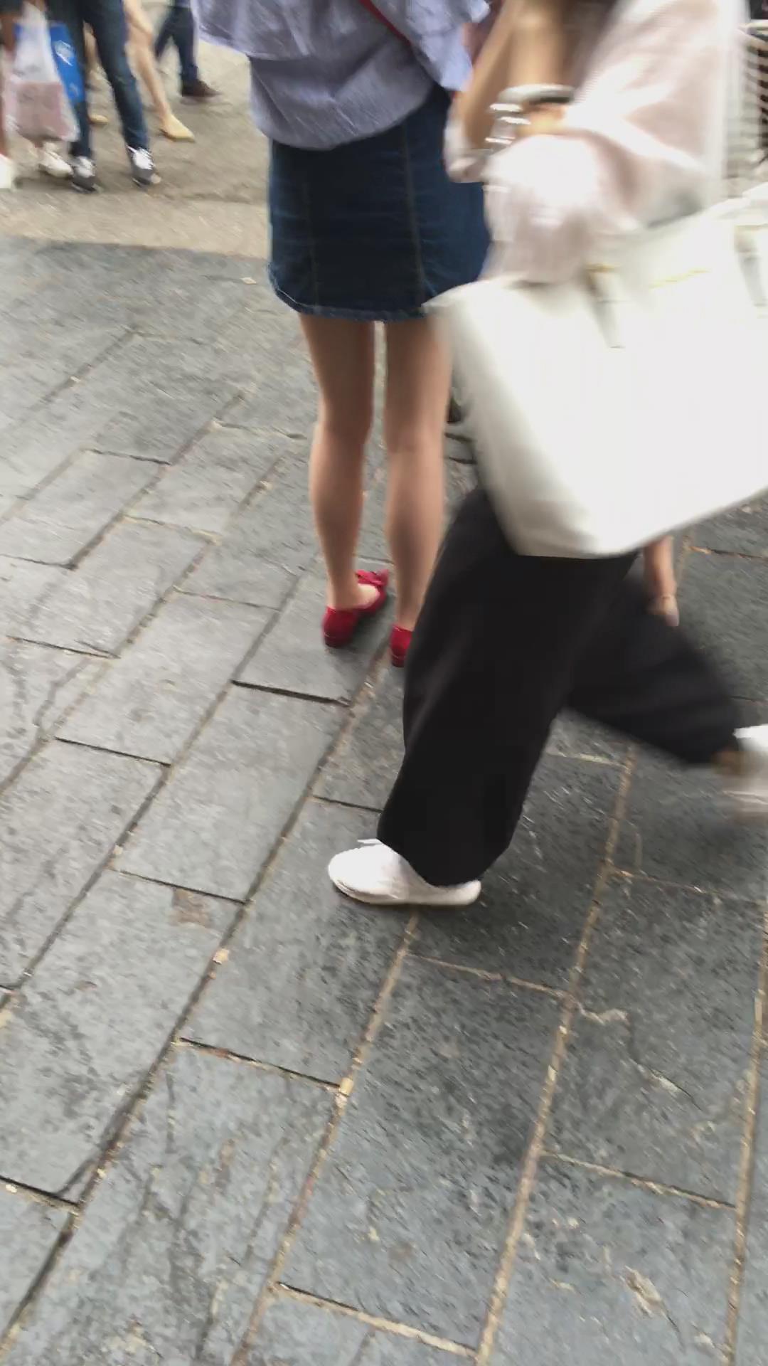 街拍短裙露肩装小清新美女姐姐 编号2236