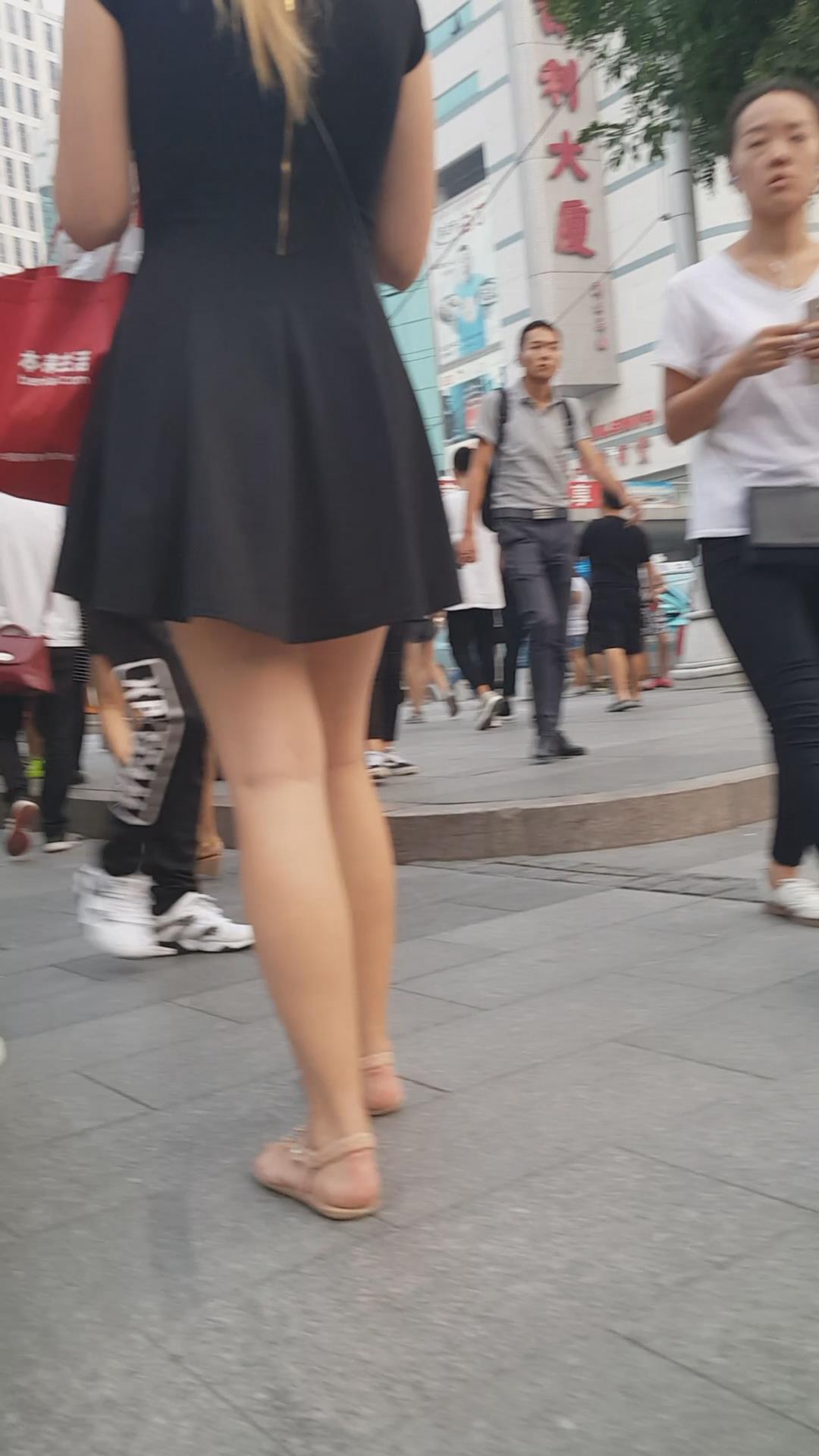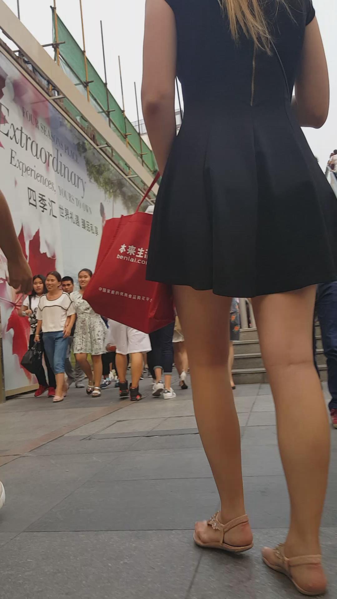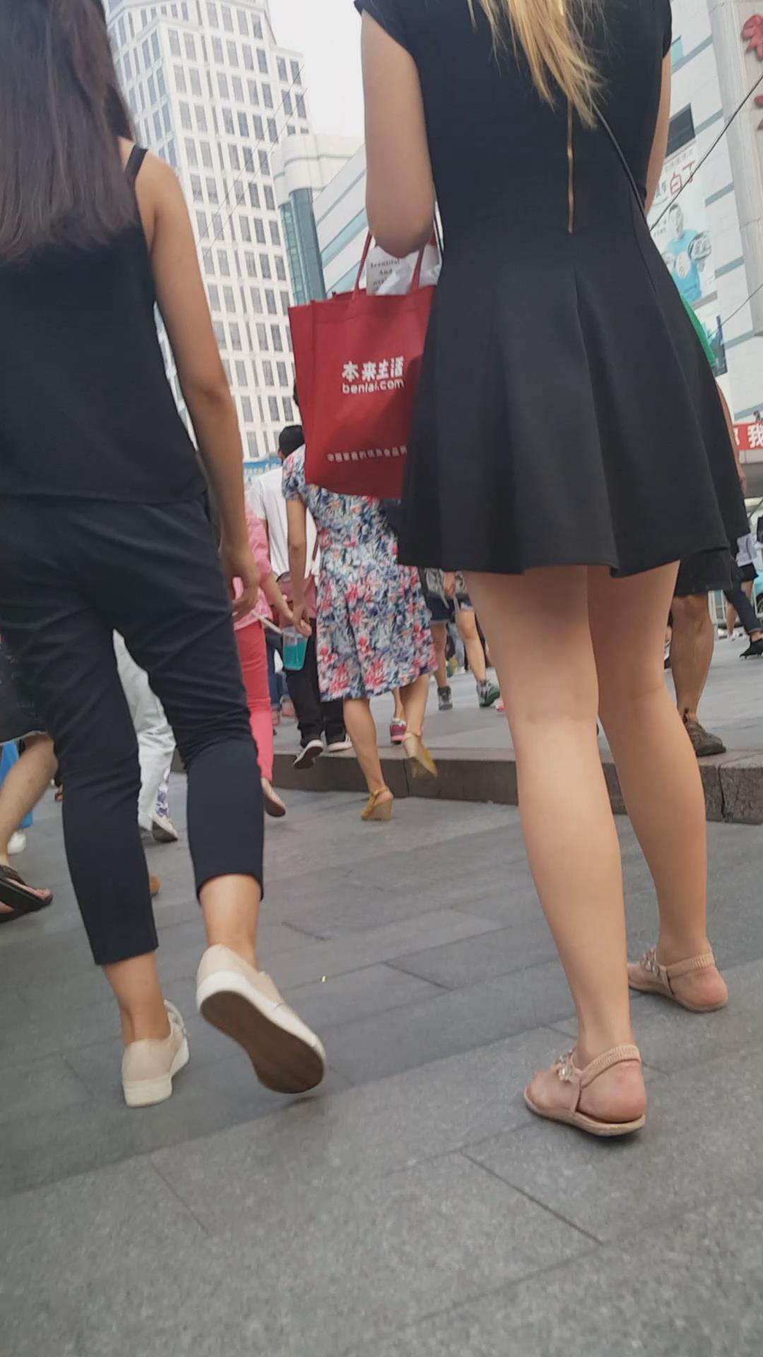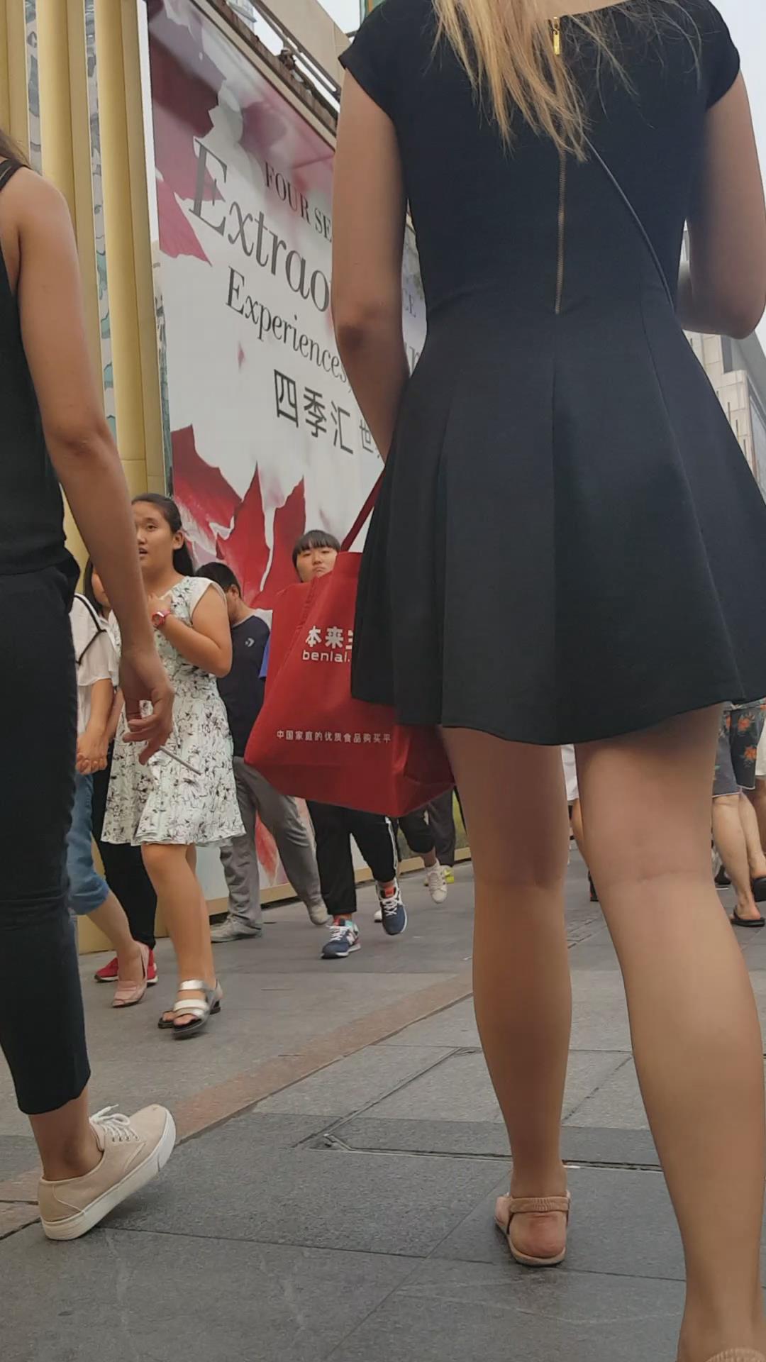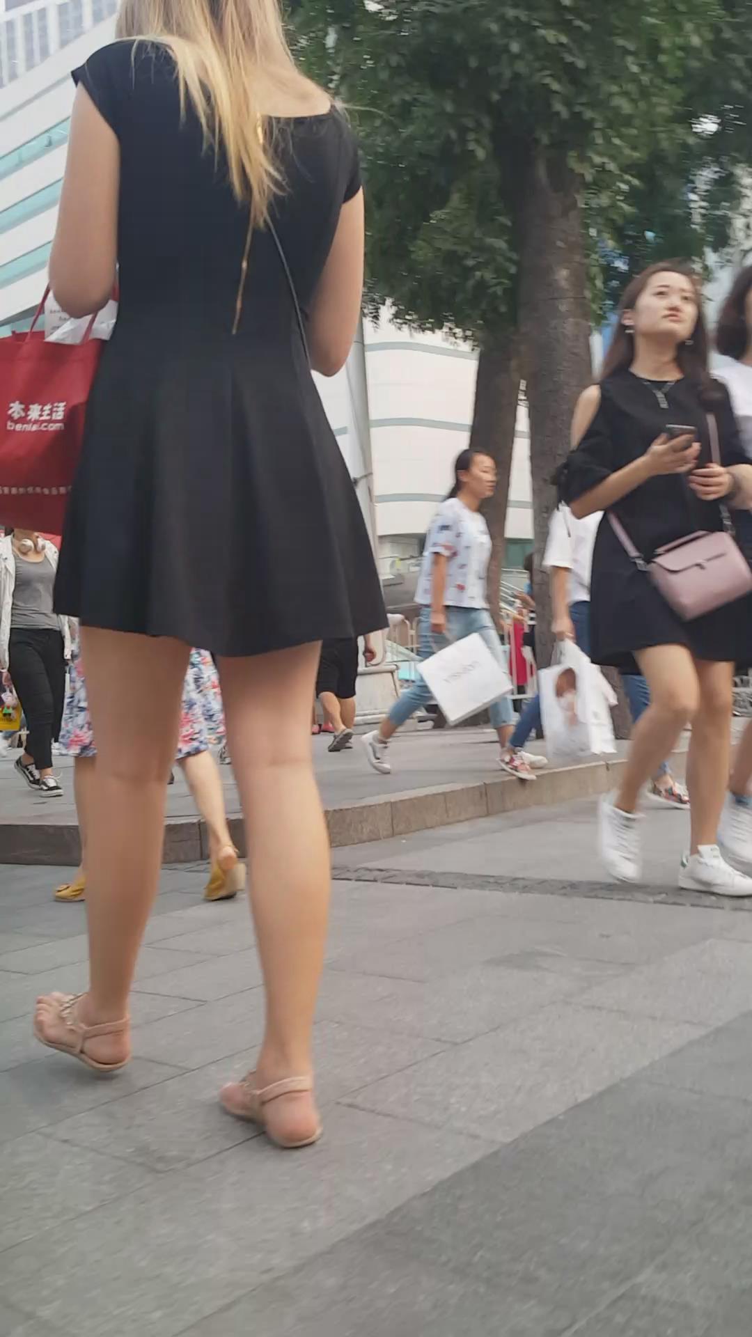 走路风度翩翩的黑色连衣裙外国美女 编号2277