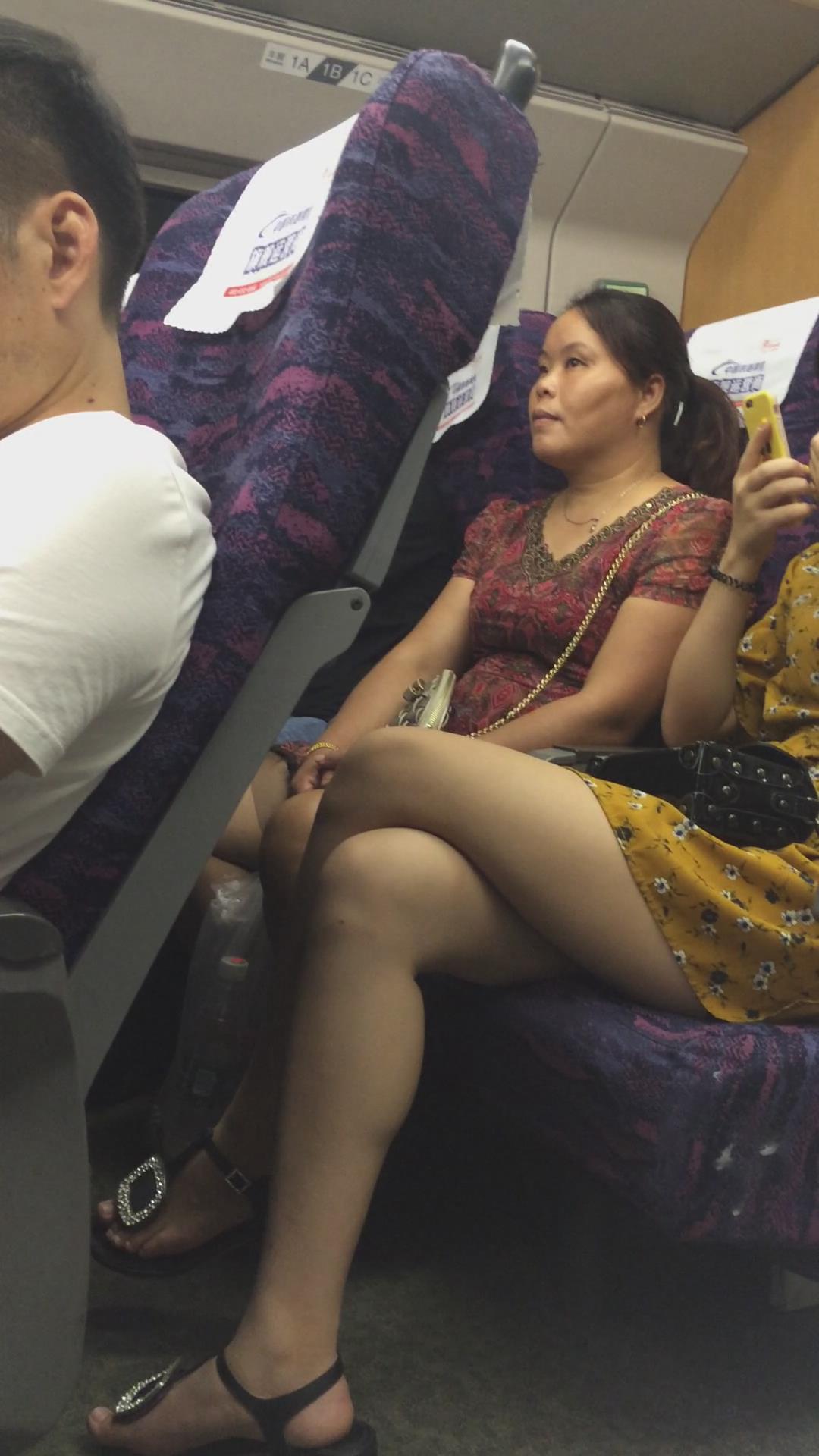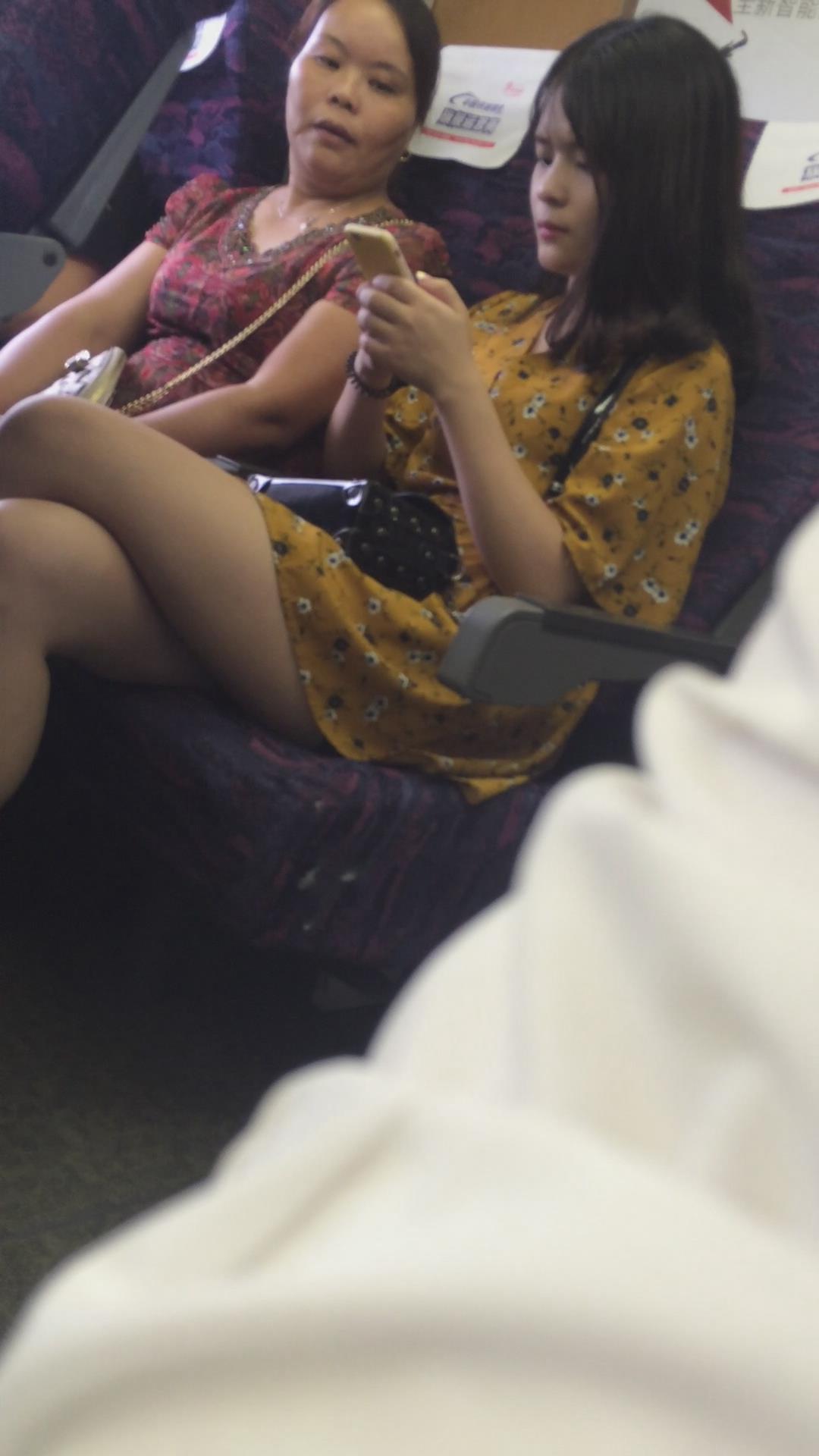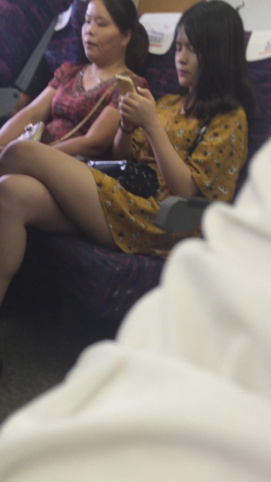 高铁上的美腿连衣裙小清新美女 编号2340