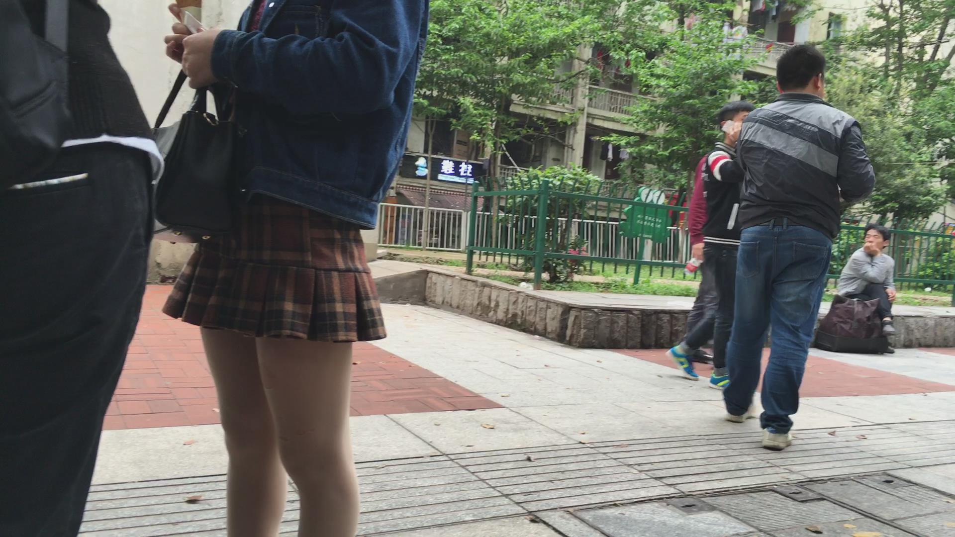甜美齐B短裙美女,肉色丝袜上好几个洞 编号2348