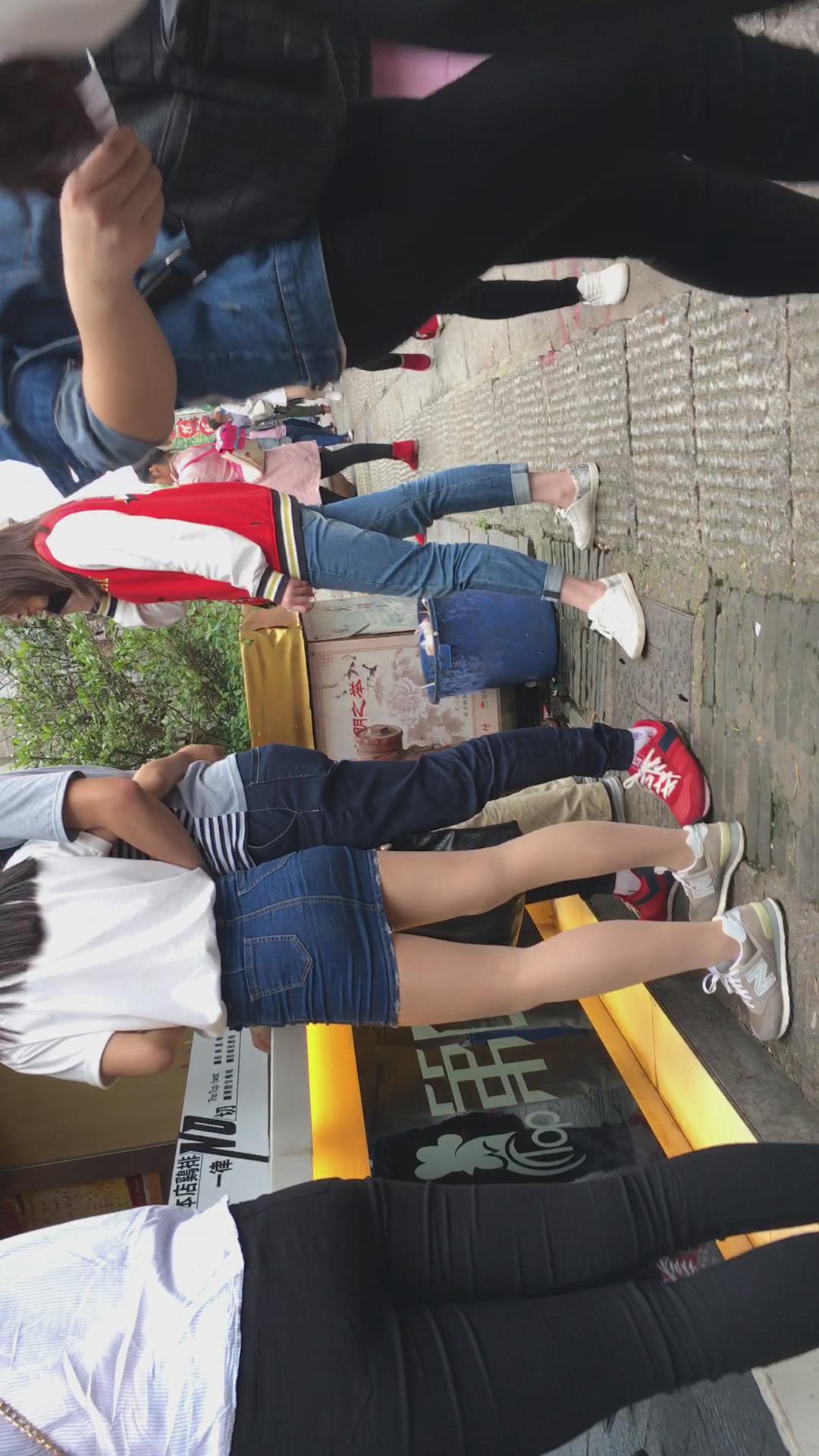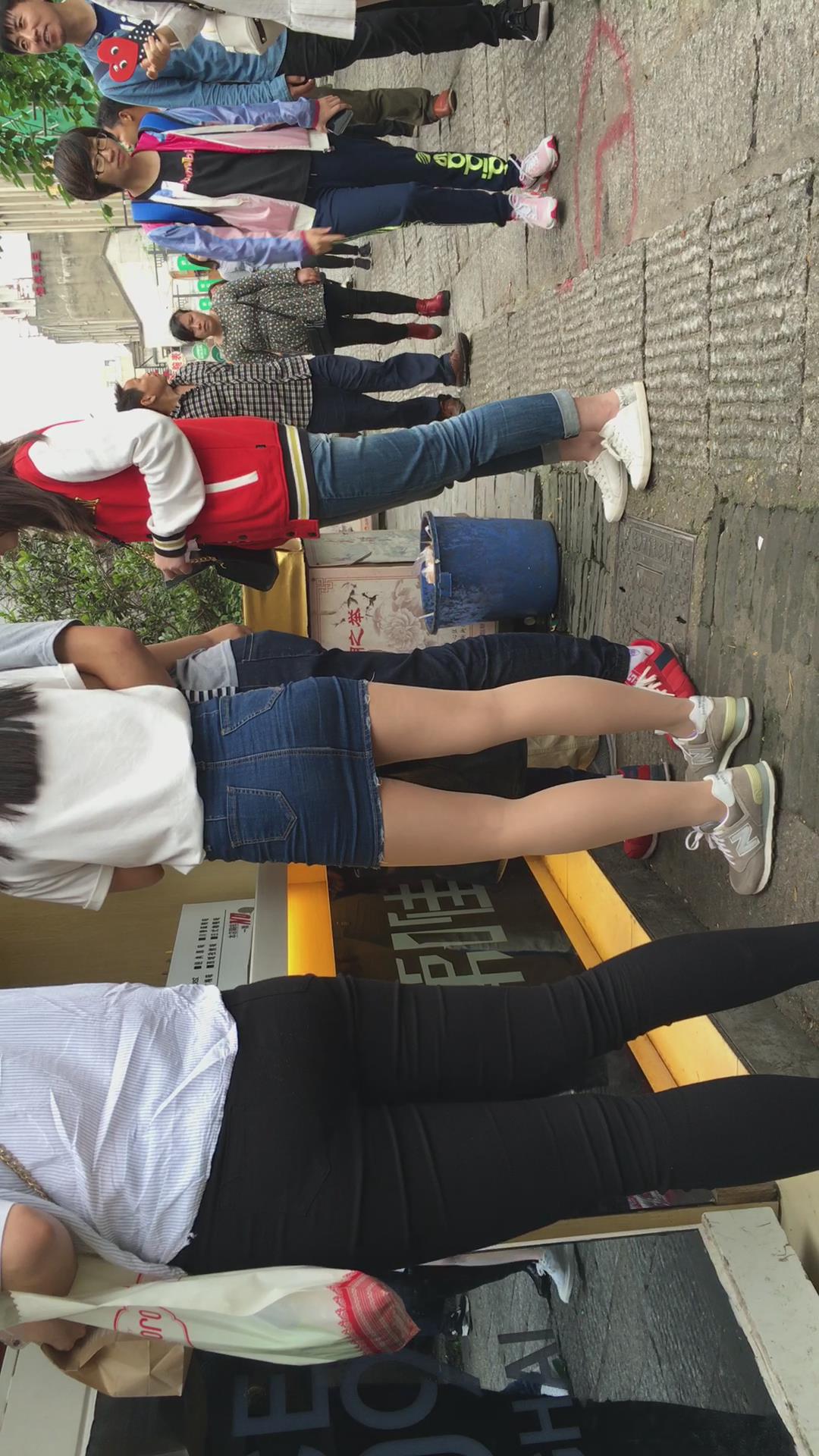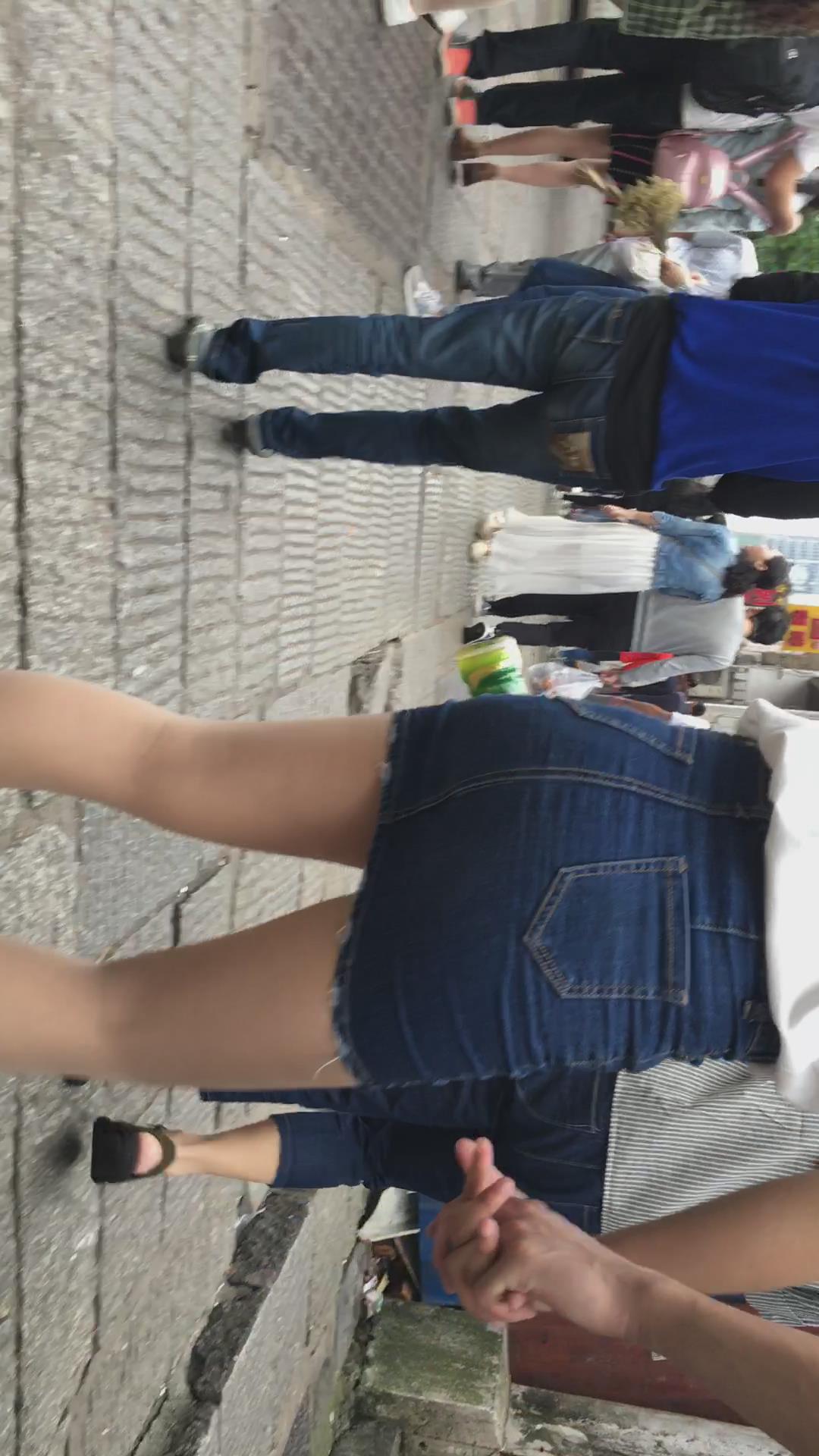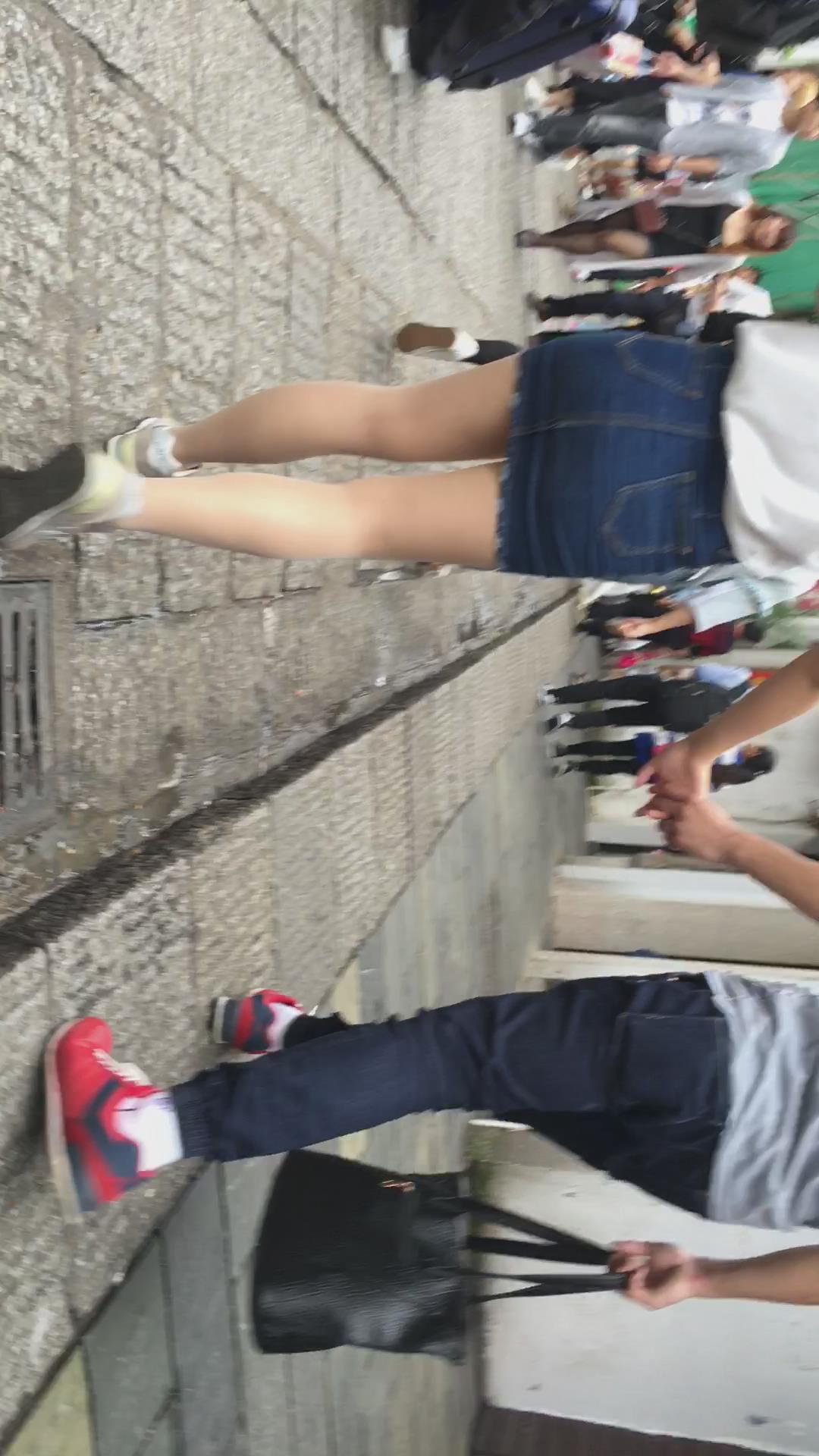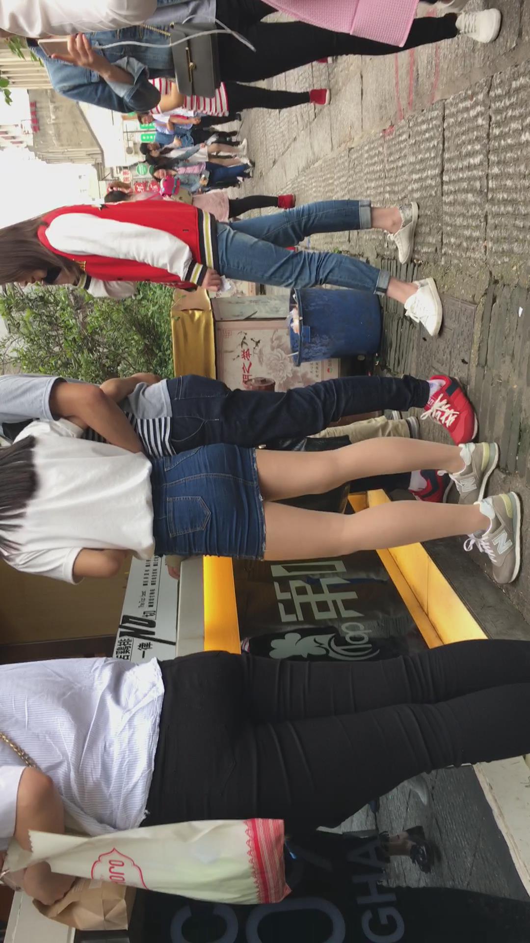 人群中一眼就看见了这位超短牛仔包臀裙小清新妹子 编号2350