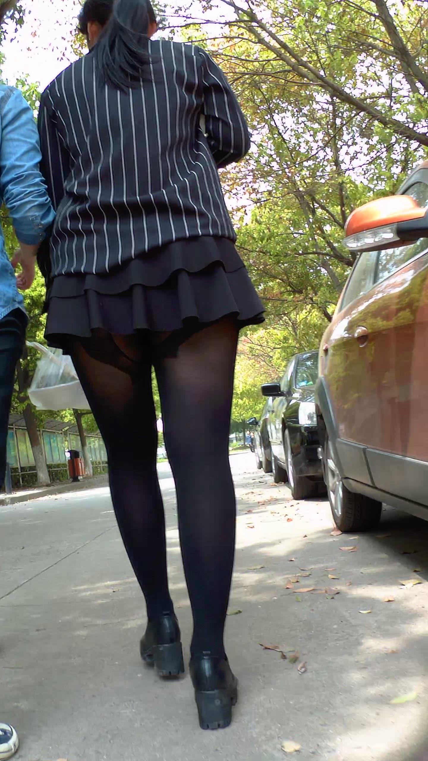 街拍肥臀黑丝超短裙美眉,裙下风光无限好 编号2356