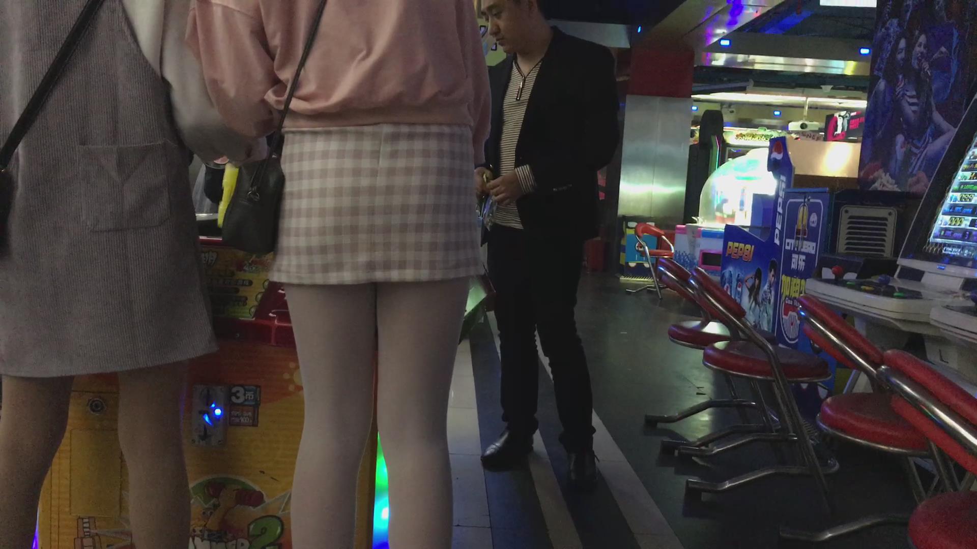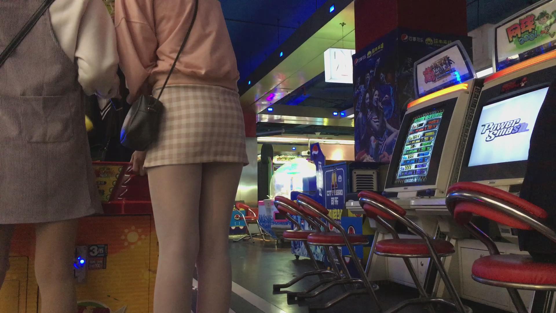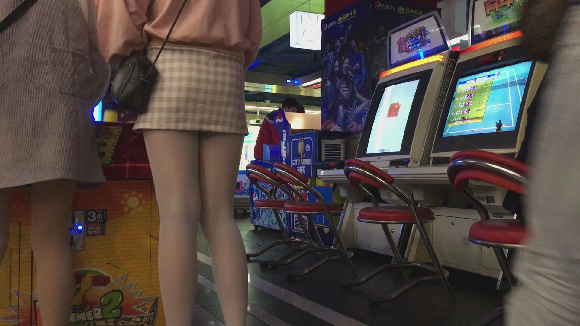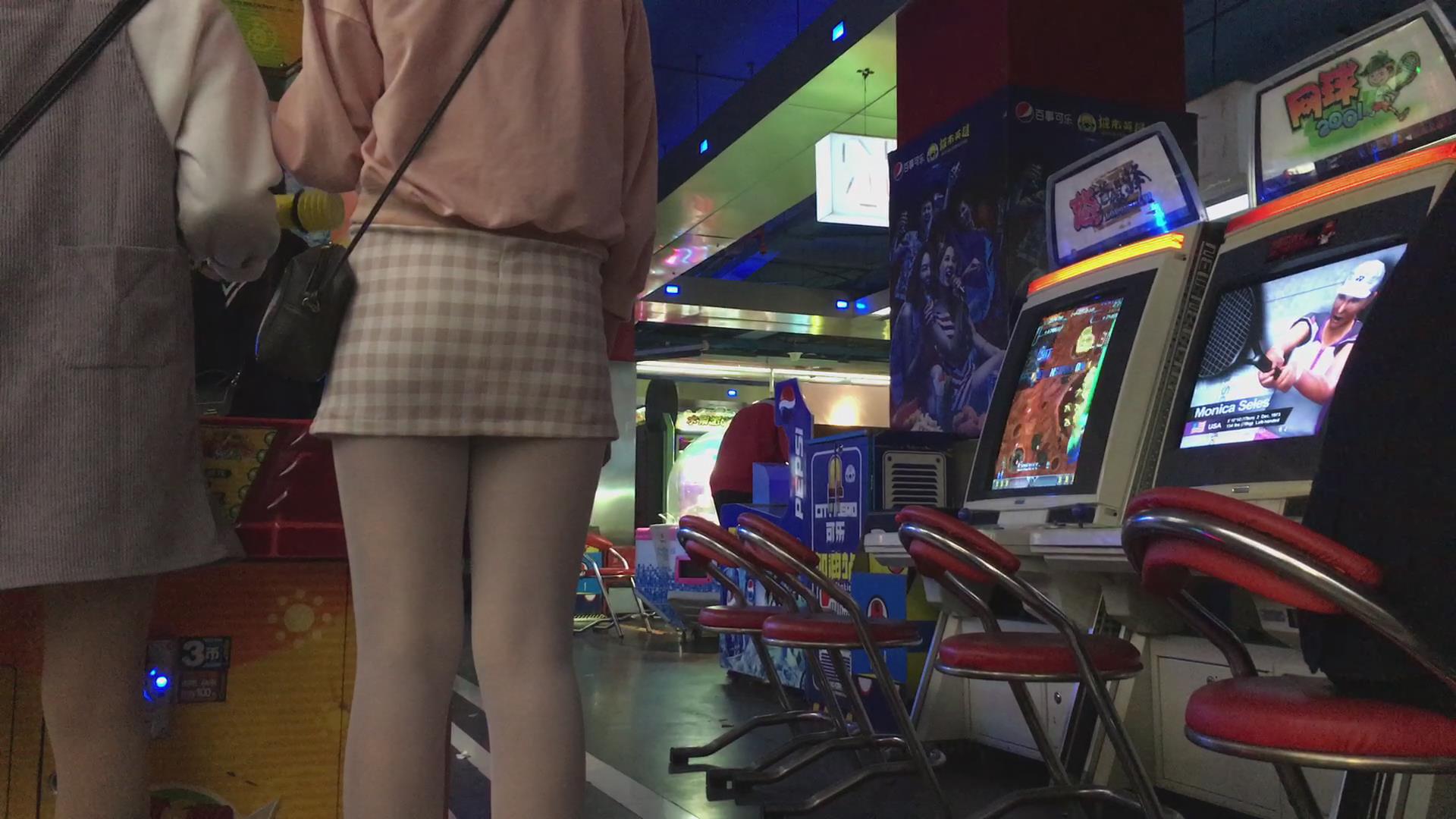 电玩城超性感的包臀肉丝短裙美女玩投篮机 编号2357
