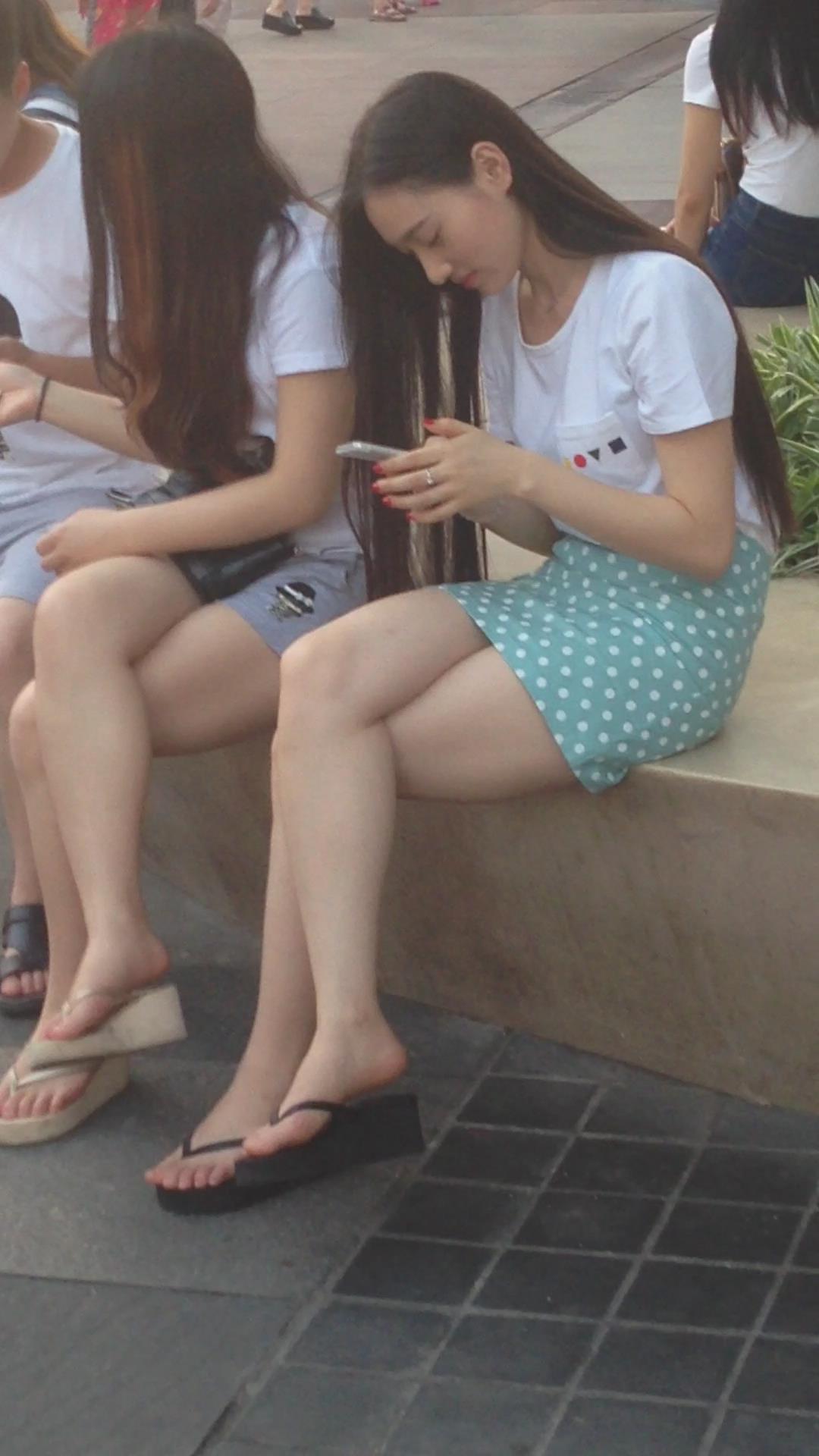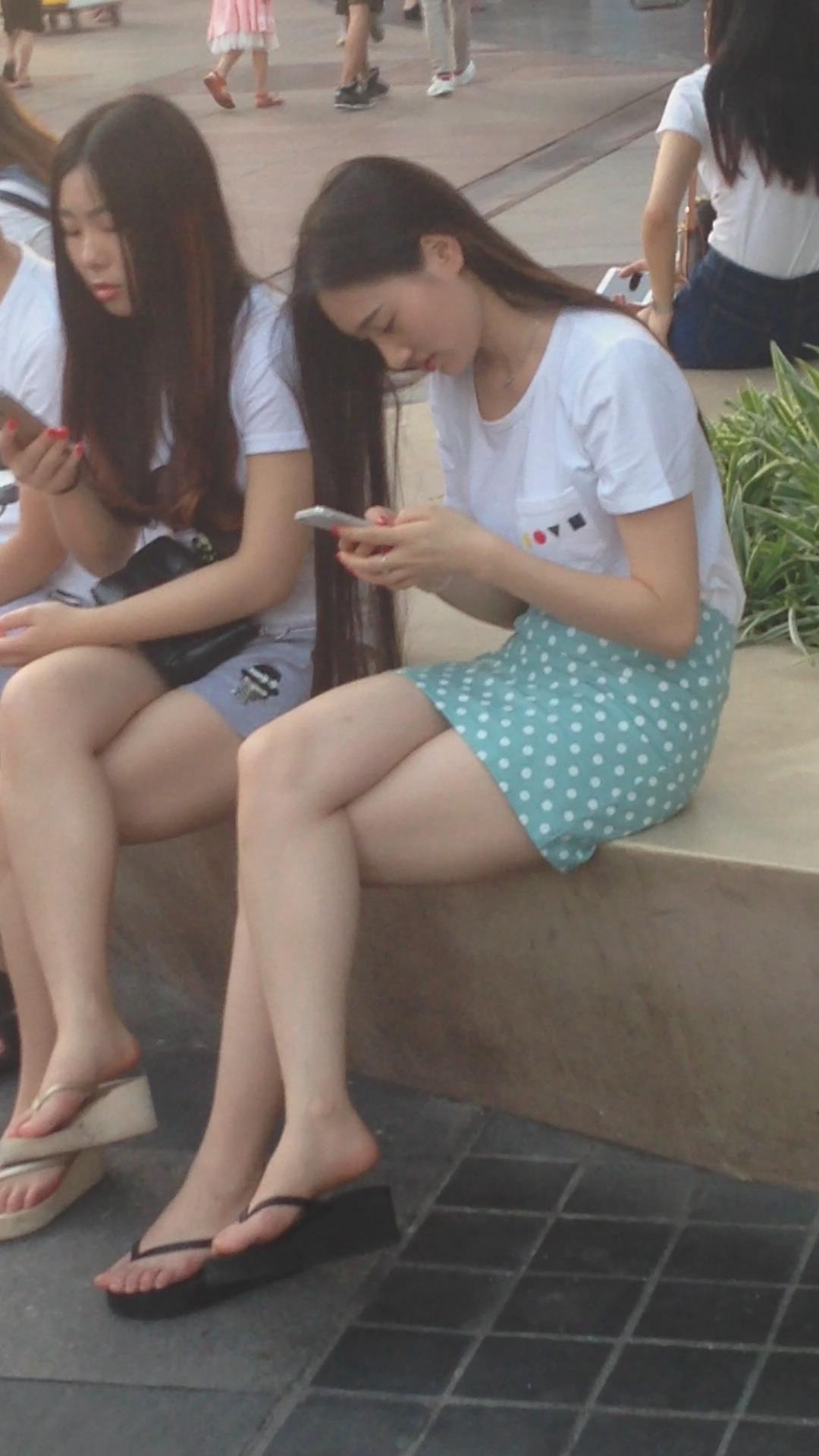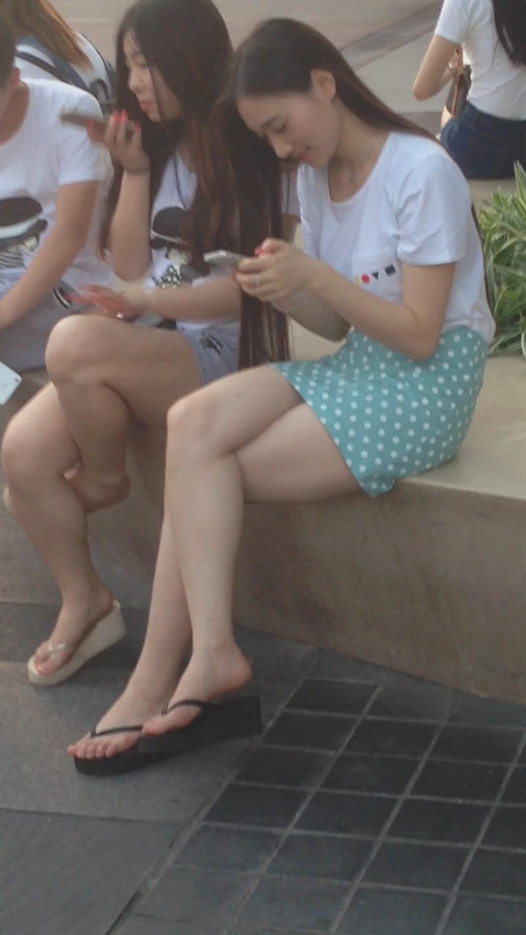 花坛边休息的白皙嫩腿姐妹花,腿玩年 编号2359