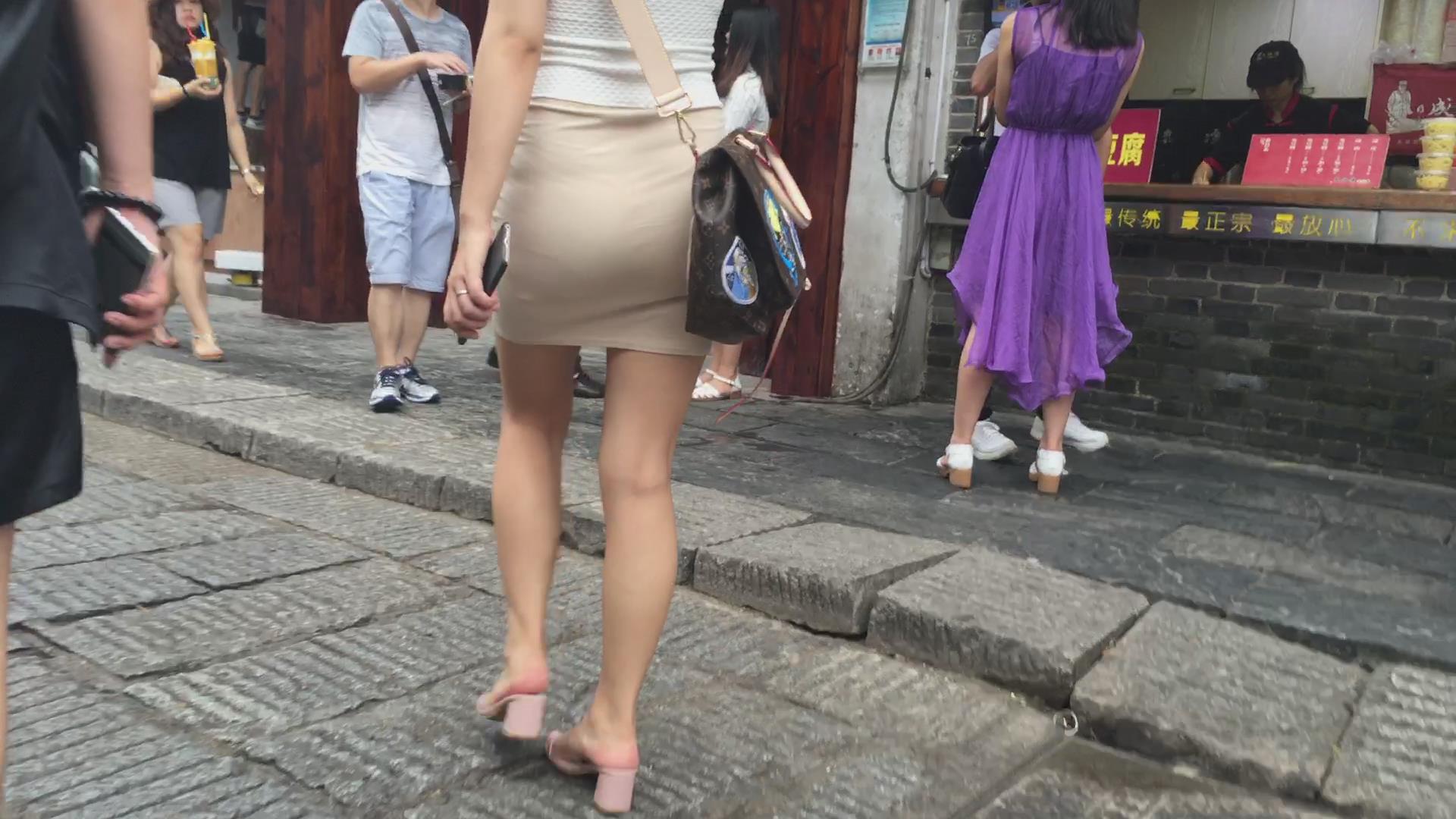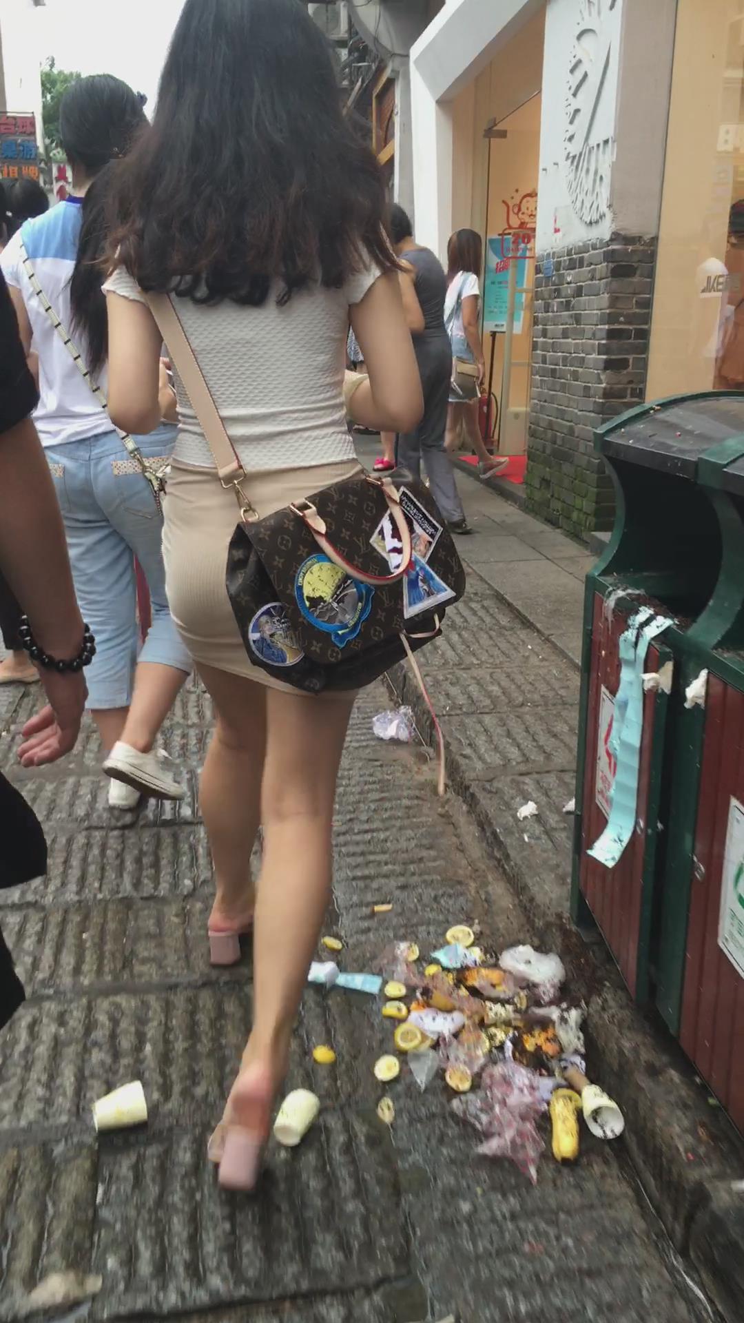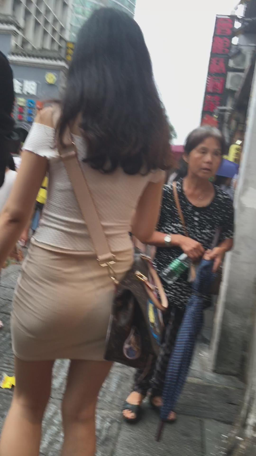 街拍性感美腿翘臀紧身裙甜美女神姐姐 编号2389