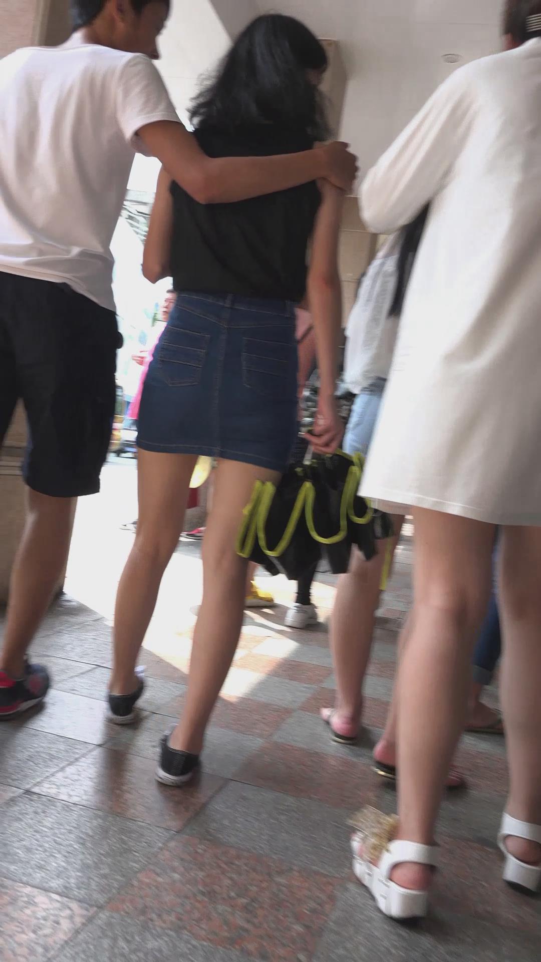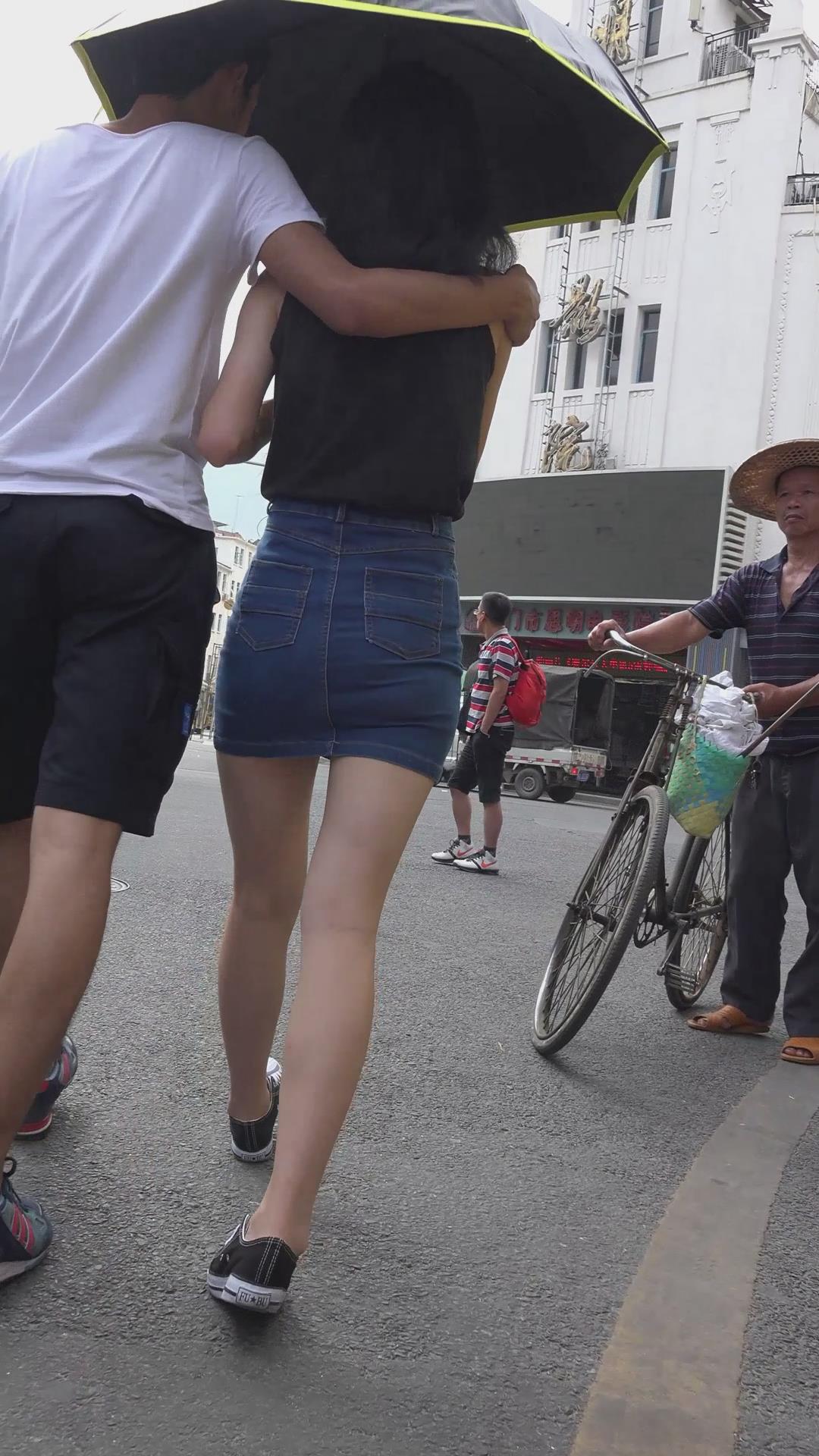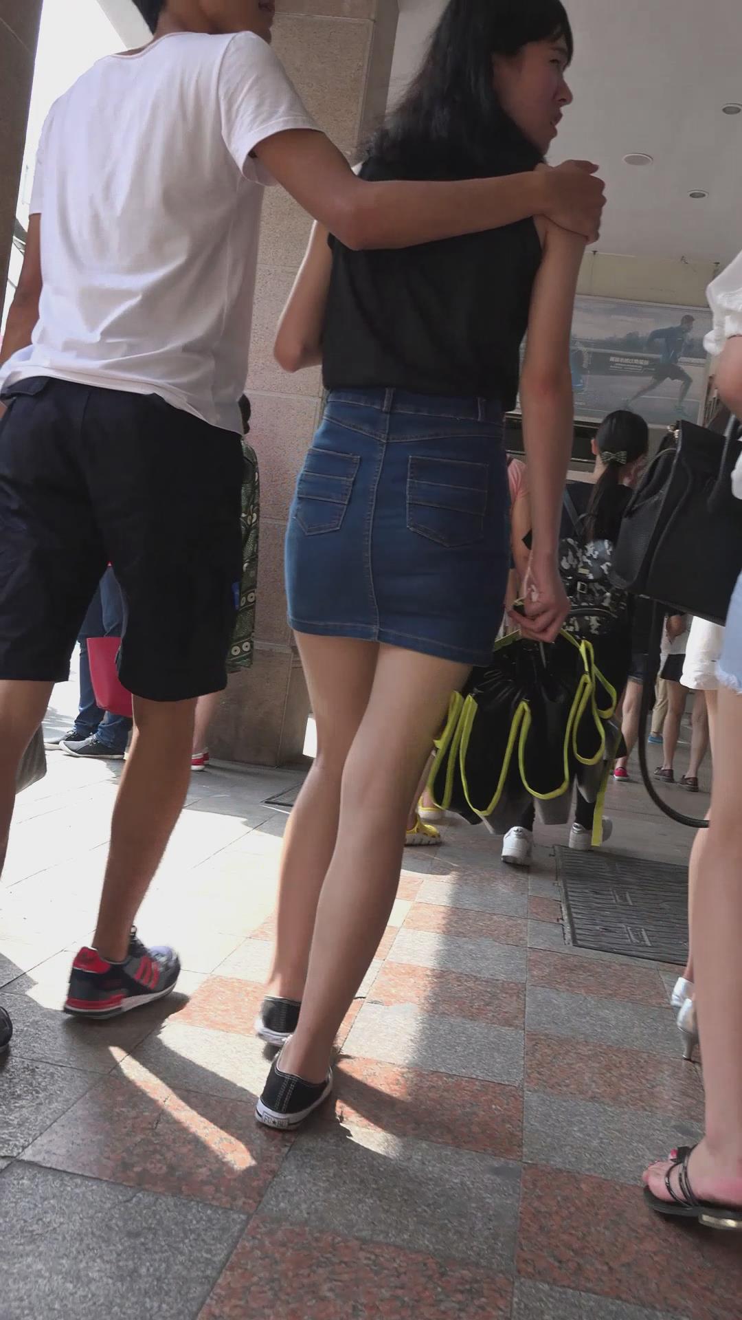 街拍小清新包臀牛仔裙美女 编号2417