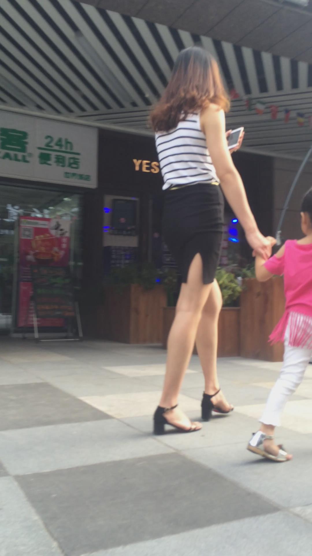 街拍开叉包臀裙美腿少妇一家三口 编号2426