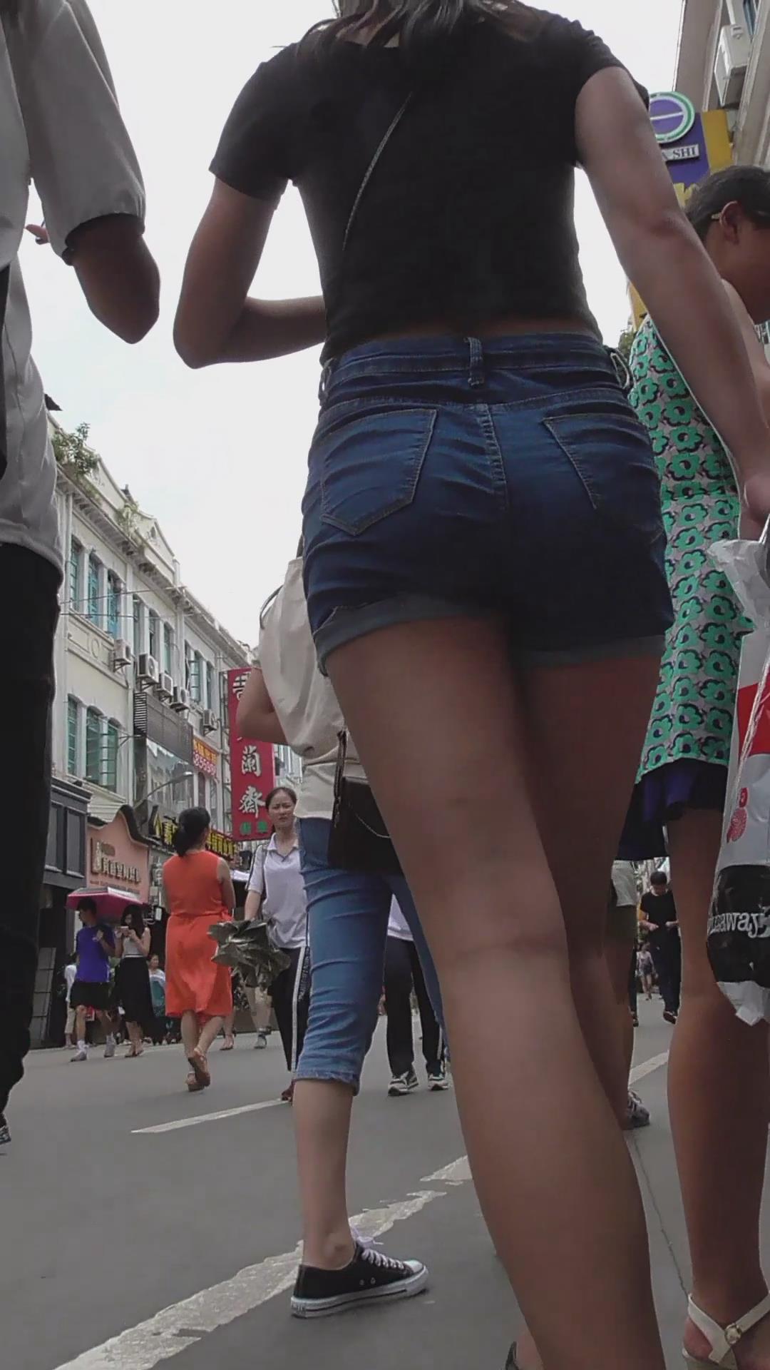 街拍牛仔热裤美臀美女 编号4662