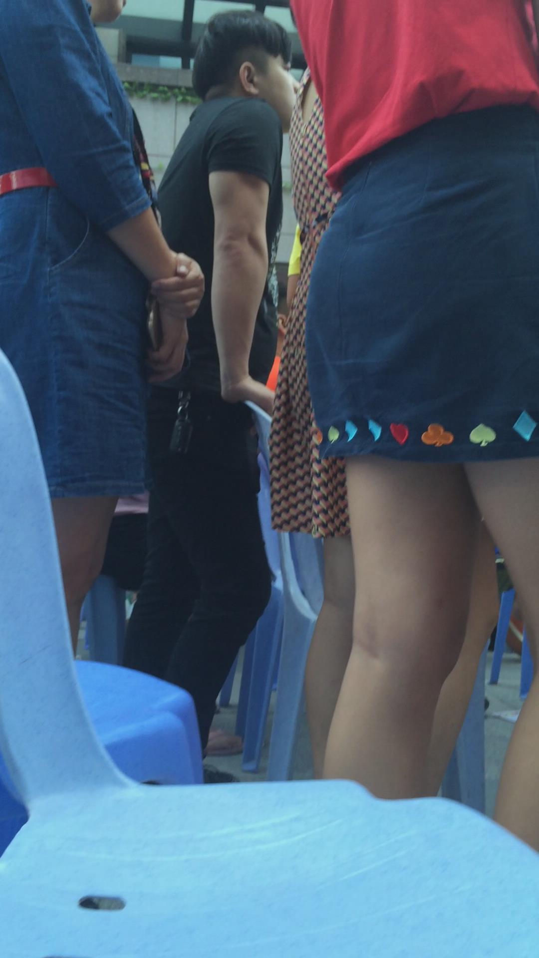 红衣蓝色小短裙美女在看什么呢 编号2442
