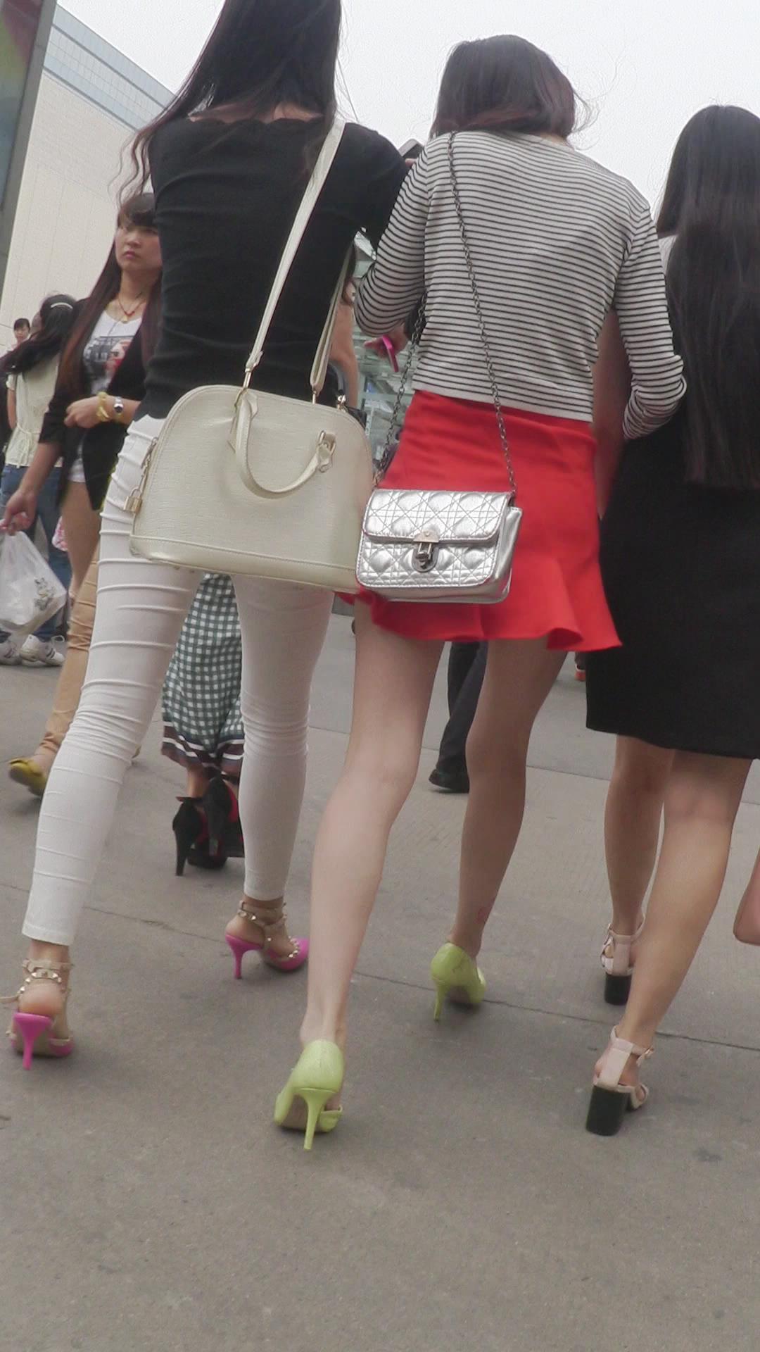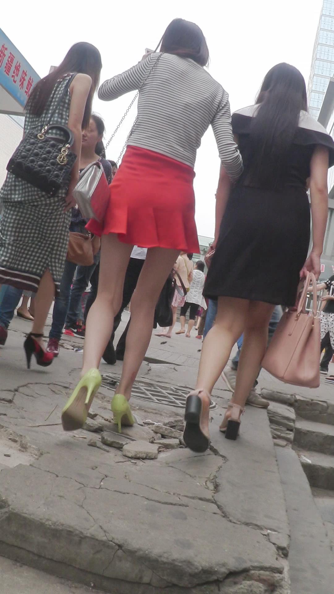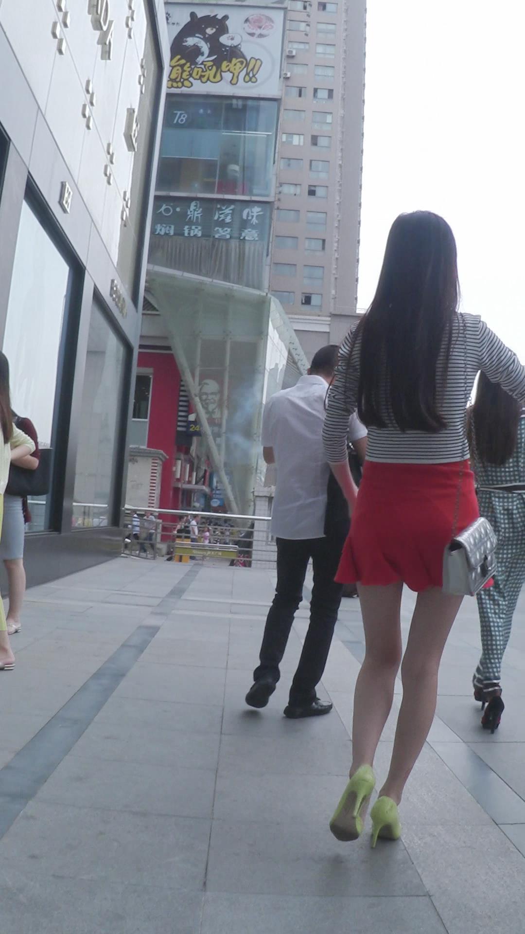 街拍红色小短裙高跟鞋性感美女 编号2446