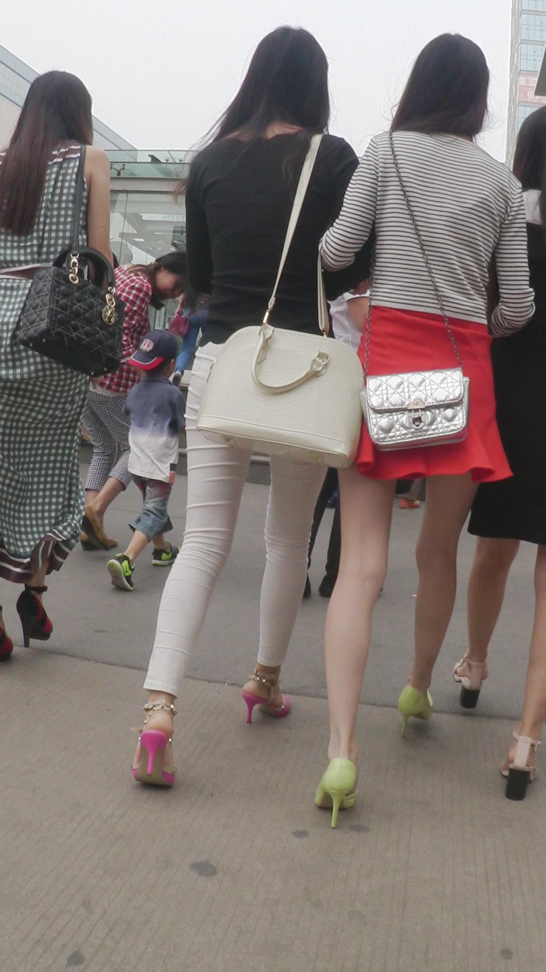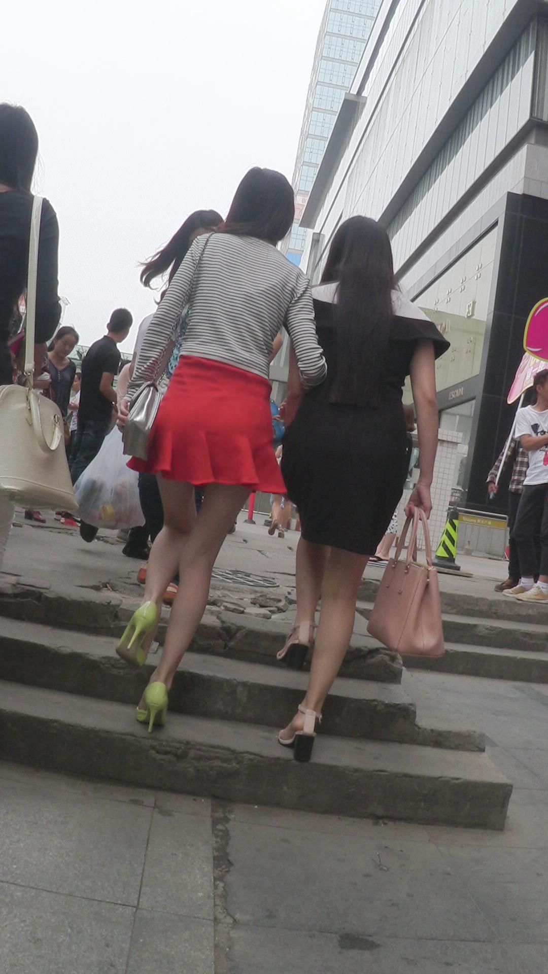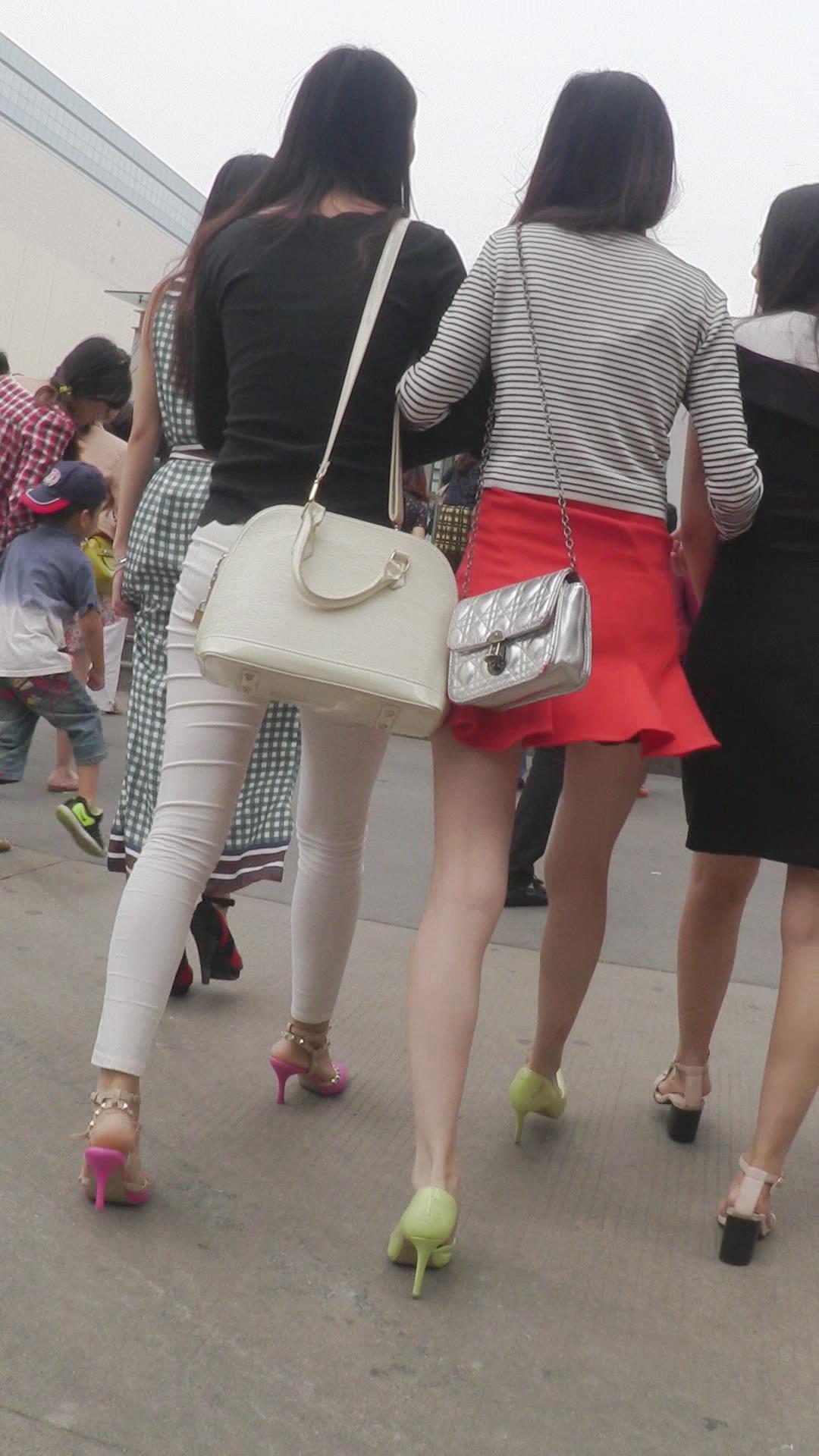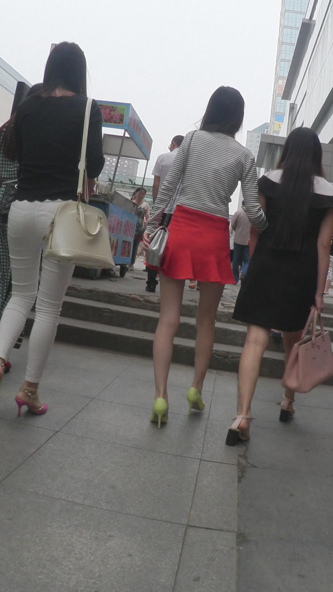街拍红色小短裙高跟鞋性感美女 编号2446