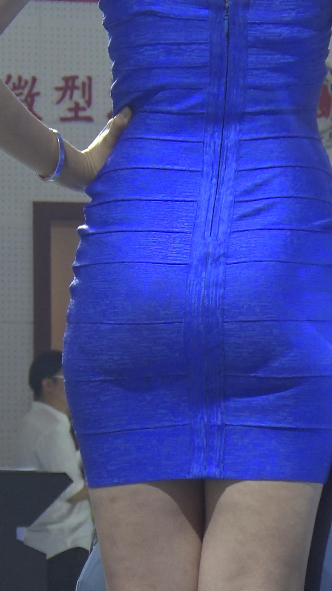性感蓝色紧身包臀裙气质车模美女 编号2450