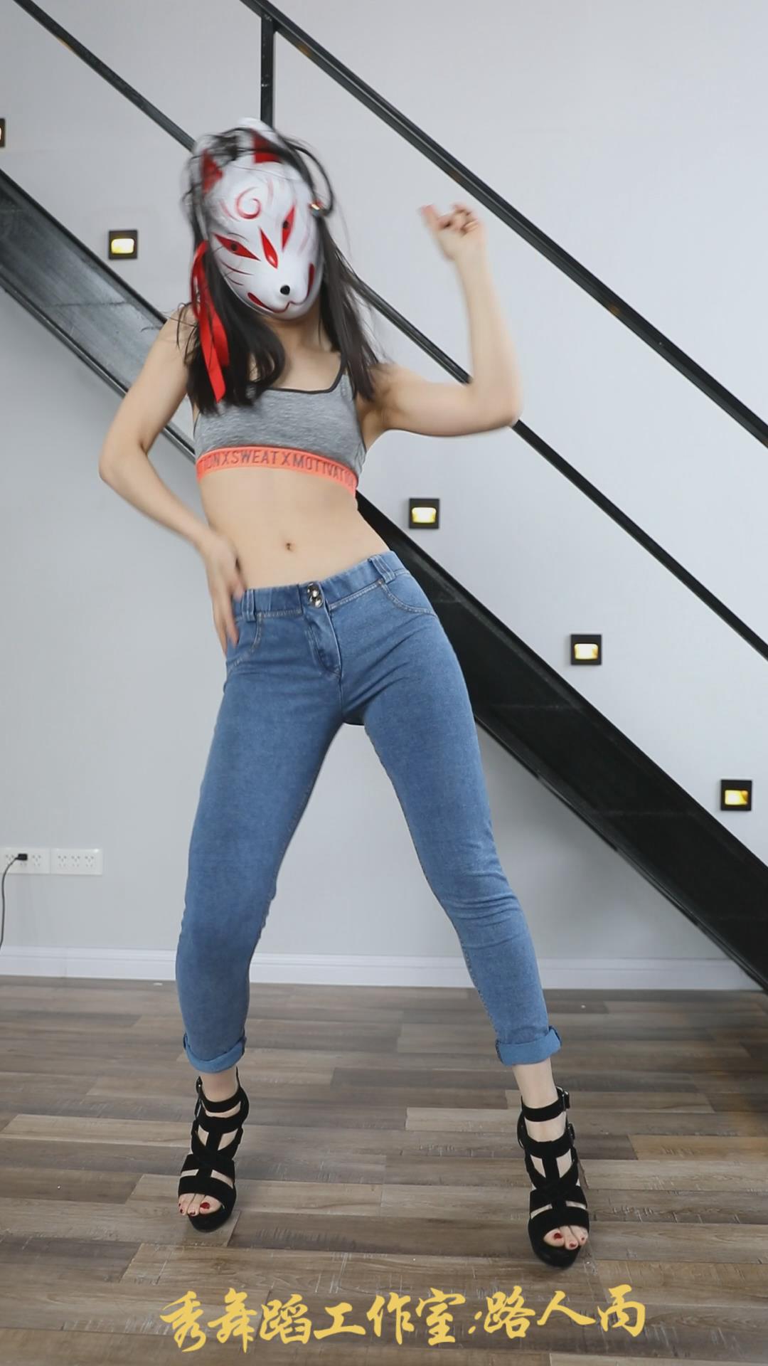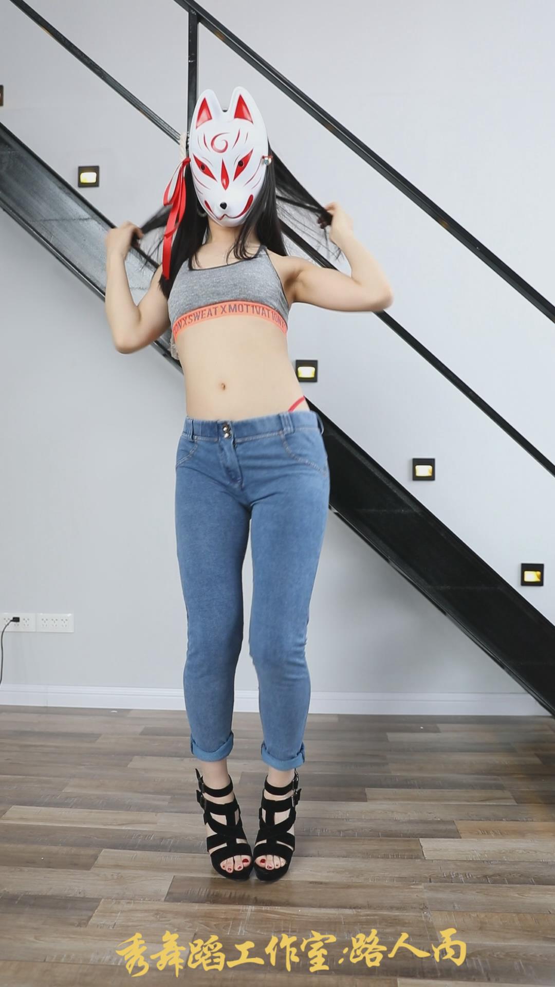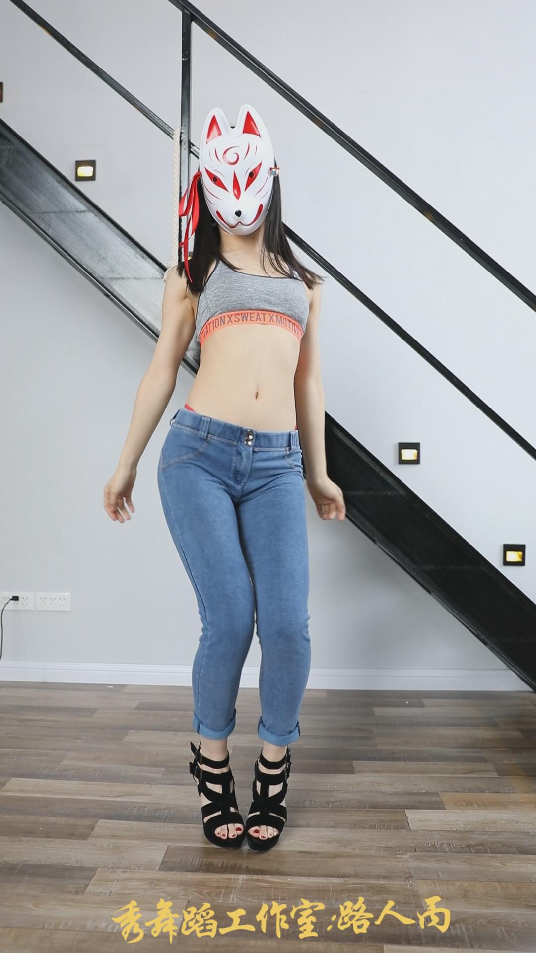 带着面具的紧身蓝牛模拍美女 编号6671