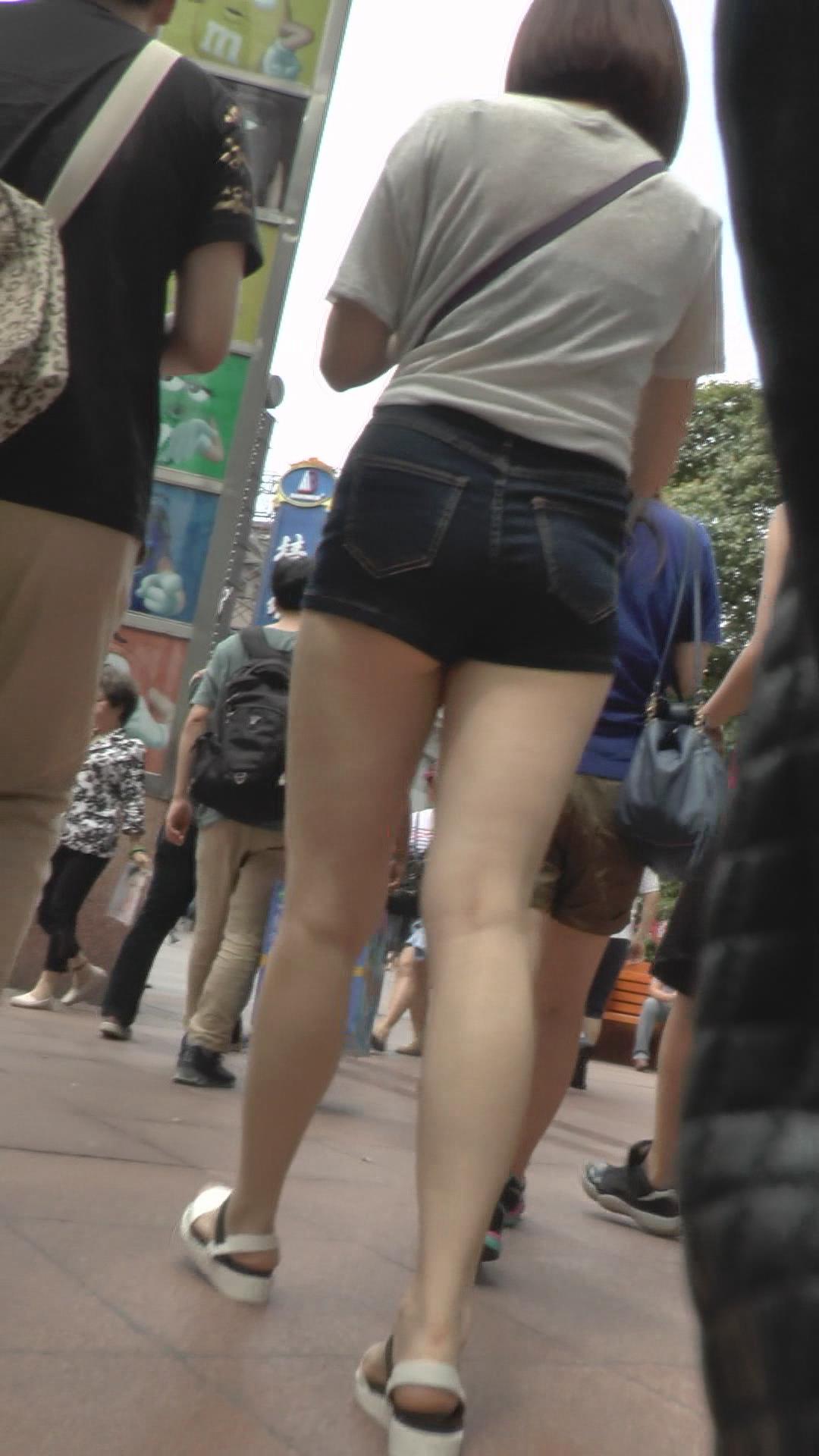 街拍超短牛仔热裤美眉,大腿雪白雪白的 编号4668