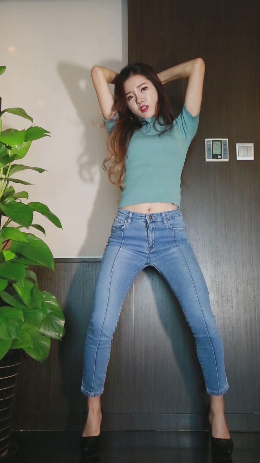 紧身牛仔裤女孩正面热舞慢摇 编号6691