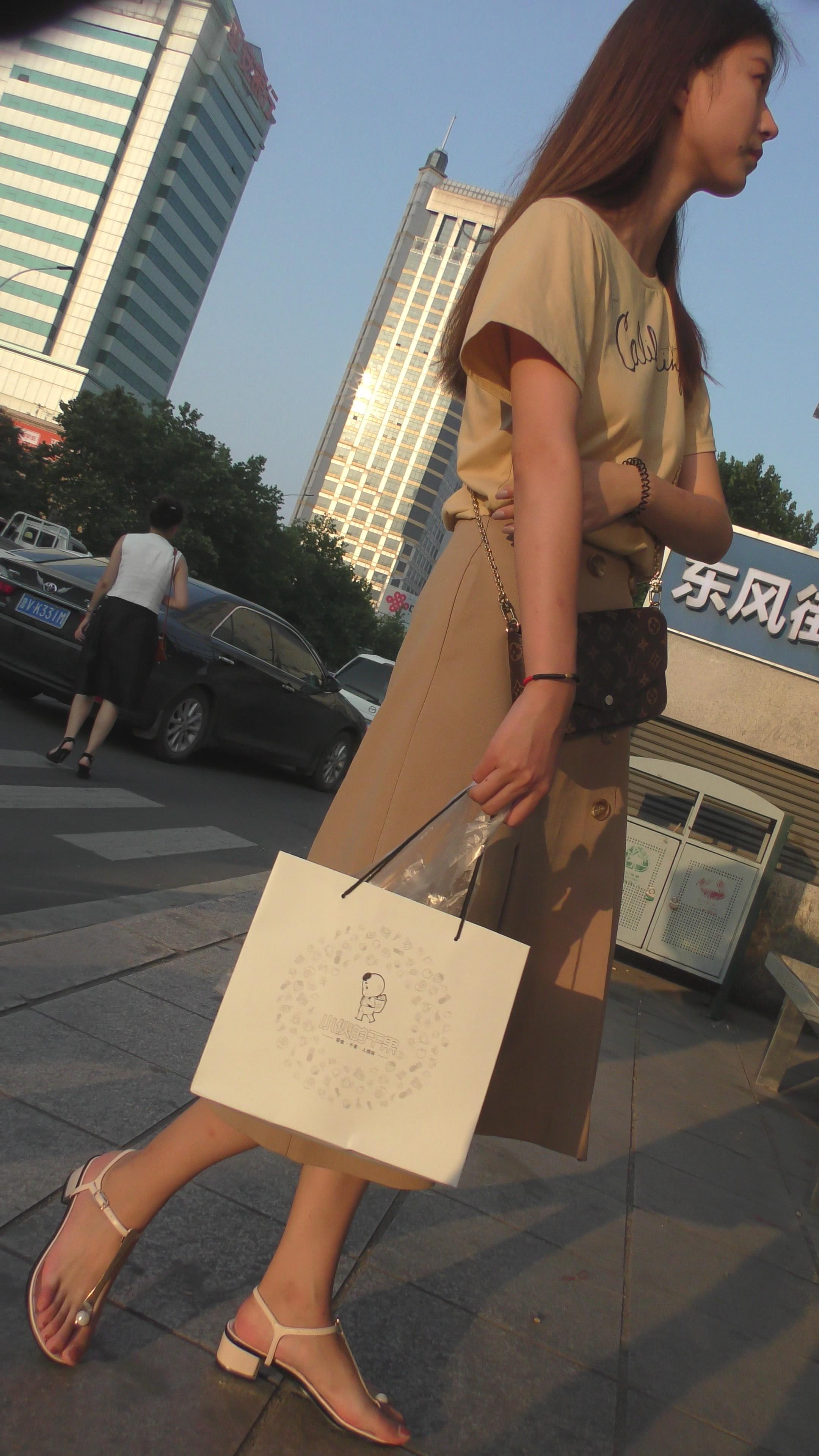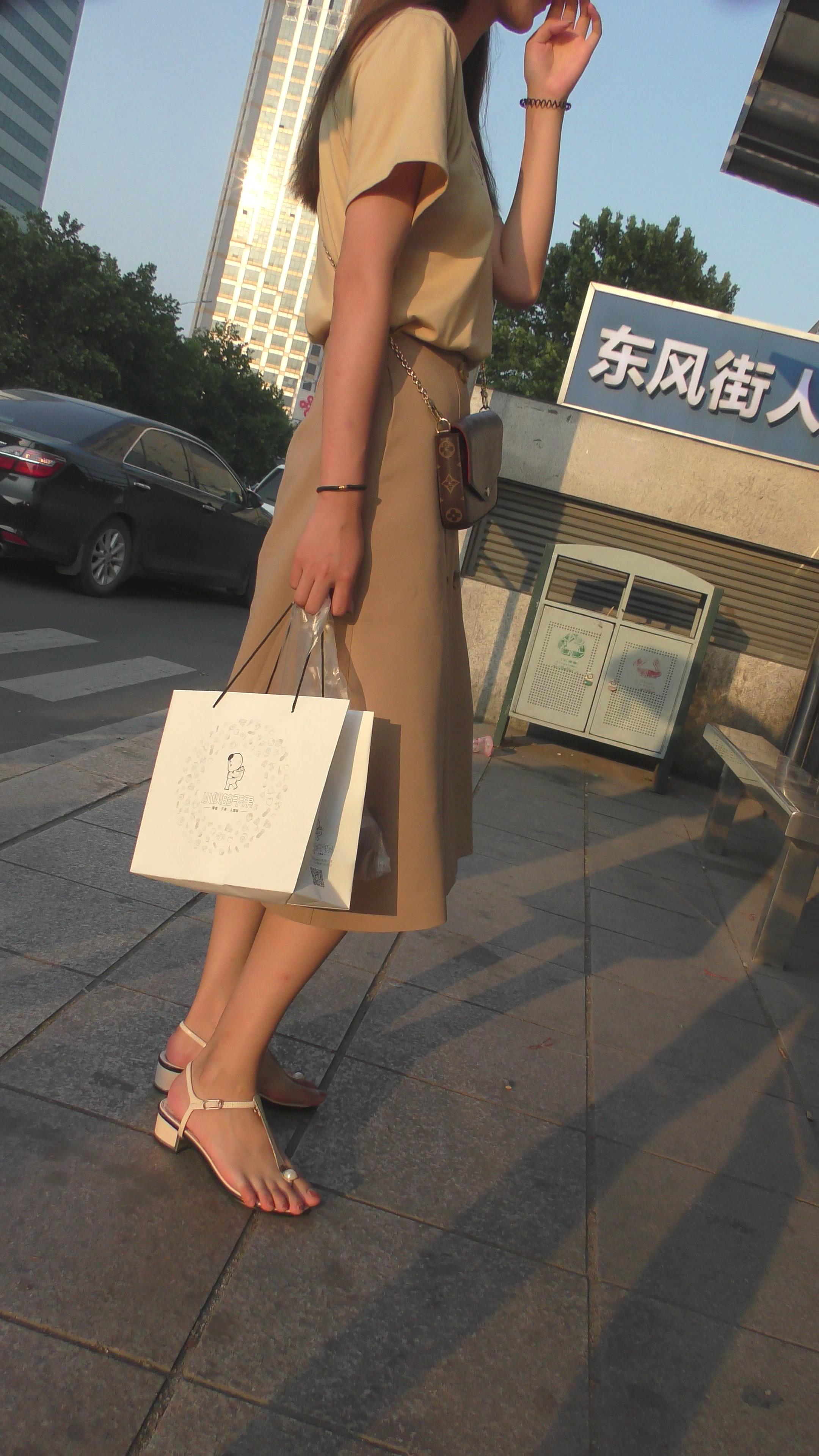 4K-米色群极品高挑身材街拍美足气质美女姐姐 编号6608
