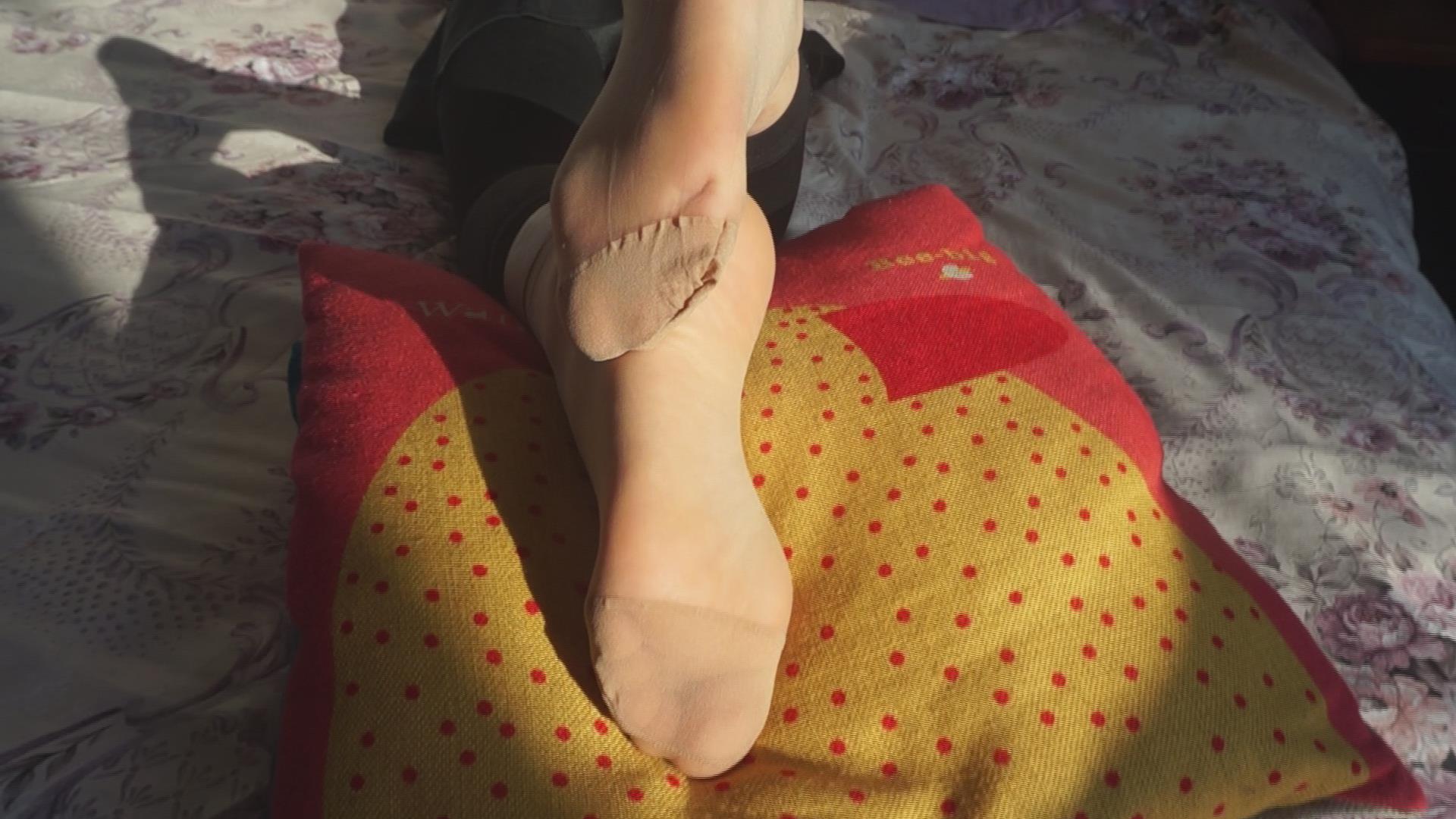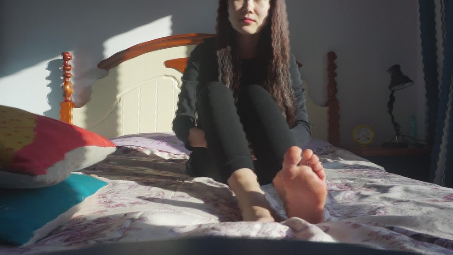 黑色紧身裤美女展示诱人丝袜美足 编号6610