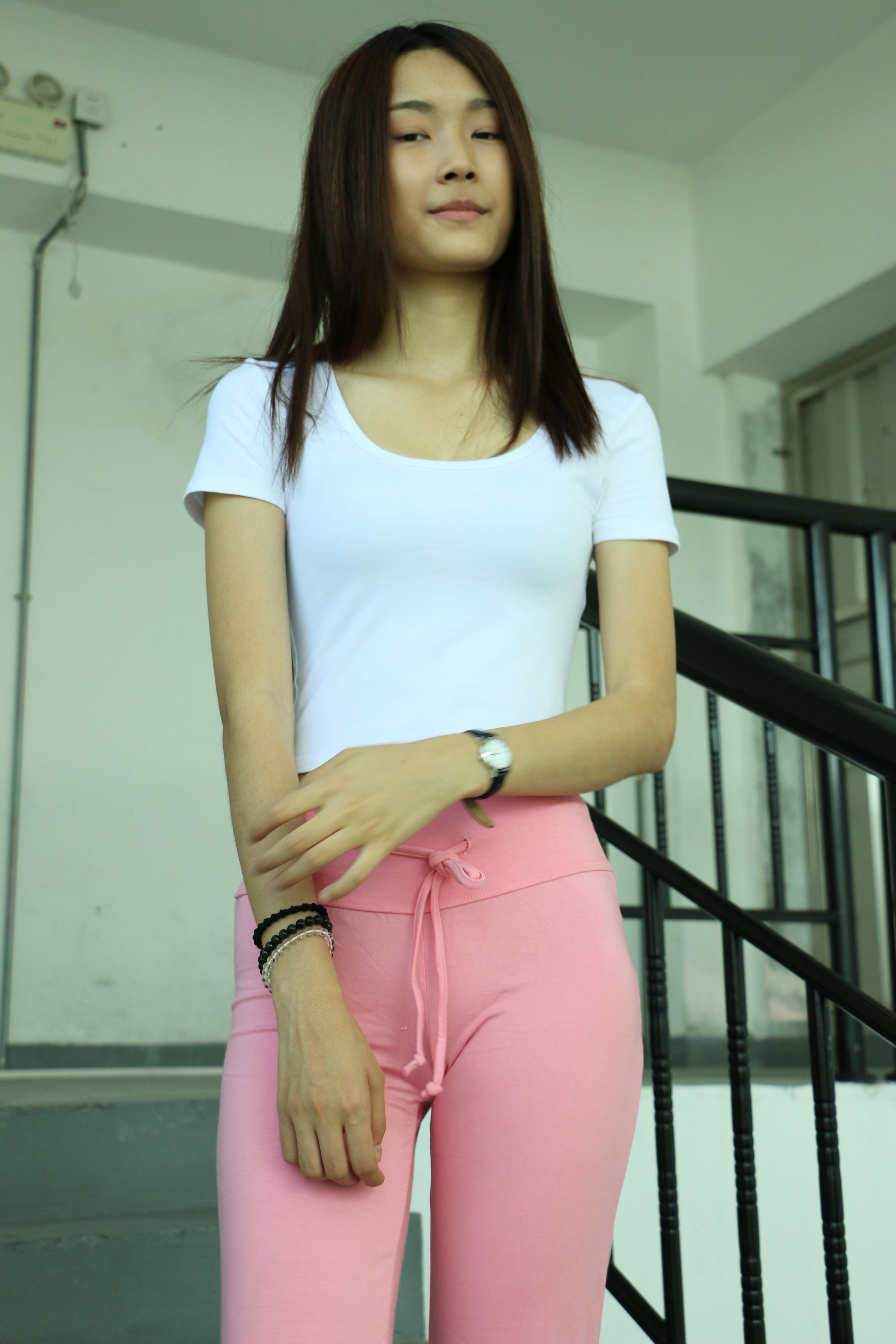 蓝色、粉色运动裤美女楼道模拍视频5部 编号6795