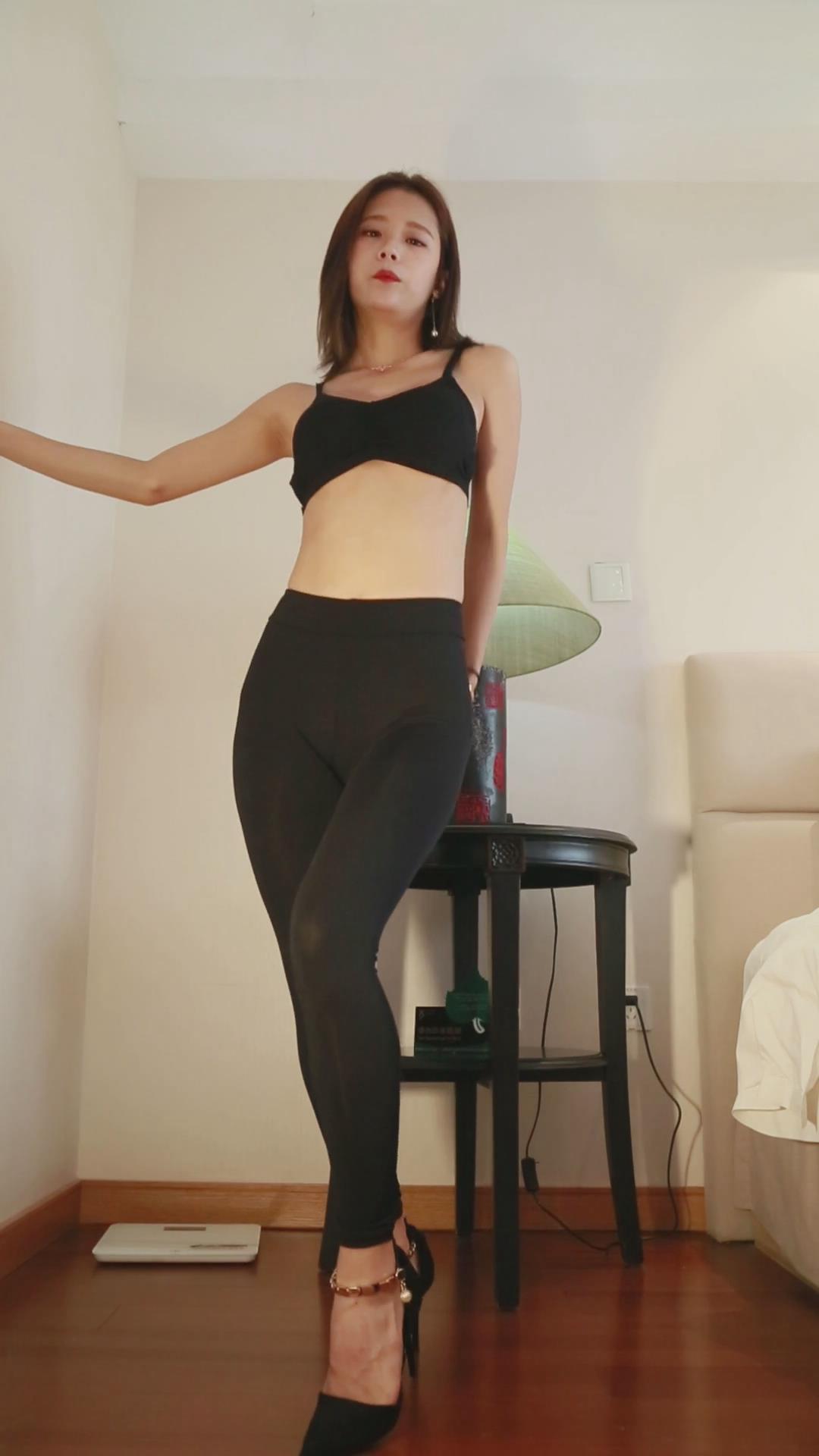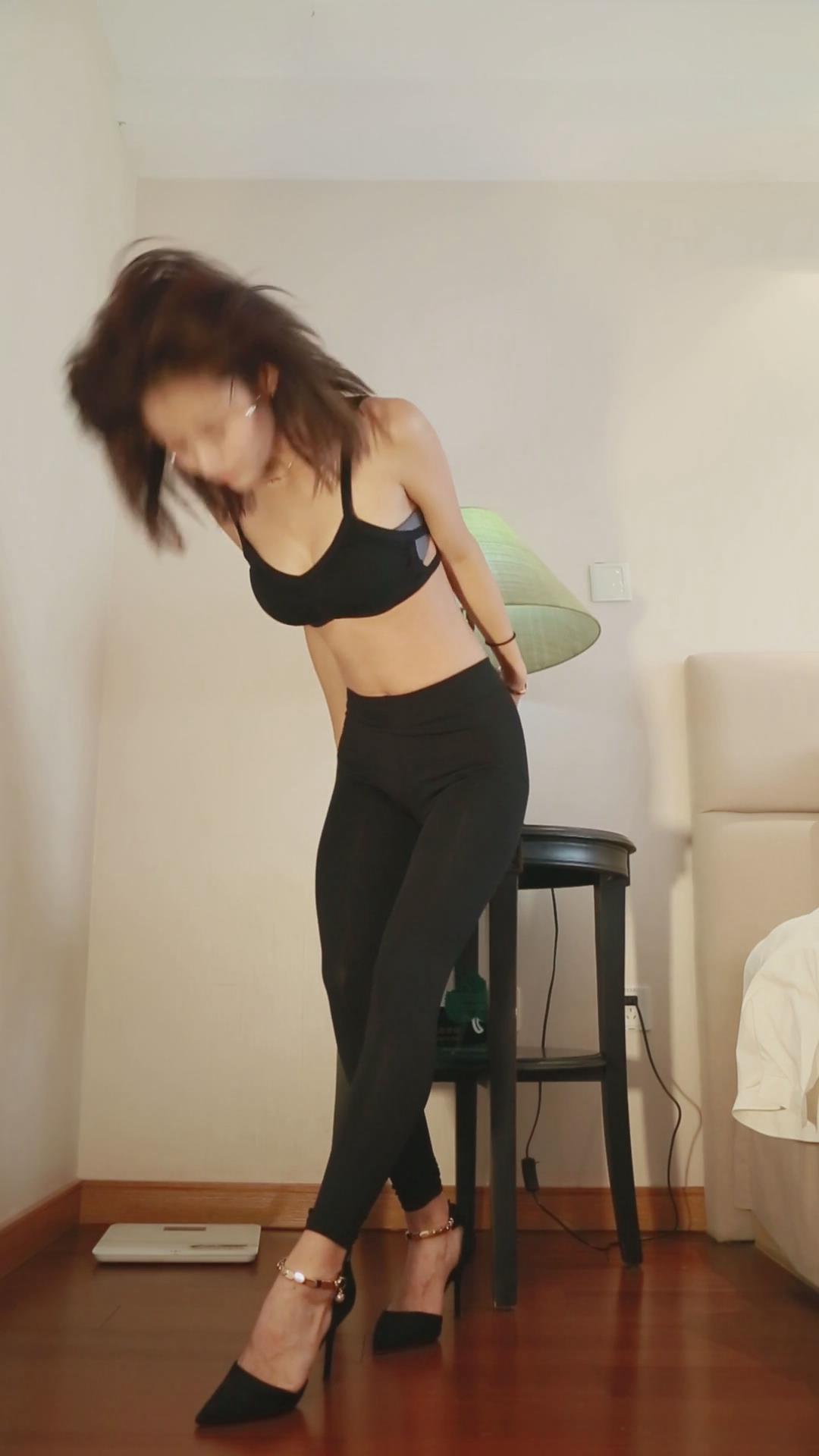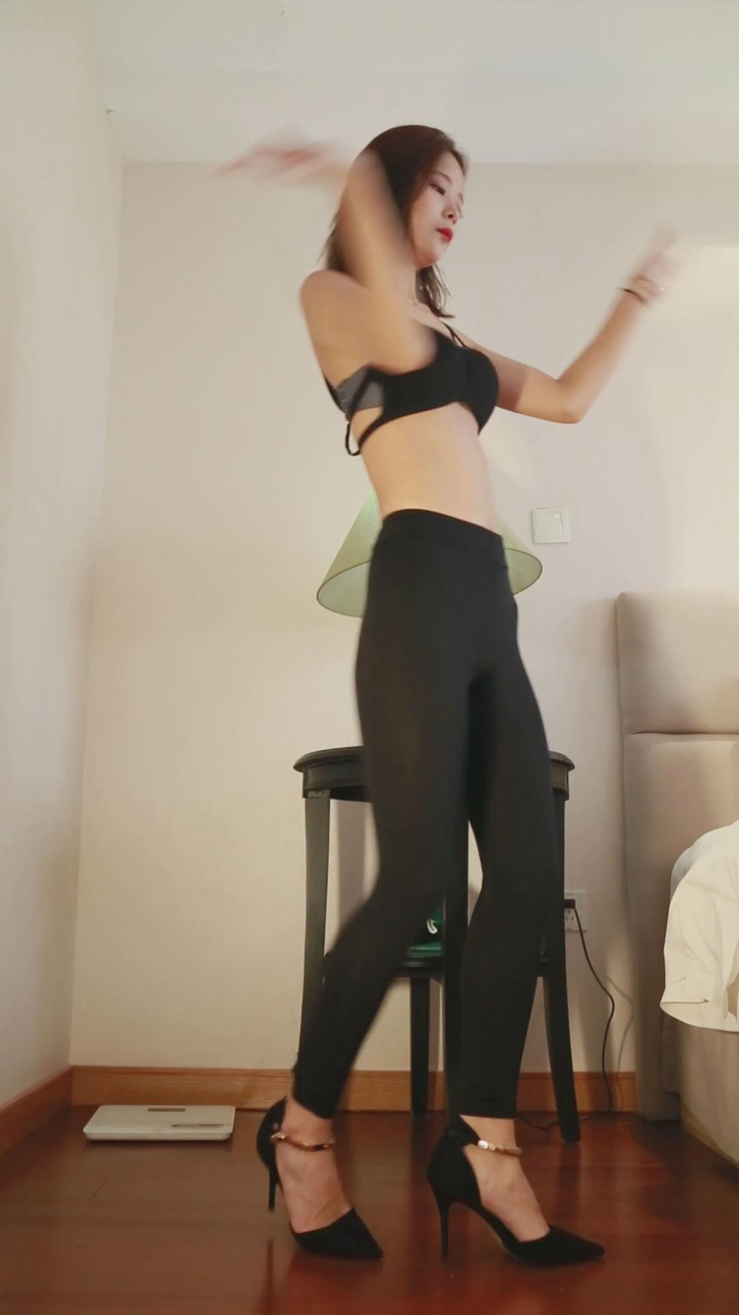 短衣黑色紧身裤好身材美女正面热舞慢摇视频 编号6817