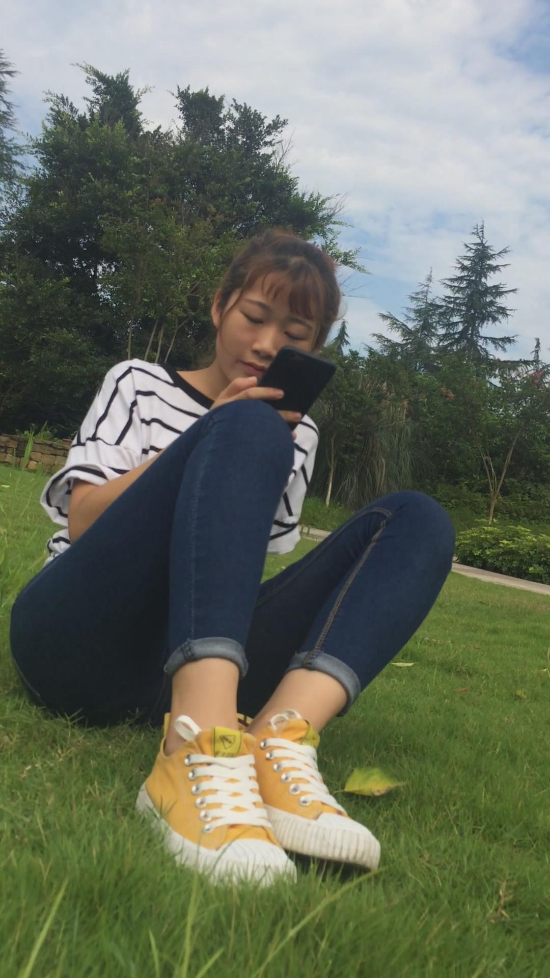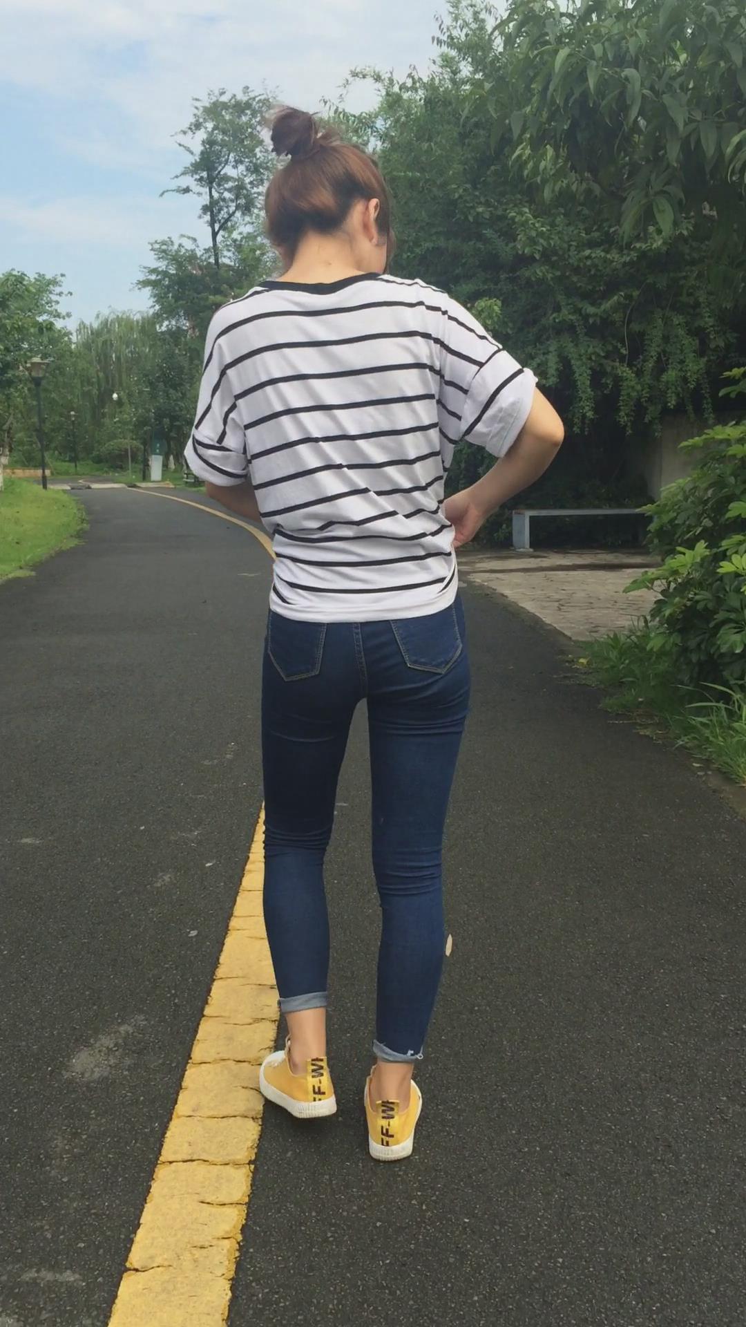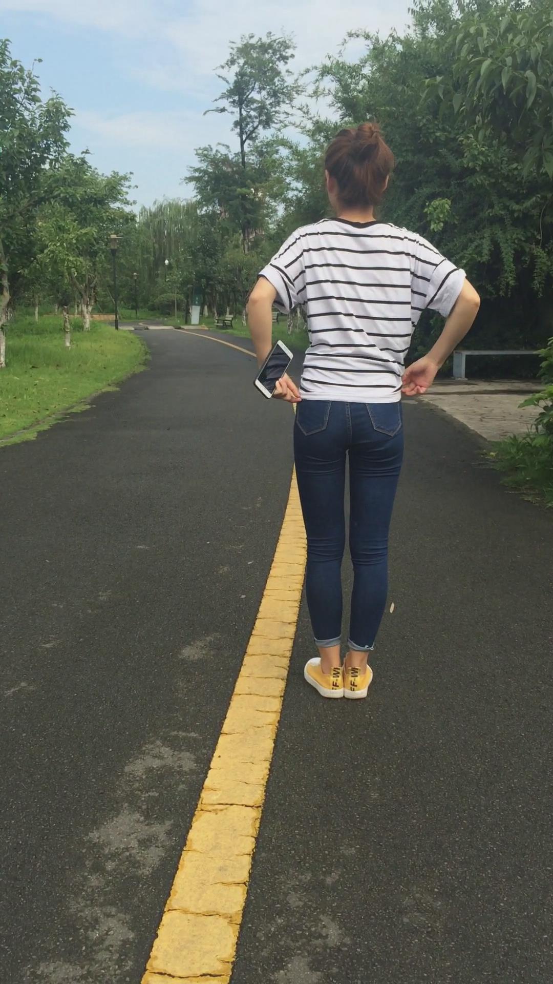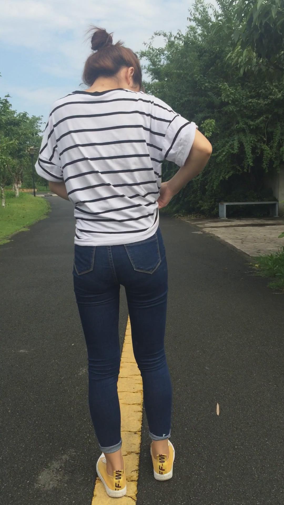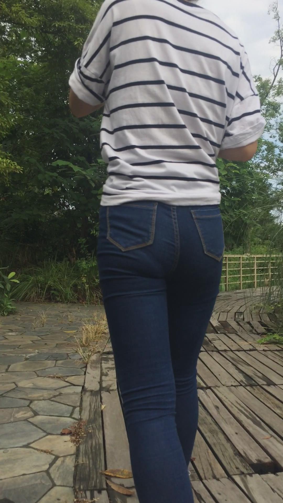清纯学妹穿紧身蓝色牛仔裤外拍视频 编号6857
