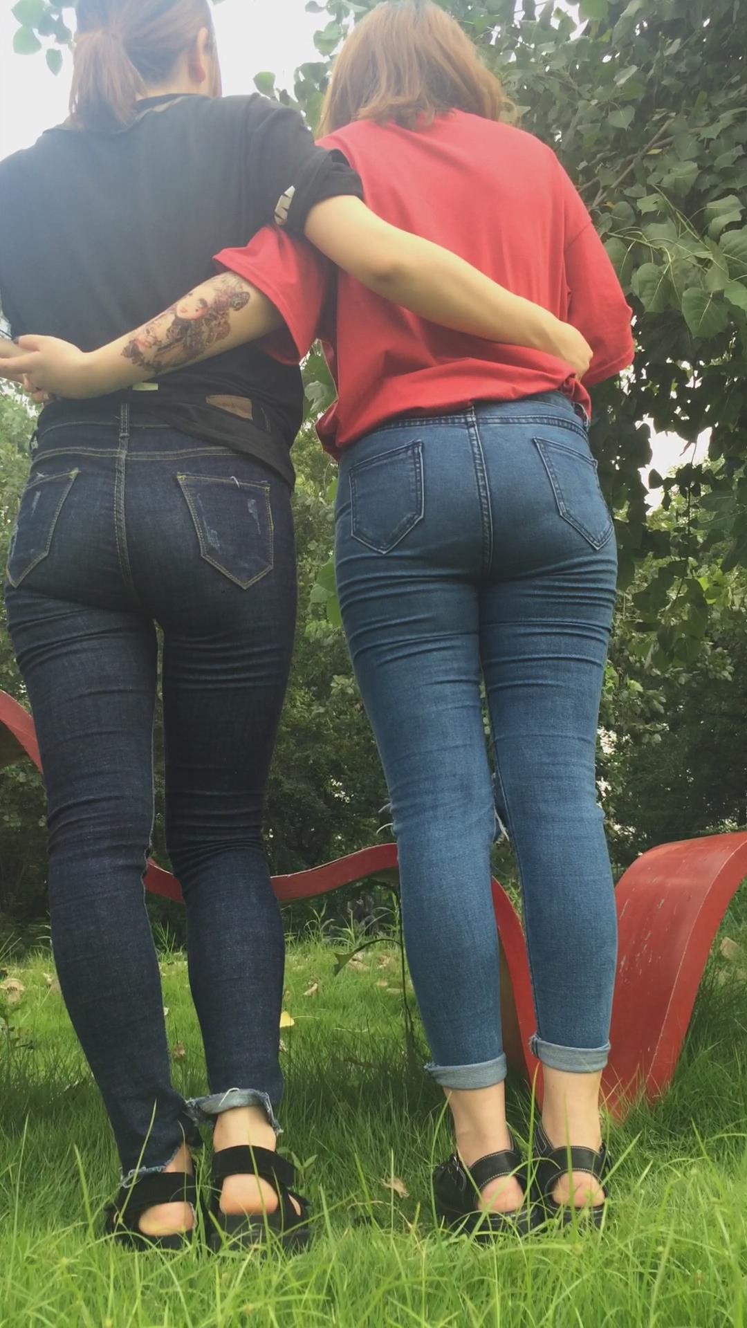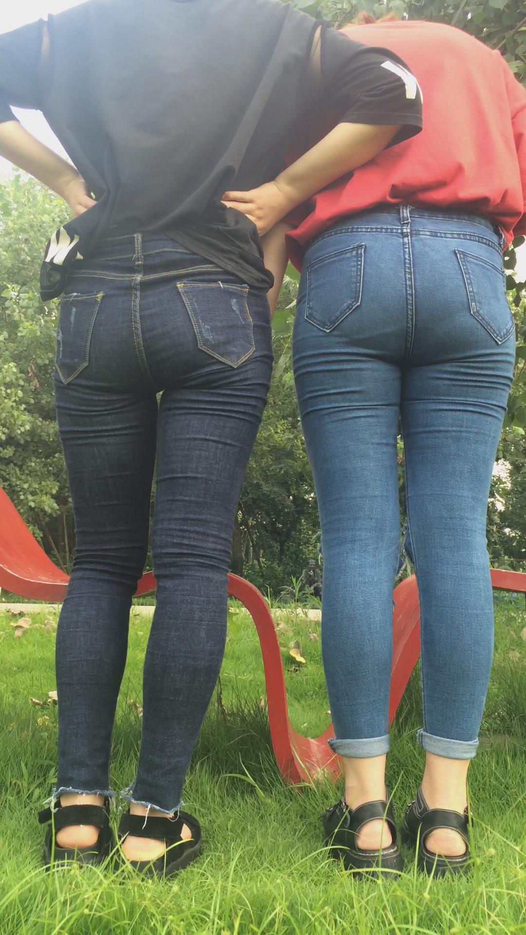 紧身牛仔裤美臀美女姐妹公园模拍视频 编号6860