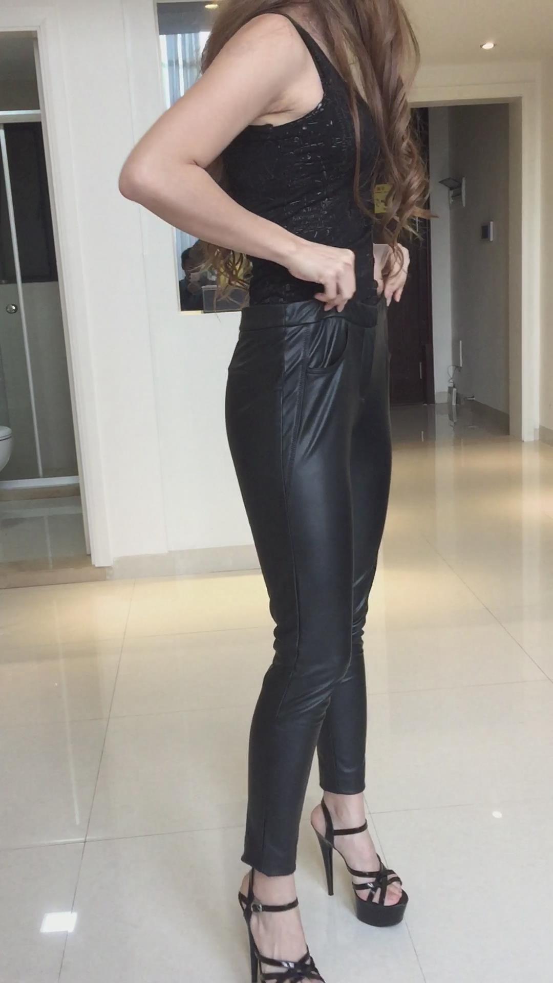 高跟美腿黑色皮裤美女模拍 编号6872