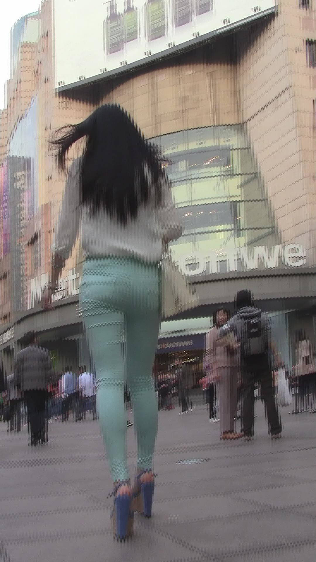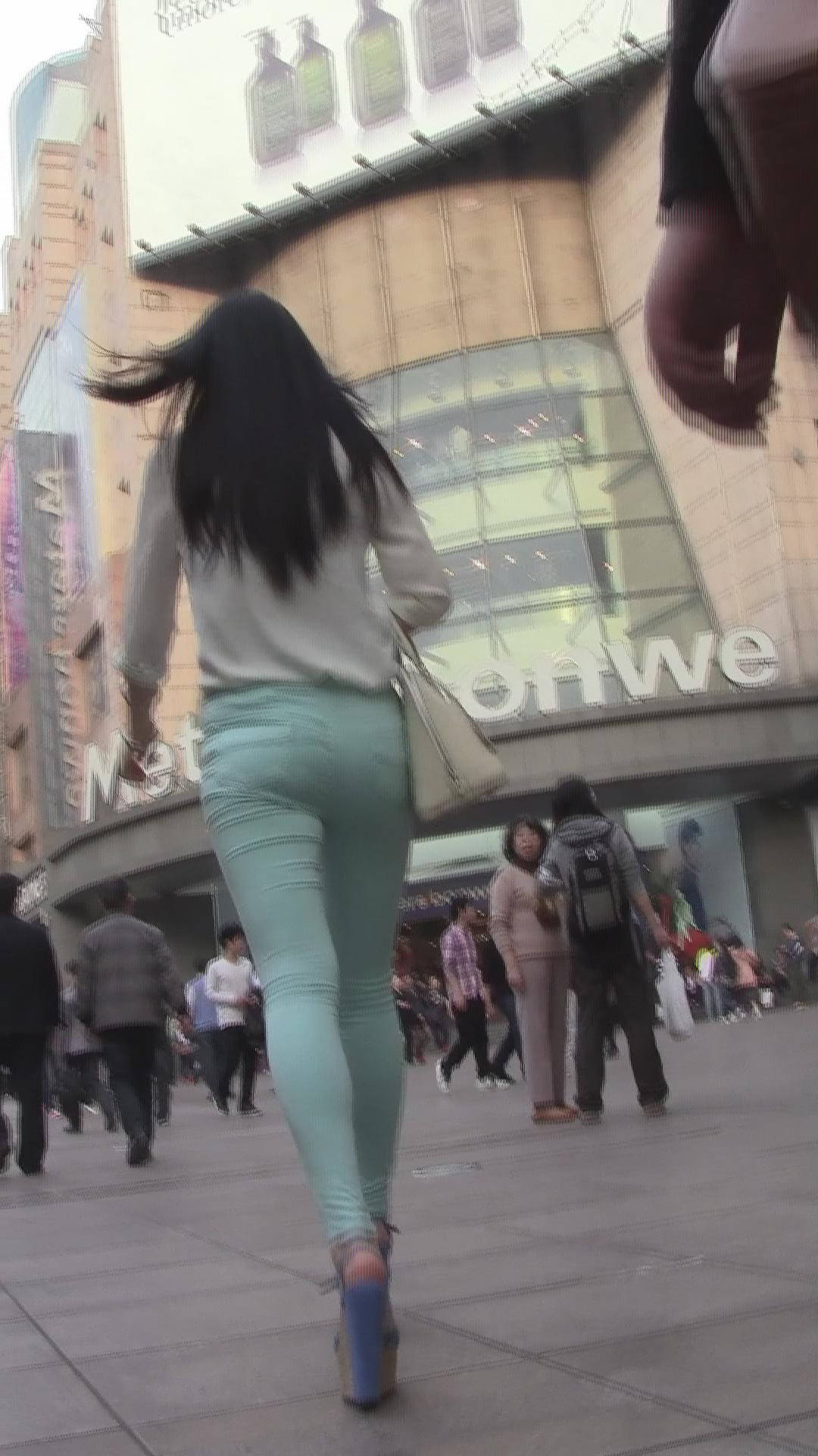 【编号067】浅绿紧身裤美女