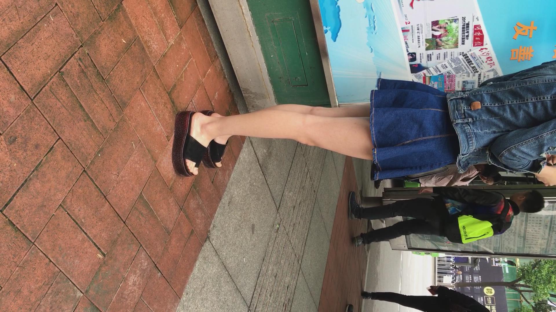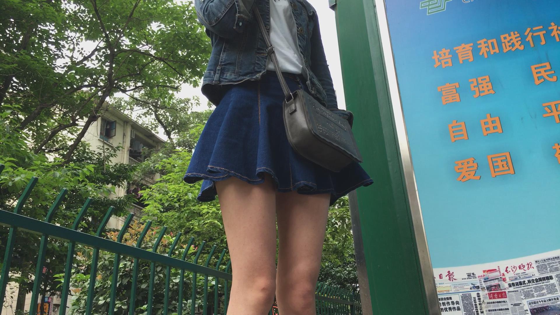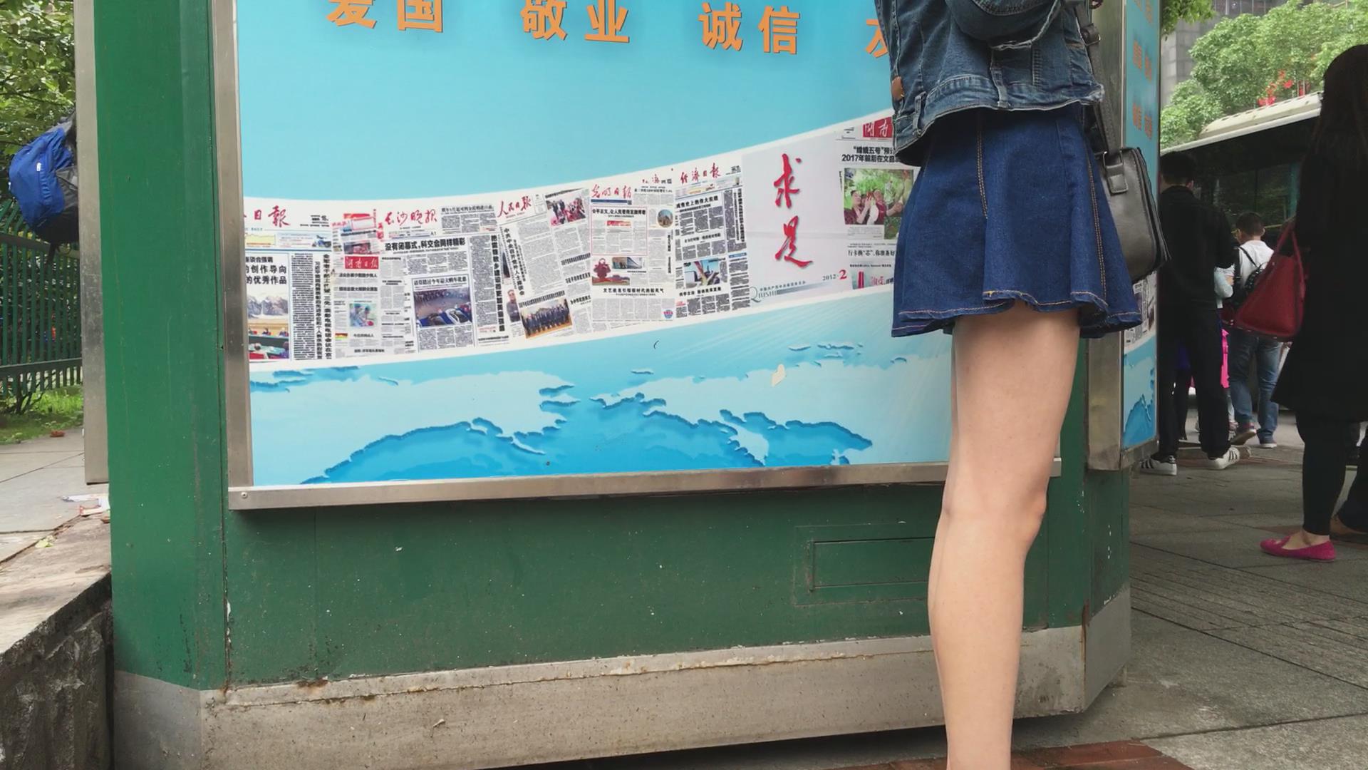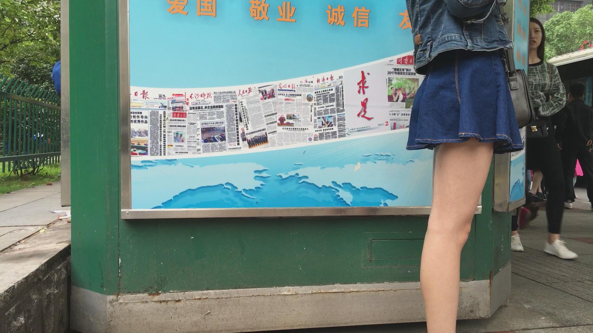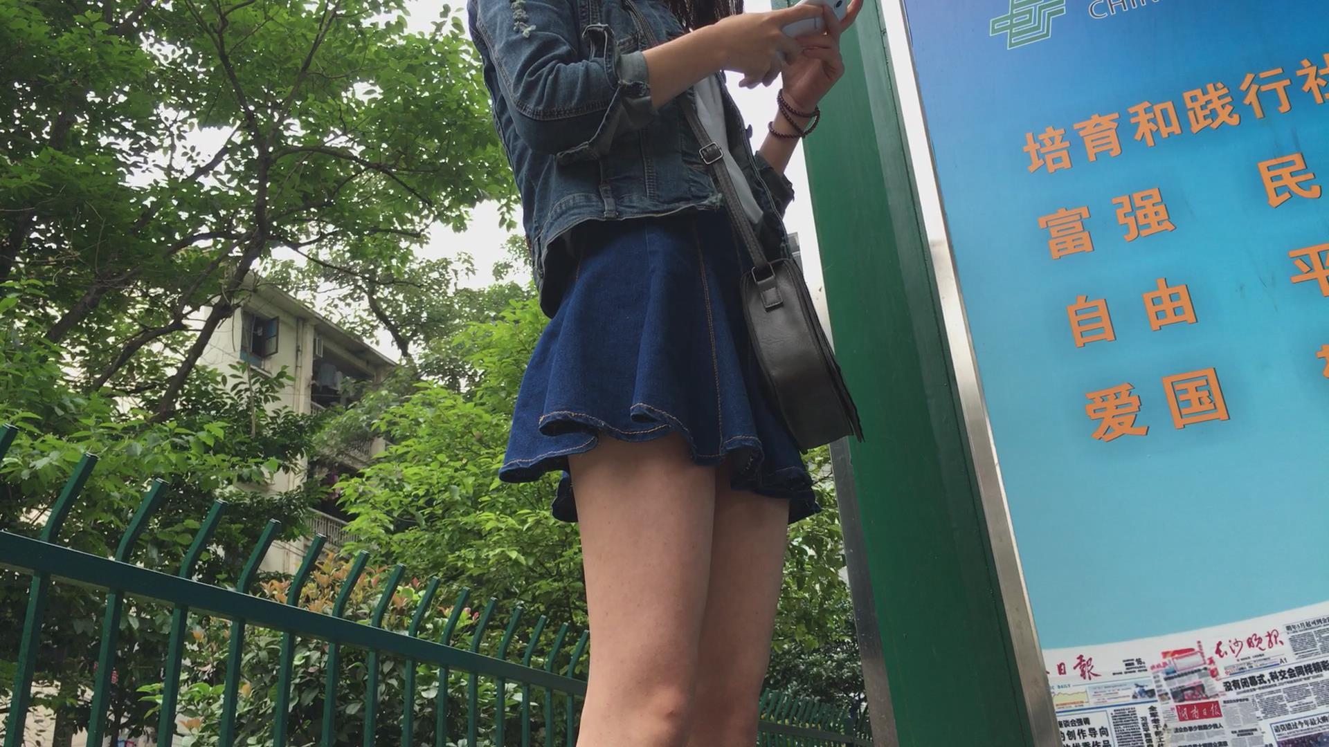 公交站偶遇极品牛仔短裙美女,太漂亮啦 编号2007