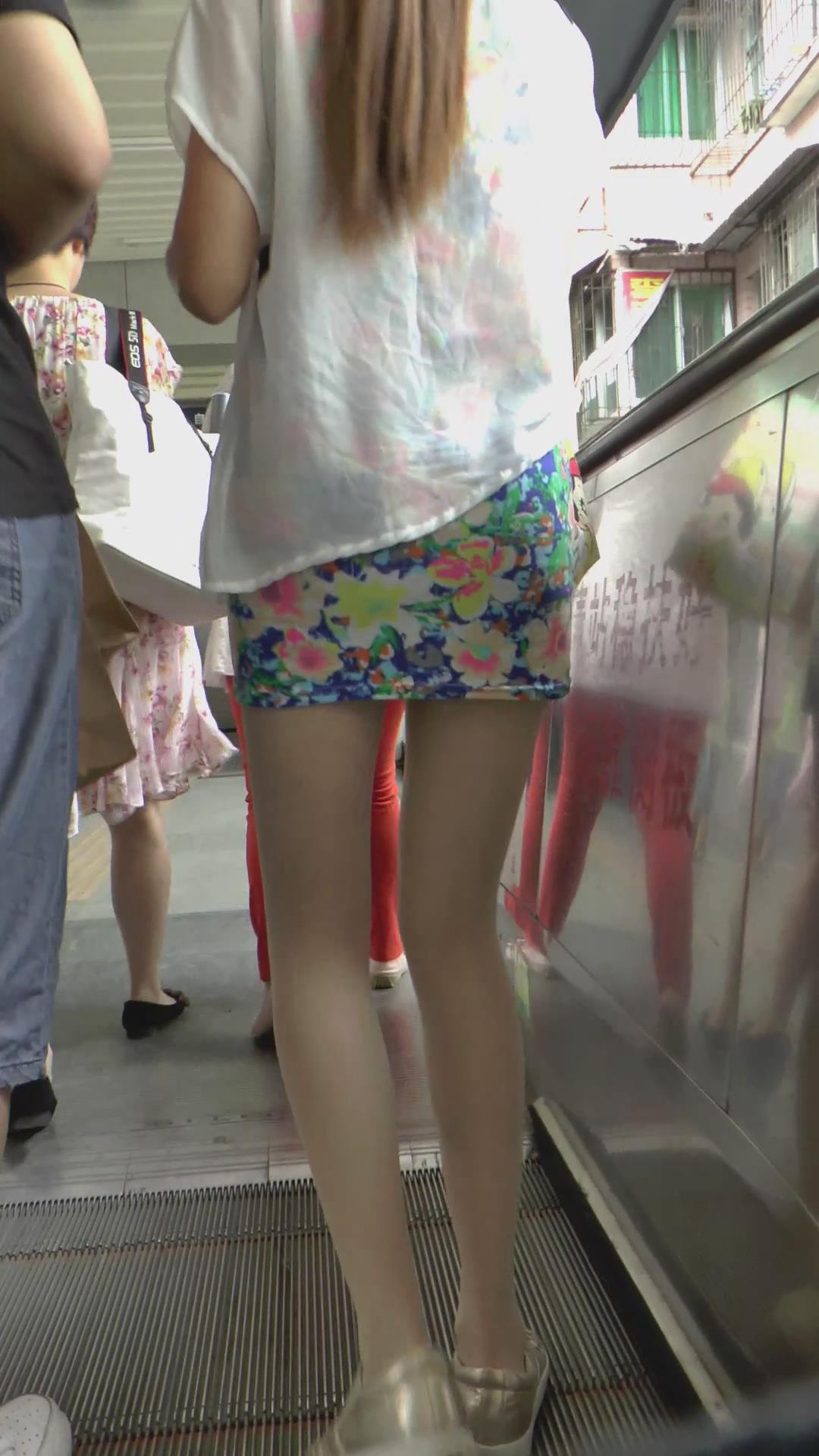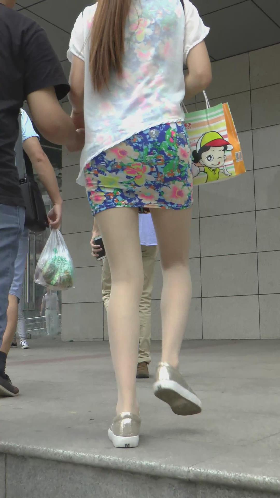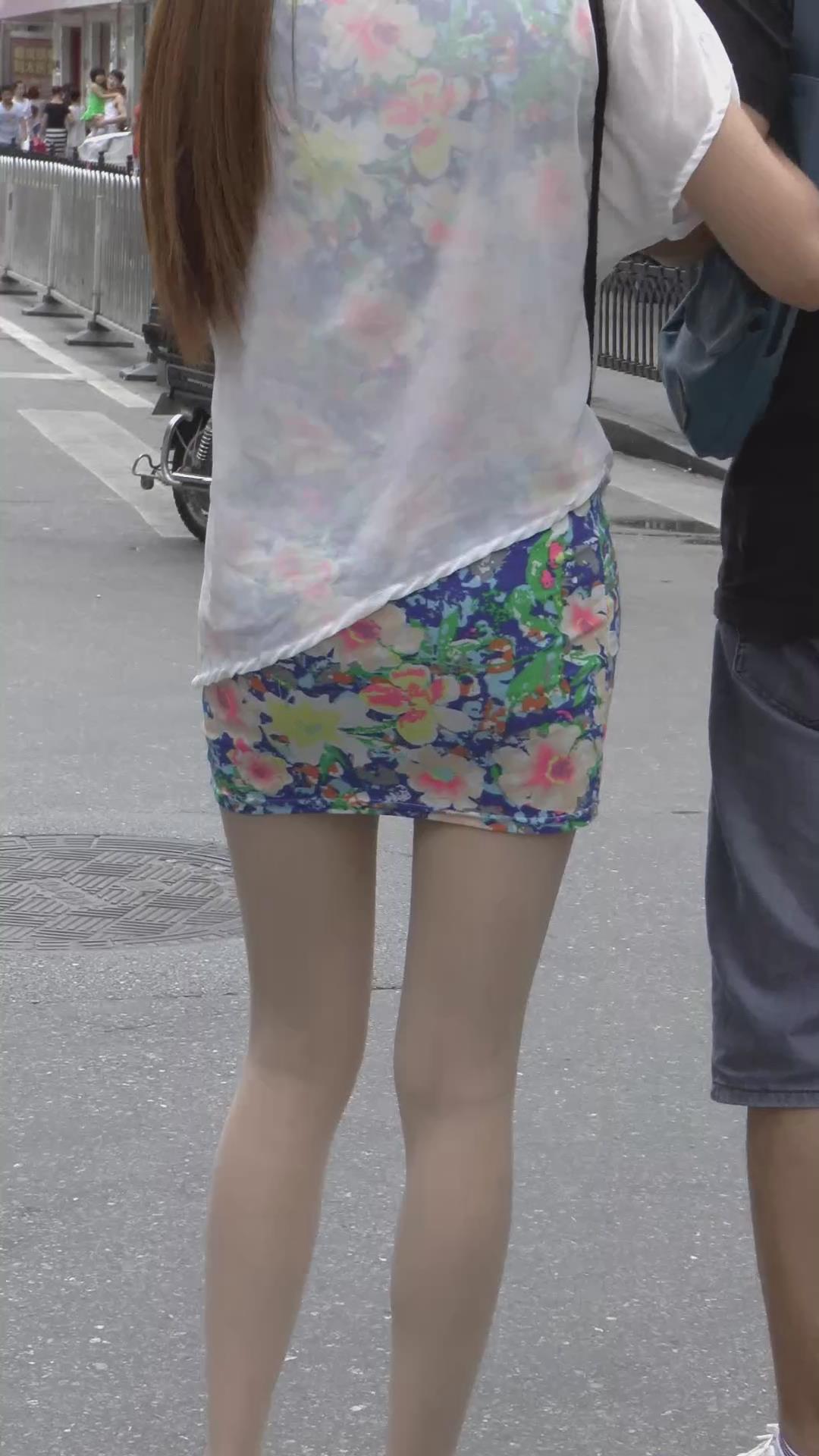 有男友陪着逛街的肉丝碎花包臀裙美腿美女 编号2008