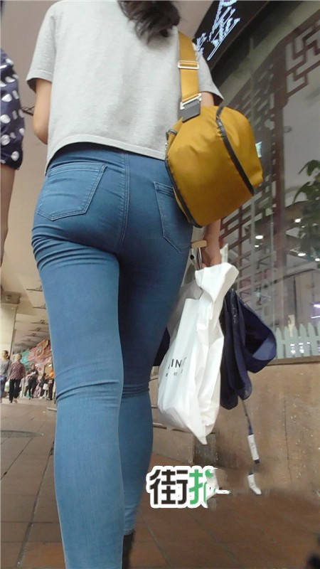 【编号710】街拍极品嫩白紧身牛仔MM