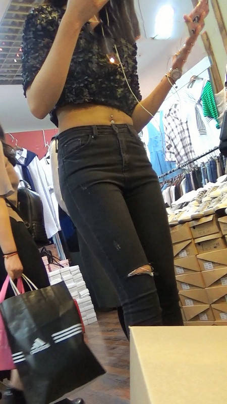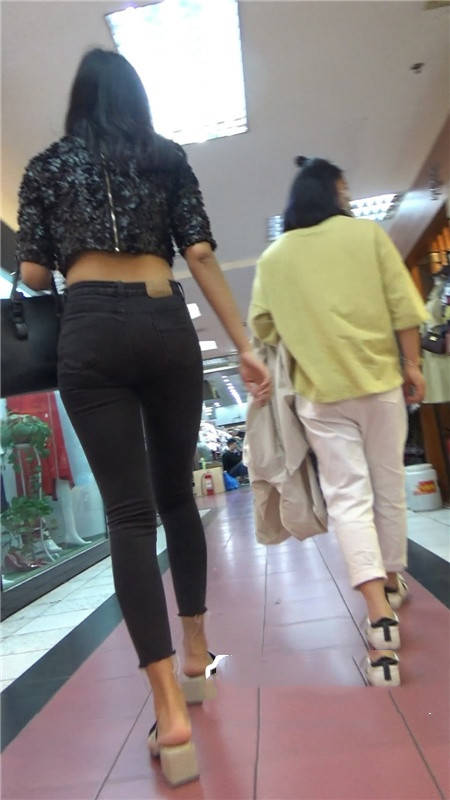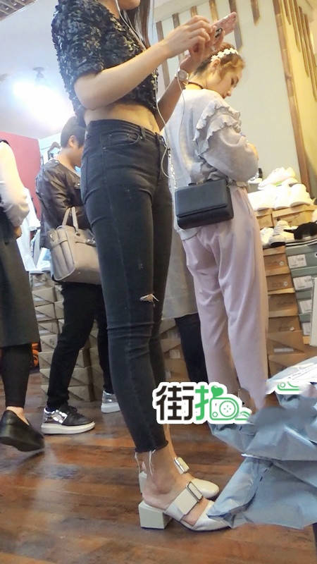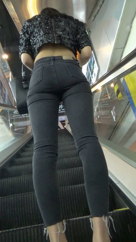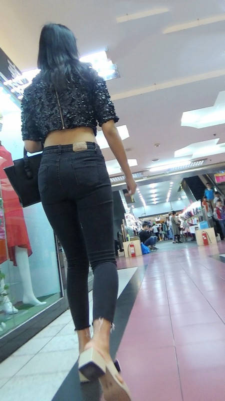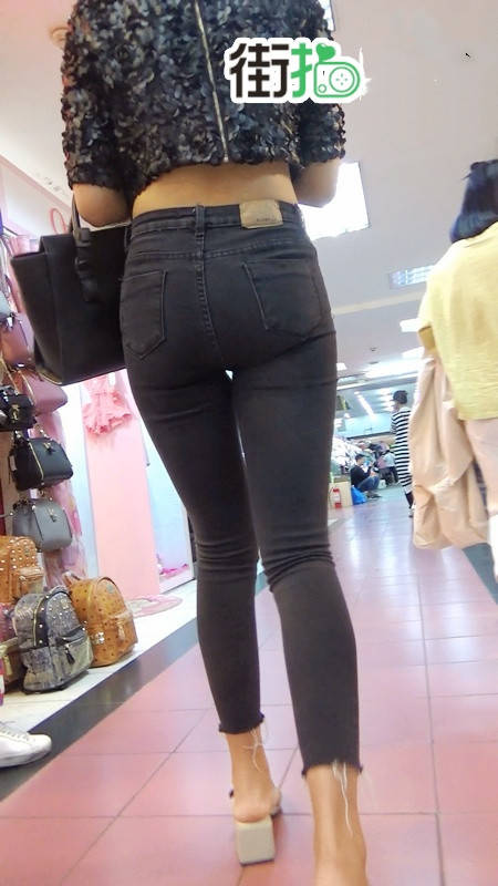 【编号789】街拍极品紧身黑色牛仔裤美女
