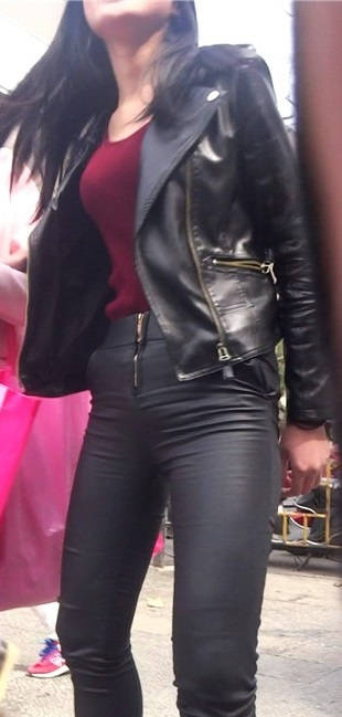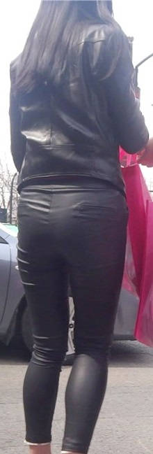 【编号808】街拍面色红润的皮裤少妇