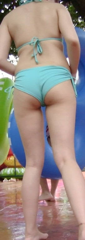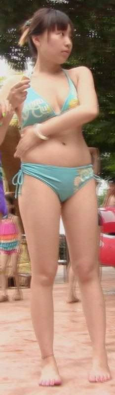 【编号819】街拍泳衣太小MM不停用手往外扯